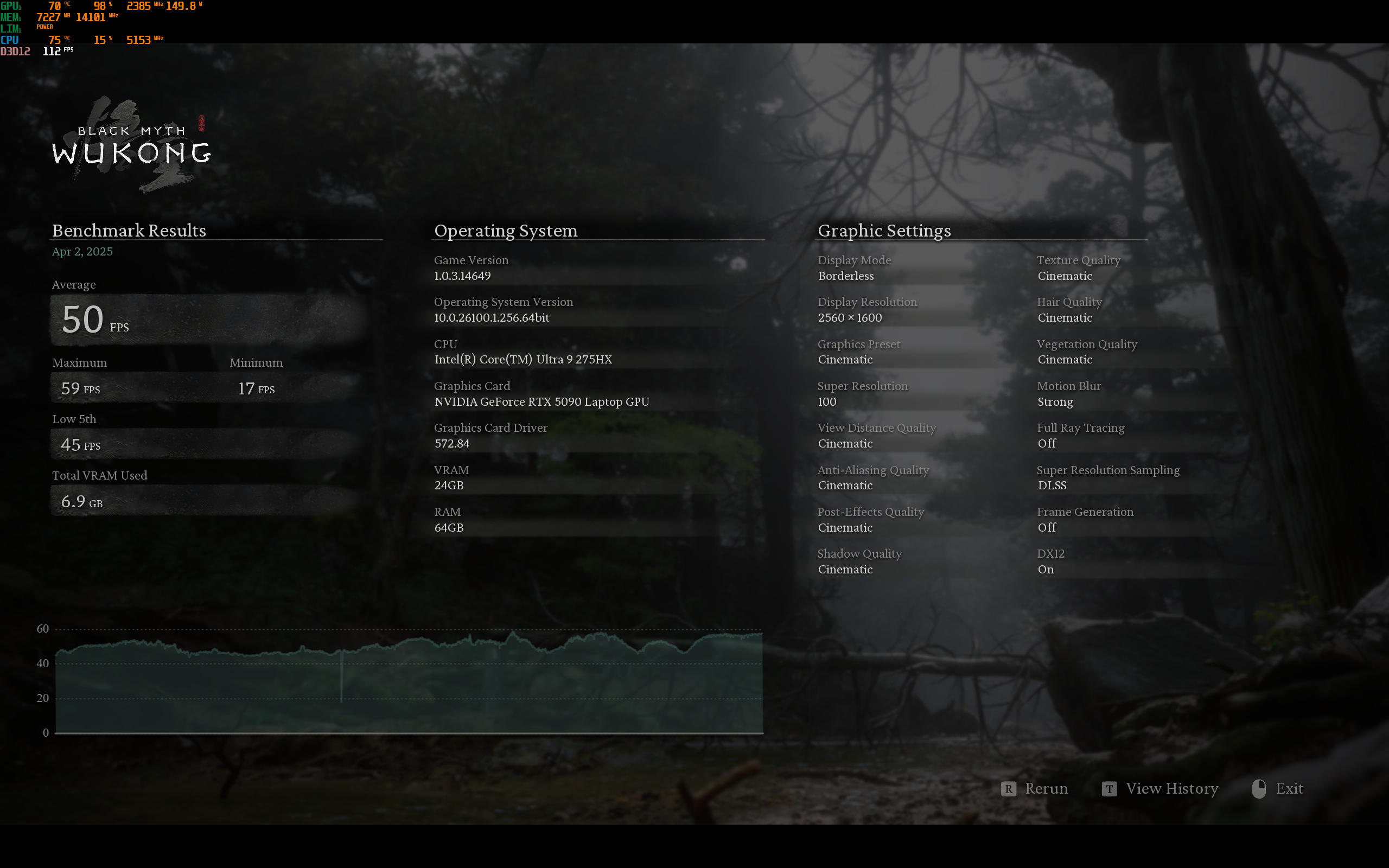 Στο benchmark του BlackMyth σε Cinematic γραφικά πήραμε 50fps έναντι 55fps στο desktop.