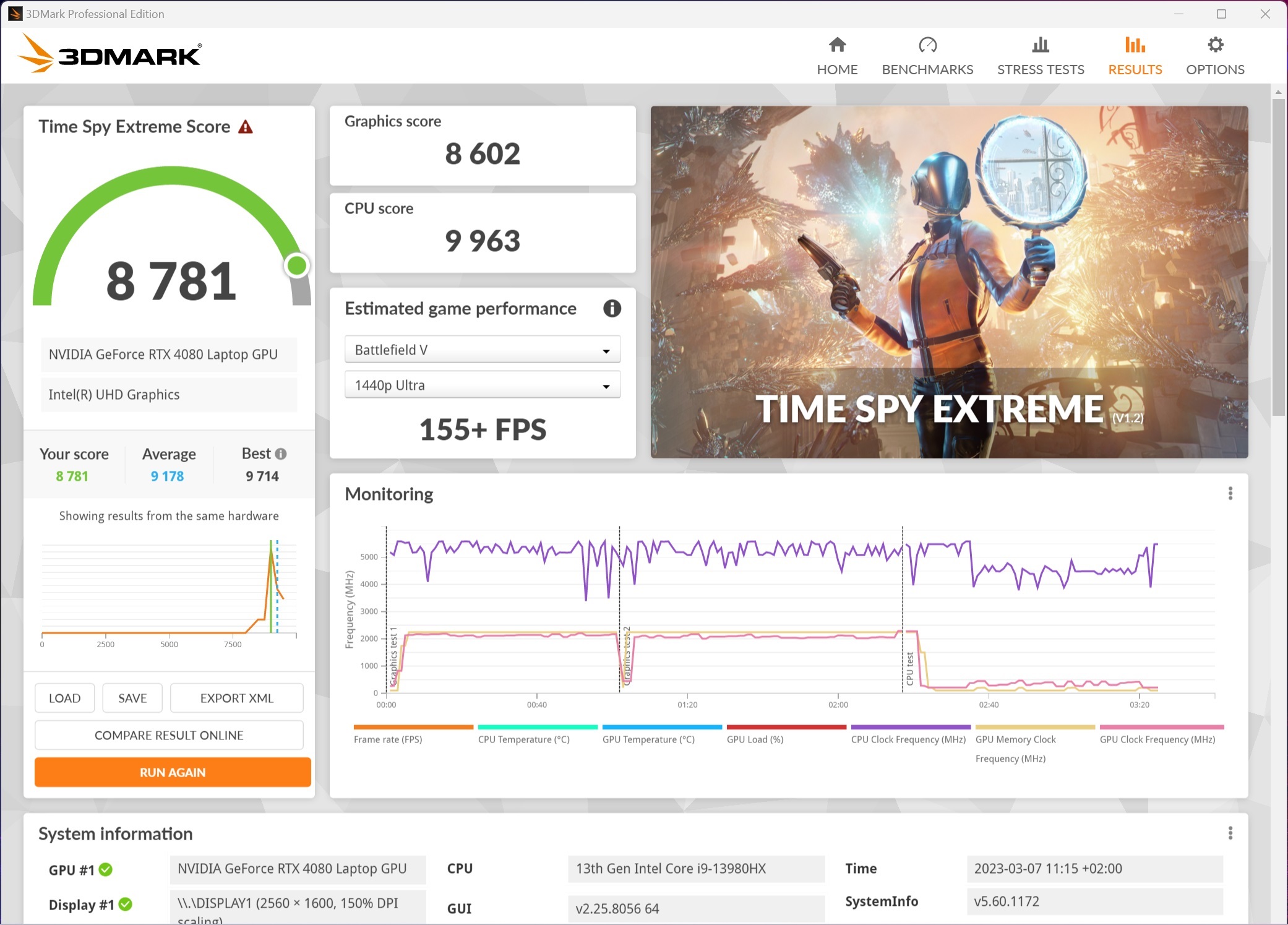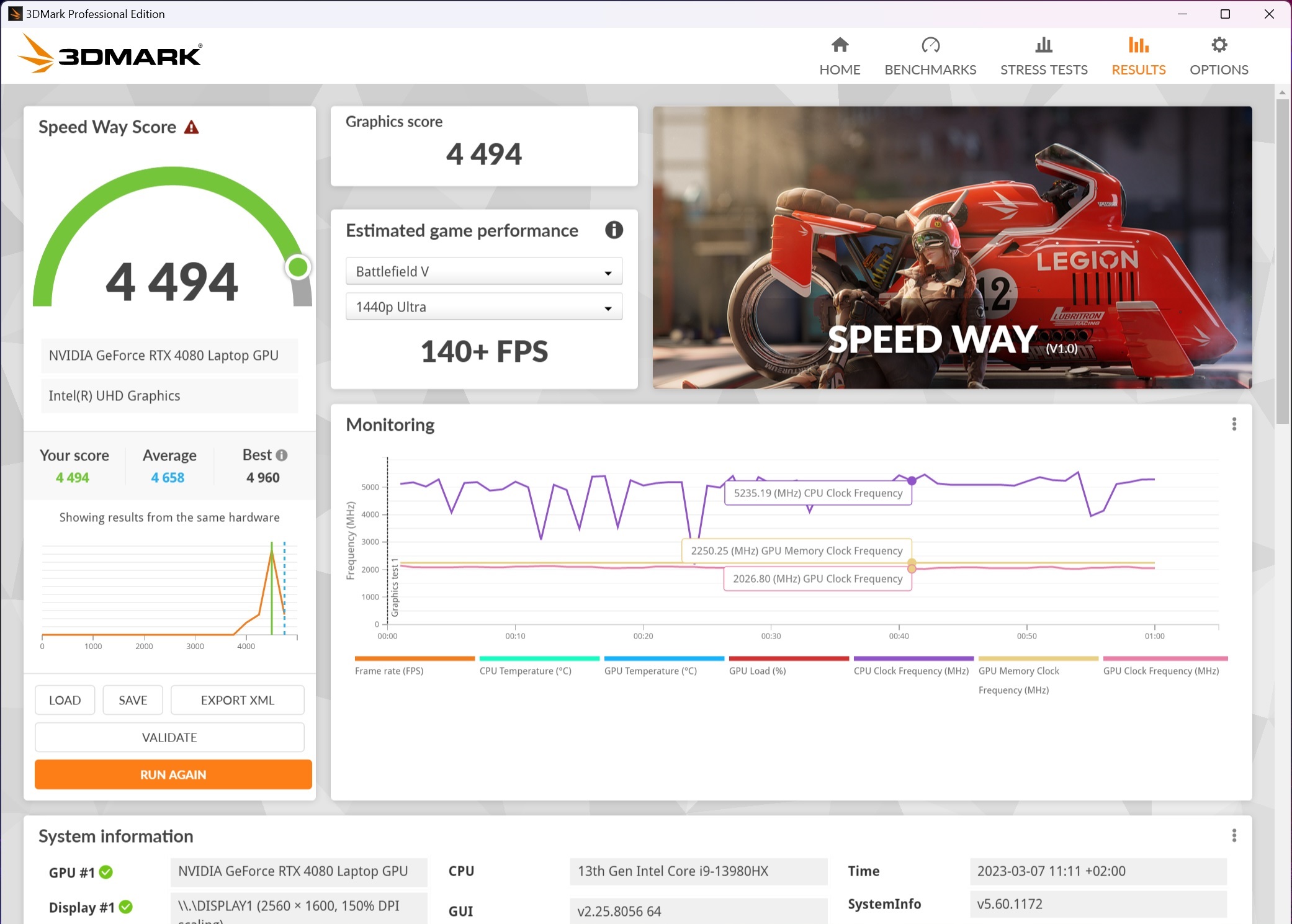 Για όσους θέλουν να κάνουν ευκολότερα συγκρίσεις με το σύστημά τους, τρέξαμε και το 3D Mark με αποτελέσματα 11200 στο Port Royal, 8781 στο Time Spy Extreme και 4494 στο Speedway.