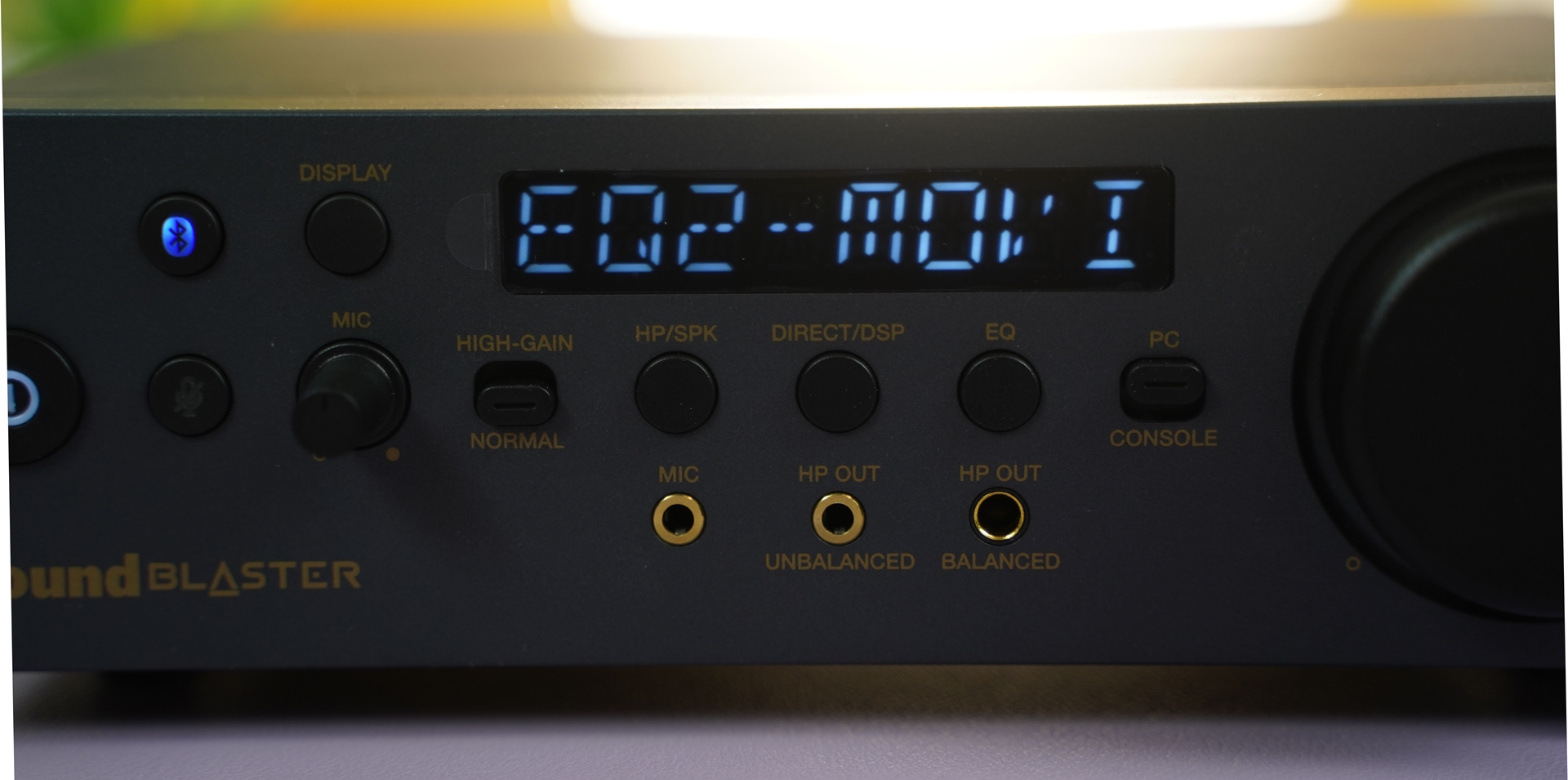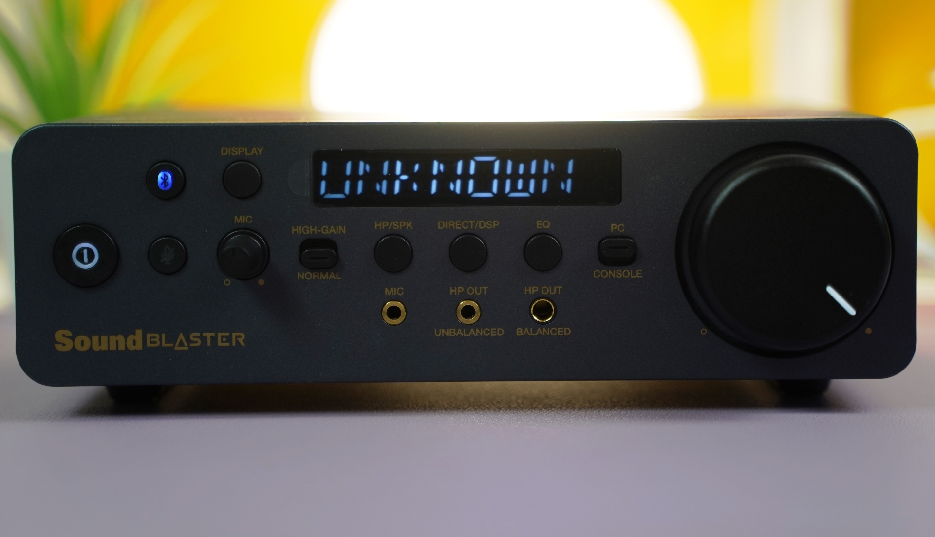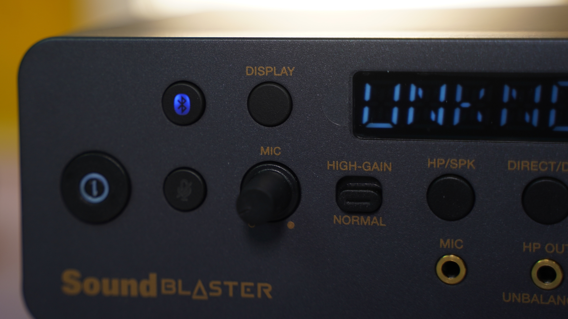 Η οθόνη θυμίζει αυτές που είχαν τα στερεοφωνικά της δεκαετίας του 90, είναι αρκετά φωτεινή και κάνει μια χαρά τη δουλειά της. Όσον αφορά τώρα στη λειτουργία Bluetooth, στη πράξη η SoundBlaster X5 λειτουργεί σαν bluetooth host ώστε να συνδέσουμε κινητό/tablet/υπολογιστή μέσω Bluetooth και να στέλνουμε ήχο ασύρματα στη SoundBlaster X5 και αυτή στα ακουστικά/ηχεία που της έχουμε συνδέσει. Ωστόσο, χρησιμοποιείται ο χαμηλής ποιότητας SBC codec ενώ ο ήχος παίζει μόνο όταν έχουμε τη SoundBlaster X5 σε DSP mode. Πάντως, είναι δυνατό να αναπαράγεται ήχος ταυτόχρονα τόσο από τη βασική μας πηγή όσο και από το Bluetooth, με την εφαρμογή της Creative να διαθέτει mixer για να ρυθμίσουμε την ένταση της κάθε πηγής ξεχωριστά. Επίσης, κατά τη σύνδεση USB, το μικρόφωνο που έχουμε συνδεδεμένο στη Soundblaster επιστρέφει τον ήχο πχ στο κινητό μας, οπότε κάποιος μπορεί να μιλάει στο κινητό του μέσω του μικροφώνου και να ακούει στα ακουστικά τον συνομιλητή του. Αξίζει να σημειώσουμε πως, έχοντας κάνει σύνδεση Bluetooth, αποκτάμε έλεγχο της Soundblaster X5 από το κινητό μέσω της εφαρμογής της Creative ασύρματα ώστε να φτιάξουμε Equalizer κτλ ακόμα και όταν η X5 λειτουργεί αυτόνομα, χωρίς δηλαδή να είναι συνδεδεμένη σε υπολογιστή.