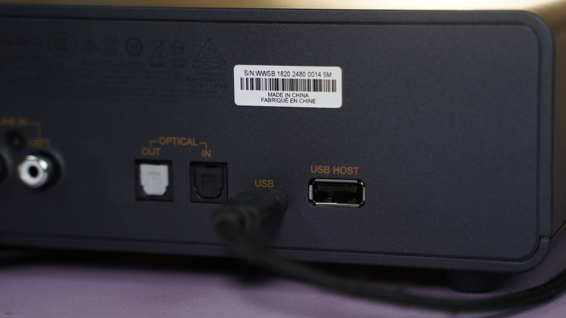 Σε αυτή τη θύρα μπορεί κανείς να συνδέσει είτε USB ακουστικά είτε κάποιο USB dongle για ασύρματα ακουστικά. Εμείς συνδέσαμε ασύρματα τα B&O Beoplay Portal κουμπώνοντας στη θύρα USB το dongle και τα ακουστικά λειτουργούν κανονικά. Μάλιστα, η SoundBlaster X5 μπορεί να παίζει ήχο σε αυτά και ταυτόχρονα είτε σε ηχεία είτε σε άλλα ακουστικά που είναι αναλογικά συνδεδεμένα, ενώ άμεσα εφαρμόζονται όλα τα DSP εφέ που πιθανόν να θέλουμε να χρησιμοποιήσουμε. Το γεγονός δε ότι τα ακουστικά (ή ακόμα και ηχεία, με περιορισμό τα 5V/100mA) που είναι συνδεδεμένα δεν εμφανίζονται στο Volume mixer των Windows, καθιστά τη χρήση τους ακόμα ευκολότερη.