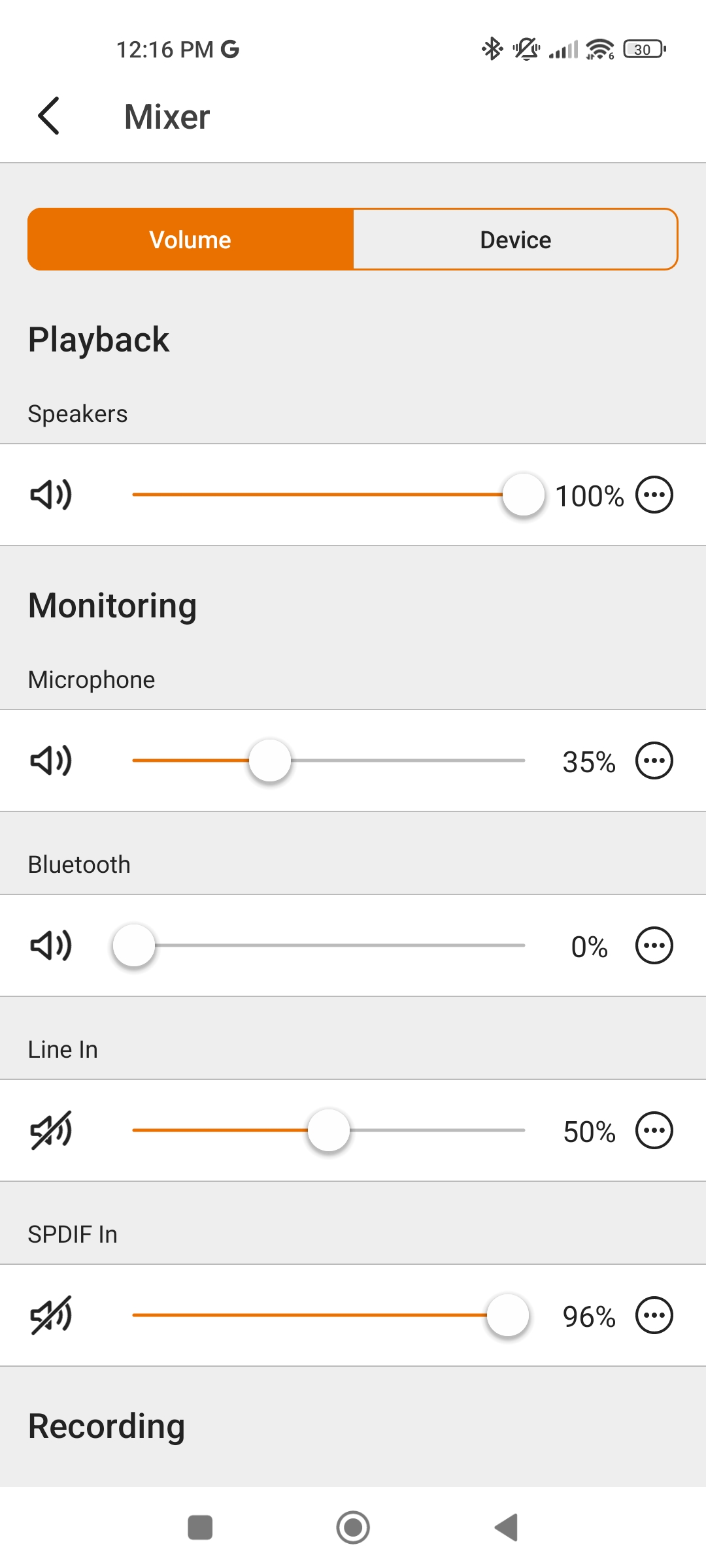 Στην από κάτω σειρά έχουμε πλήκτρο για άμεσο mute του μικροφώνου και δίπλα του ένα nob για τη ρύθμιση του gain του μικροφώνου (-96 to + 9 dB). Δεξιά από αυτό έχουμε ένα διακόπτη για το gain (normal/high) στην έξοδο των ακουστικών, πλήκτρο για την επιλογή ήχου μεταξύ direct ή DSP, πλήκτρο επιλογής Equalizer όταν παίζουμε ήχο μέσω του DSP και ένα διακόπτη μέσω του οποίου επιλέγουμε αν η κάρτα ήχου θα συνδεθεί σε PC ή σε κονσόλα (συγκεκριμένα Playstation 4/5). Ανεξάρτητα που έχουμε γυρισμένο το συγκεκριμένο διακόπτη, η SoundBlaster X5 λειτουργεί χωρίς κανένα πρόβλημα εφόσον τη συνδέσουμε σε Android τηλέφωνο με καλώδιο USB και χάρη στη σχετική εφαρμογή της Creative στο Playstore, έχουμε σχεδόν όλες τις λειτουργίες που παρέχονται και στον υπολογιστή.