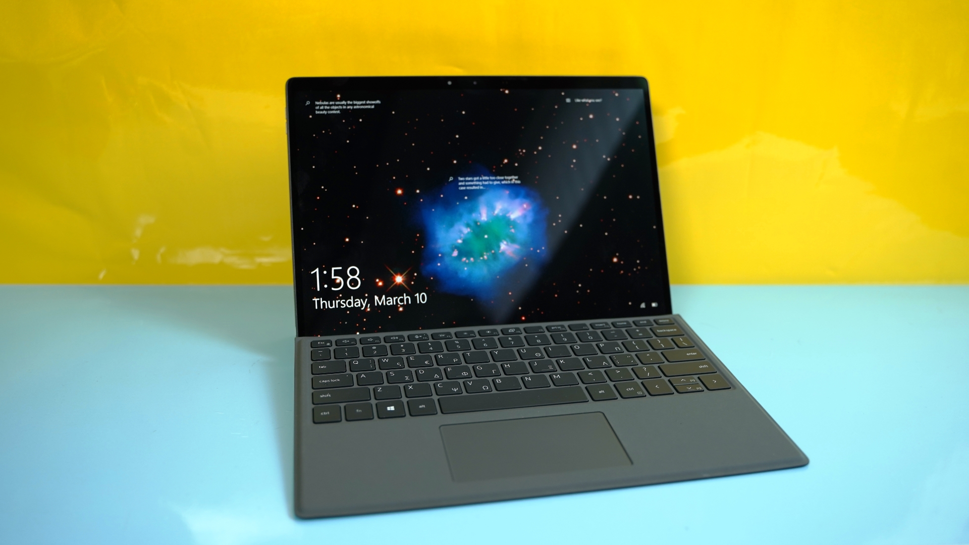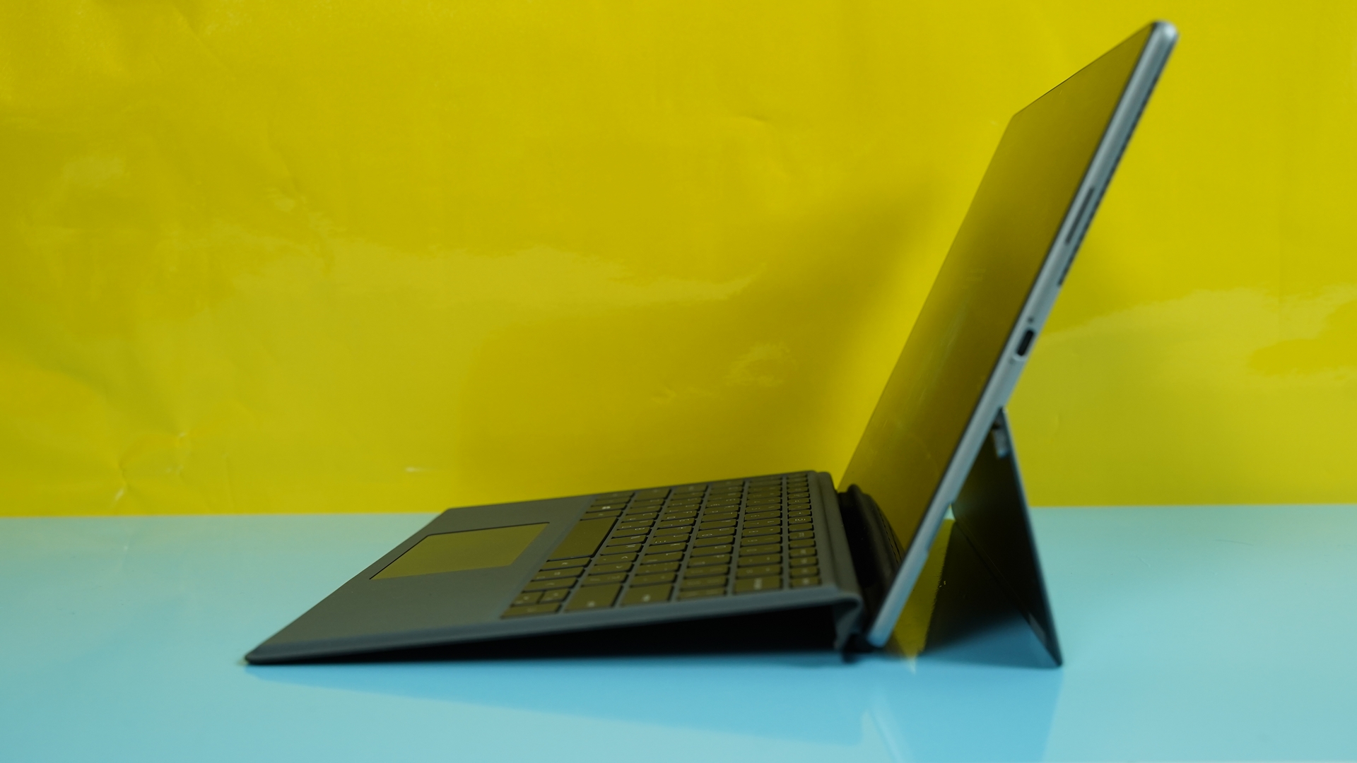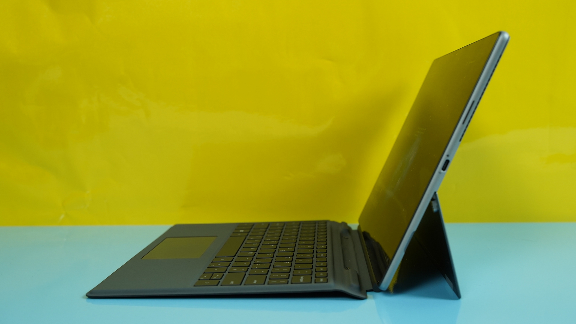 Στη κάτω πλευρά, συναντάμε τις επαφές και εγκοπές για τη μαγνητική σύνδεση του εξωτερικού, αποσπώμενου πληκτρολογίου. Το ίδιο το πληκτρολόγιο που λειτουργεί και σαν κάλυμμα για την οθόνη, διαθέτει ελληνικούς χαρακτήρες τυπωμένους παρέα με τους αγγλικούς και έχει εξαιρετική αίσθηση για το είδος και είναι αρκετά σταθερό κατά τη χρήση του, ειδικά όταν είναι τοποθετημένο σε επίπεδη θέση. Διαθέτει όμως και μια δυνατότητα να τοποθετηθεί υπό γωνία, κάτι που είναι βολικότερο κατά τη πληκτρολόγηση, όμως σε αυτή τη θέση δεν «ασφαλίζει» τόσο σταθερά και κάποιες φορές έφυγε από τη θέση του.
