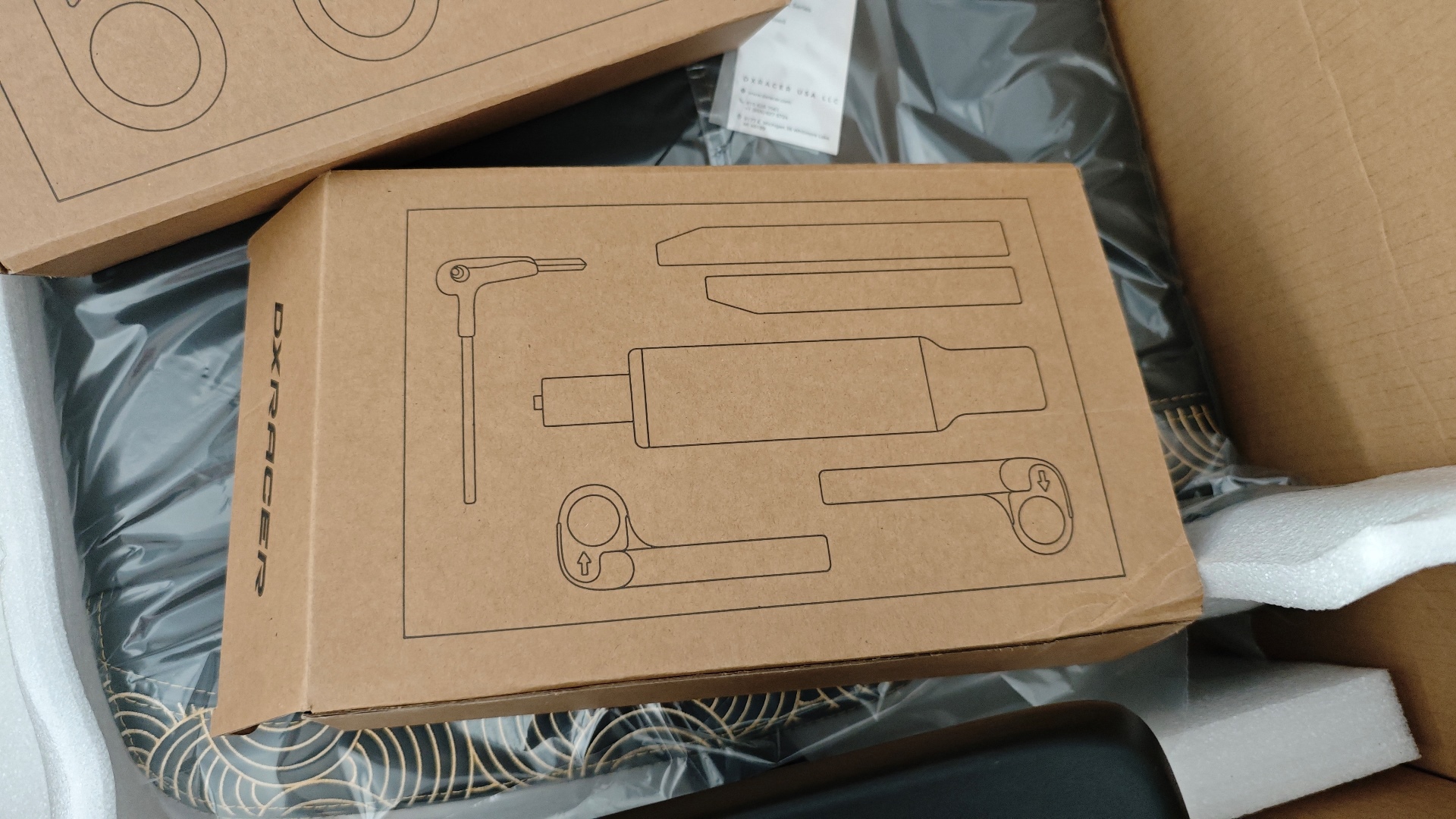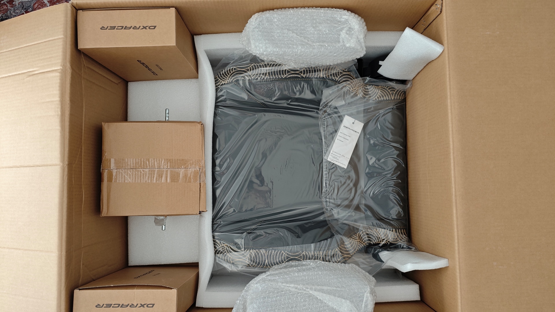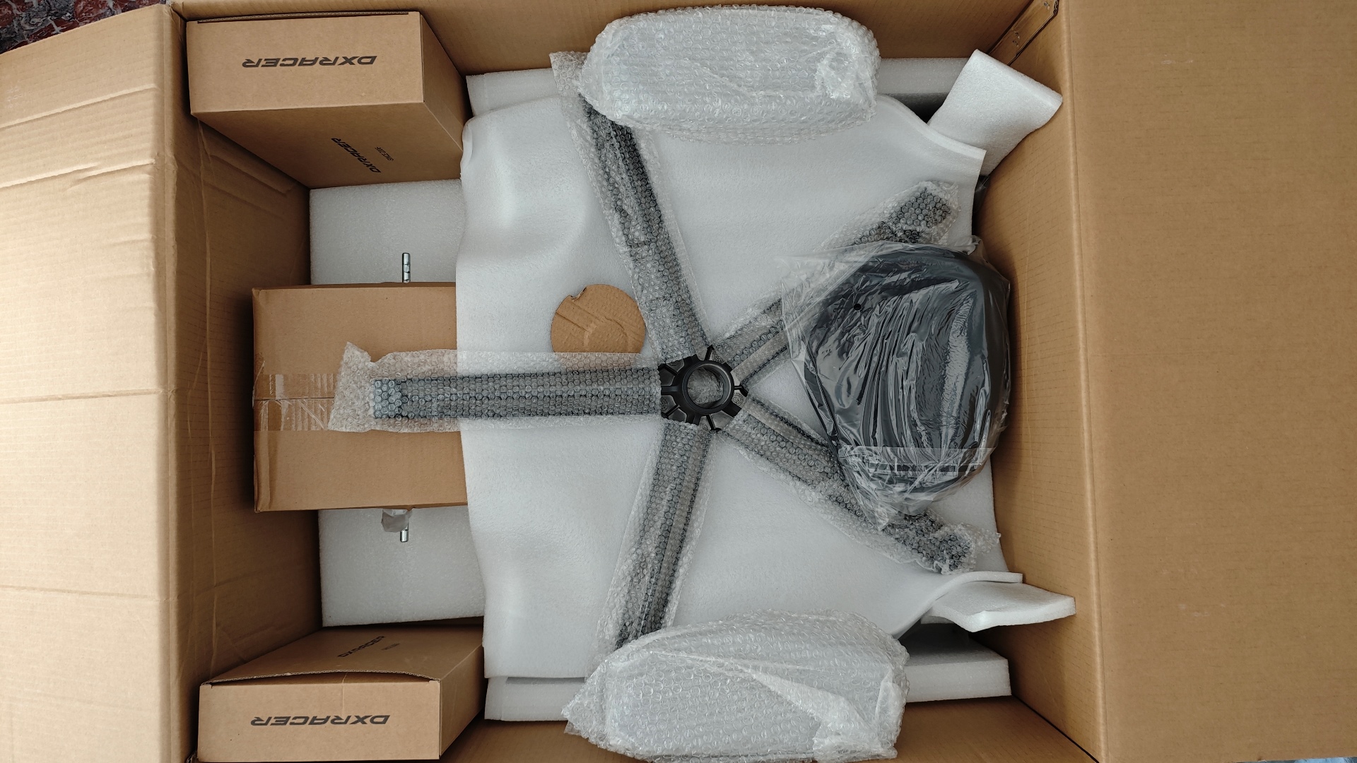Το πακέτο ήρθε σχετικά γρήγορα (η αποστολή γίνεται από τη Τσεχία). Η ίδια η συσκευασία προφανώς είναι μεγάλη, με τη καρέκλα να έρχεται αποσυναρμολογημένη και να απαιτεί από το χρήστη κάνα 20λεπτο για να την ετοιμάσει. Ανοίγοντας το κουτί, είδαμε μια καλά συσκευασμένη διάταξη των εξαρτημάτων της καρέκλας. Όλα ήταν στη θέση τους με ελάχιστο επιπλέον υλικό συσκευασίας. Συγκεκριμένα μέσα βρίσκουμε τη πλάτη, το κάθισμα, το μηχανισμό στήριξής του, τη βάση στήριξης για τα ροδάκια, τα ίδια τα ροδάκια (μέσα σε ένα δικό τους κουτί) και το προσφέφαλο.