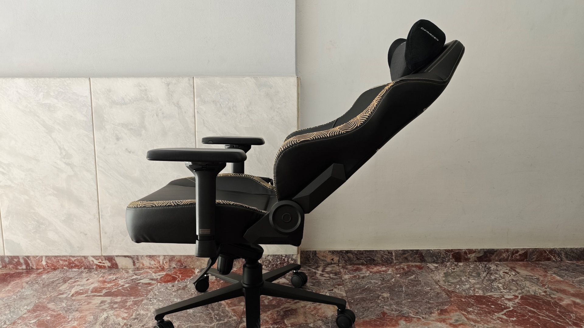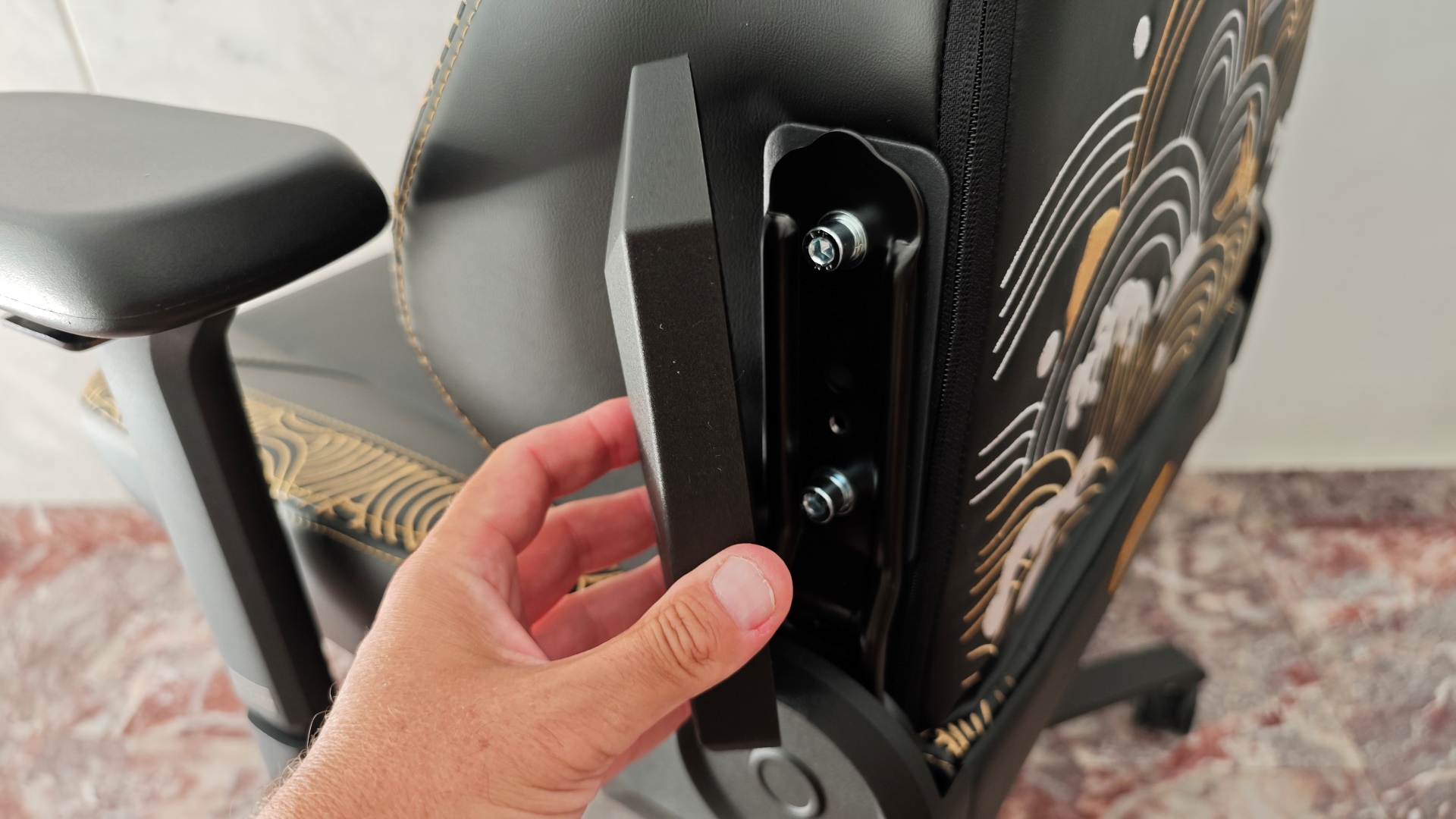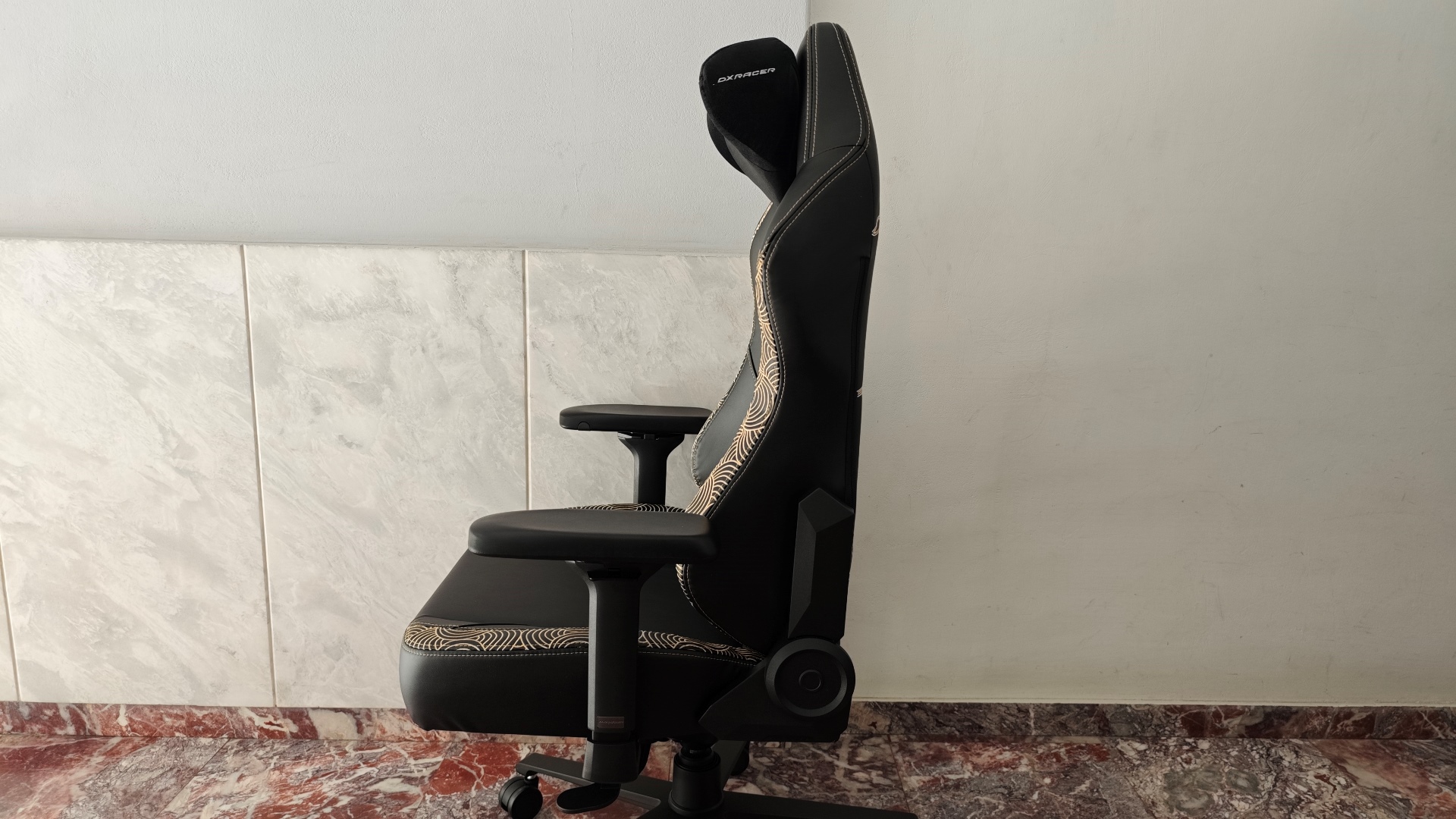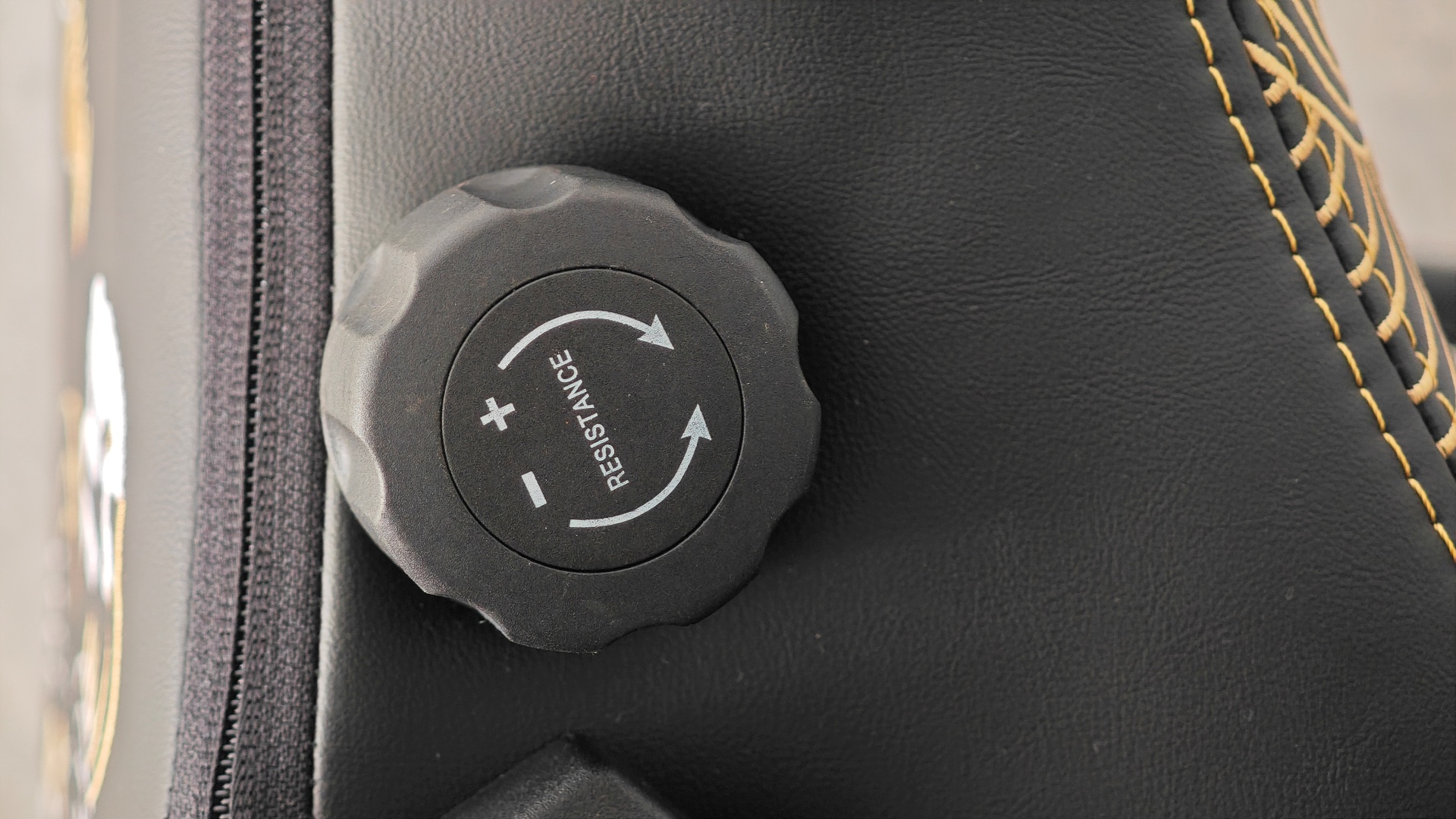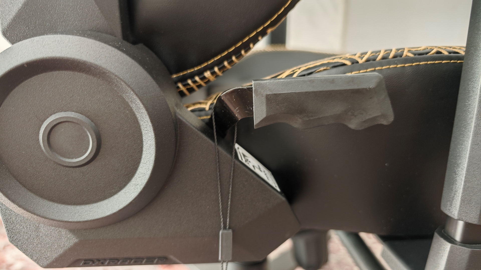 Η DXRacer επέλεξε να χρησιμοποιήσει ενσωματωμένο μηχανισμό οσφυϊκής υποστήριξης που ταιριάζει στην καμπύλη της σπονδυλικής στήλης. Υπάρχει ένα knob στη στο πλάι της καρέκλας και περιστρέφοντάς το νοιώθουμε τη βάση της πλάτης να εξέρχεται (ή να πηγαίνει προς τα μέσα αντίστοιχα). Ο καθένας προφανώς θα βρει το δικό του σημείο που νοιώθει τη βάση της πλάτης του να στηρίζεται σωστά, αλλά και μόνο η ύπαρξη του μηχανισμού είναι πολλές φορές ανώτερη από τη χρήση μαξιλαριών που έχουν άλλες καρέκλες. Και η αλήθεια είναι ότι το να έχεις τέτοιου είδους υποστήριξη για τη πλάτη, κάνει ακόμα πιο ξεκούραστη το να κάθεται κανείς για πολλές ώρες και μετά δε μπορείς να καθίσει σε καρέκλα χωρίς τέτοια δυνατότητα.