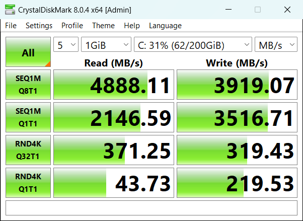 Όσον αφορά το σύστημα αποθήκευσης και αυτό με τη σειρά του βοηθάει ώστε όλα να γίνονται γρήγορα. Πρόκειται για έναν NVMe δίσκο 1TB, προσφέροντας περίπου 4,9GB/sec σε sequential ανάγνωση και 4GB/sec σε sequential εγγραφή. Πάντως, η επιλογή της Huawei να τον έχει χωρισμένο σε 2 partion με το βασικό των Windows να είναι μόλις 200Gb μπορεί να δημιουργήσει προβλήματα, καθώς εκ του εργοστασίου το partition του λειτουργικού έχει ελεύθερα μόλις 130GB και ο χρήστης θα πρέπει να προσέχει που εγκαθιστά εφαρμογές.