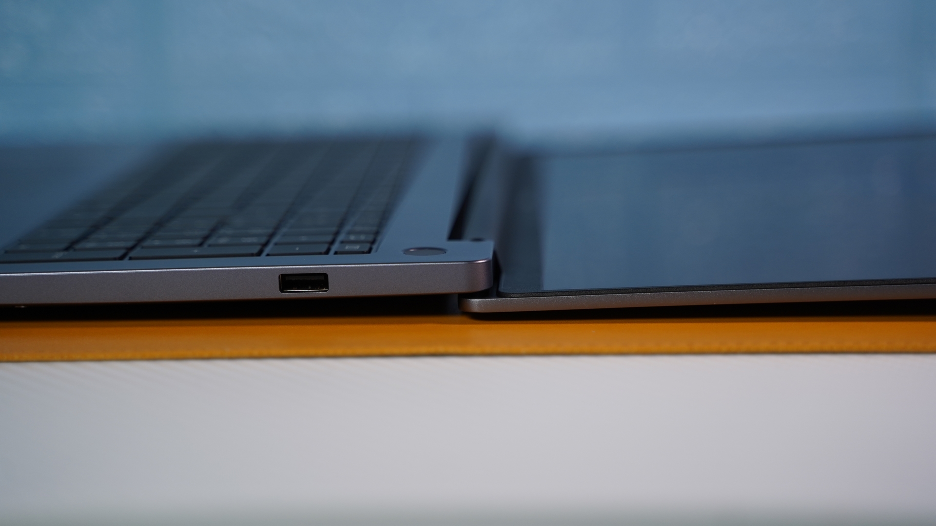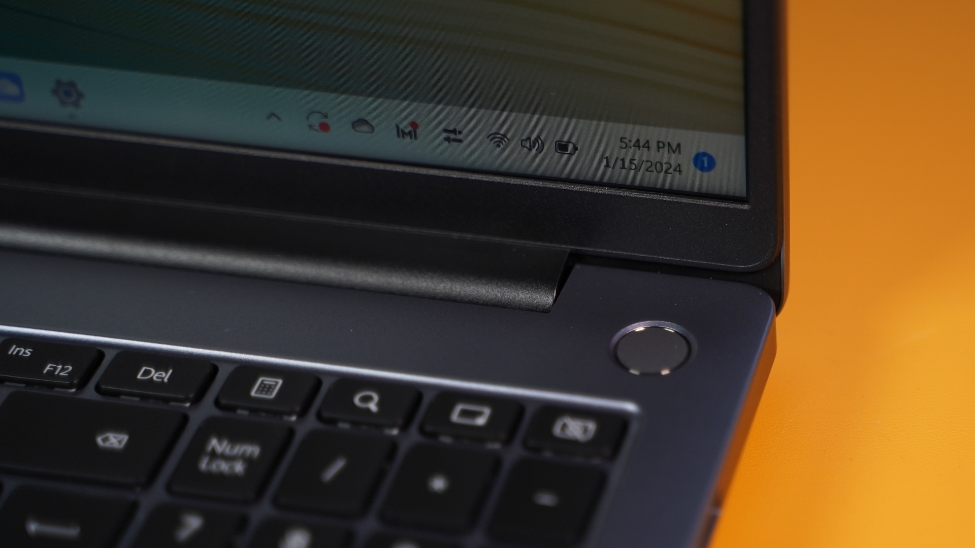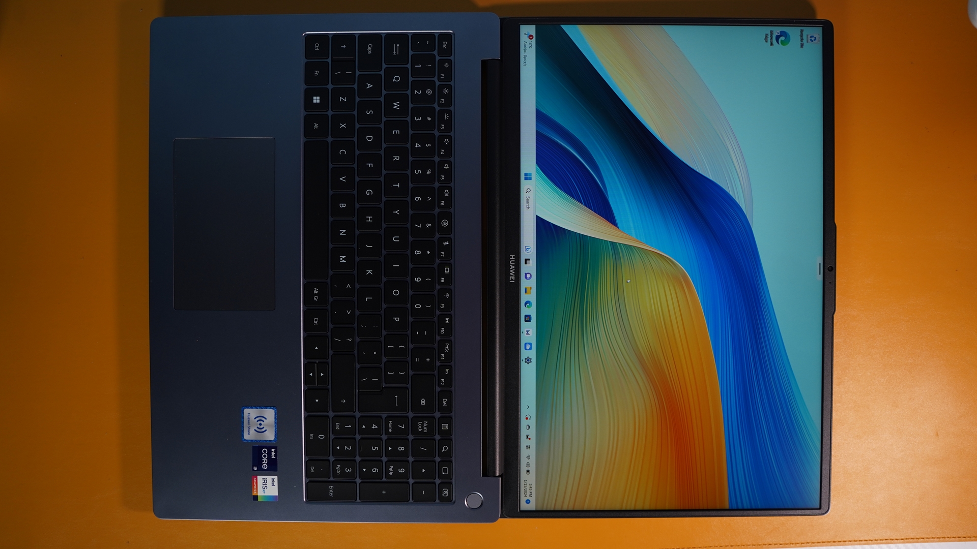 Δυστυχώς δεν υπάρχει κάποιος card reader για κάρτες SD. Ανασηκώνοντας την οθόνη, κάτι που όμως απαιτεί και δεύτερο χέρι, ερχόμαστε σε άμεση επαφή με την εικόνα που θα έχει όποιος χρησιμοποιεί το MateBook D16. Τα εξαιρετικά μικρά bezel δίνουν μια όμορφη πρώτη εικόνα. Το power button που βρίσκεται πάνω και δεξιά από το πληκτρολόγιο λειτουργεί και σαν αναγνώστης δακτυλικών αποτυπωμάτων (Windows Hello συμβατός) και έτσι ο χρήστης έχει ένα γρήγορο και ασφαλή τρόπο να κάνει login στα Windows 11 που είναι προ-εγκατεστημένα.