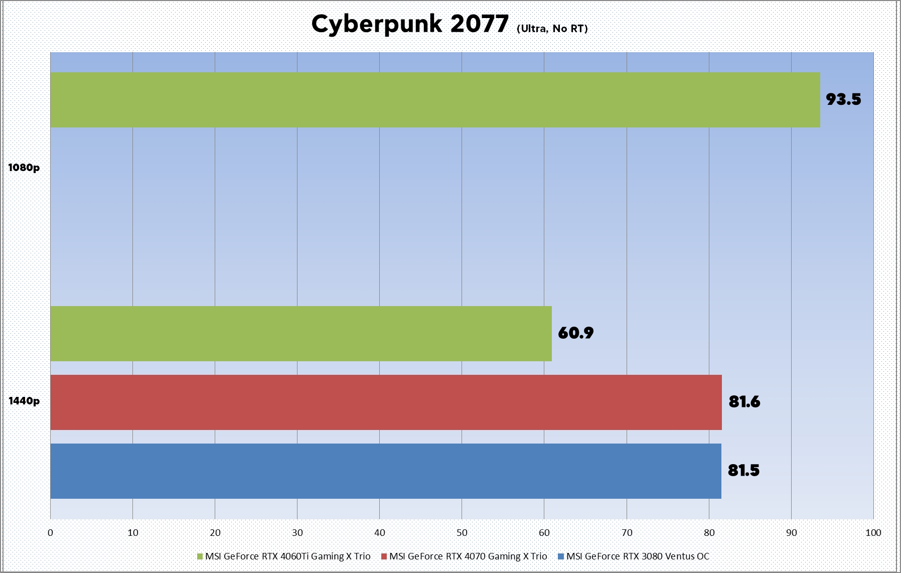 Σε γενικές γραμμές, η MSI GeForce RTX 4060Ti Gaming X Trio αποδίδει σε ανάλυση 1080p όπως αποδίδει η MSI GeForce RTX 4070 Gaming X Trio σε ανάλυση 1440pπου χρησιμοποιούμε σε καθημερινή βάση.