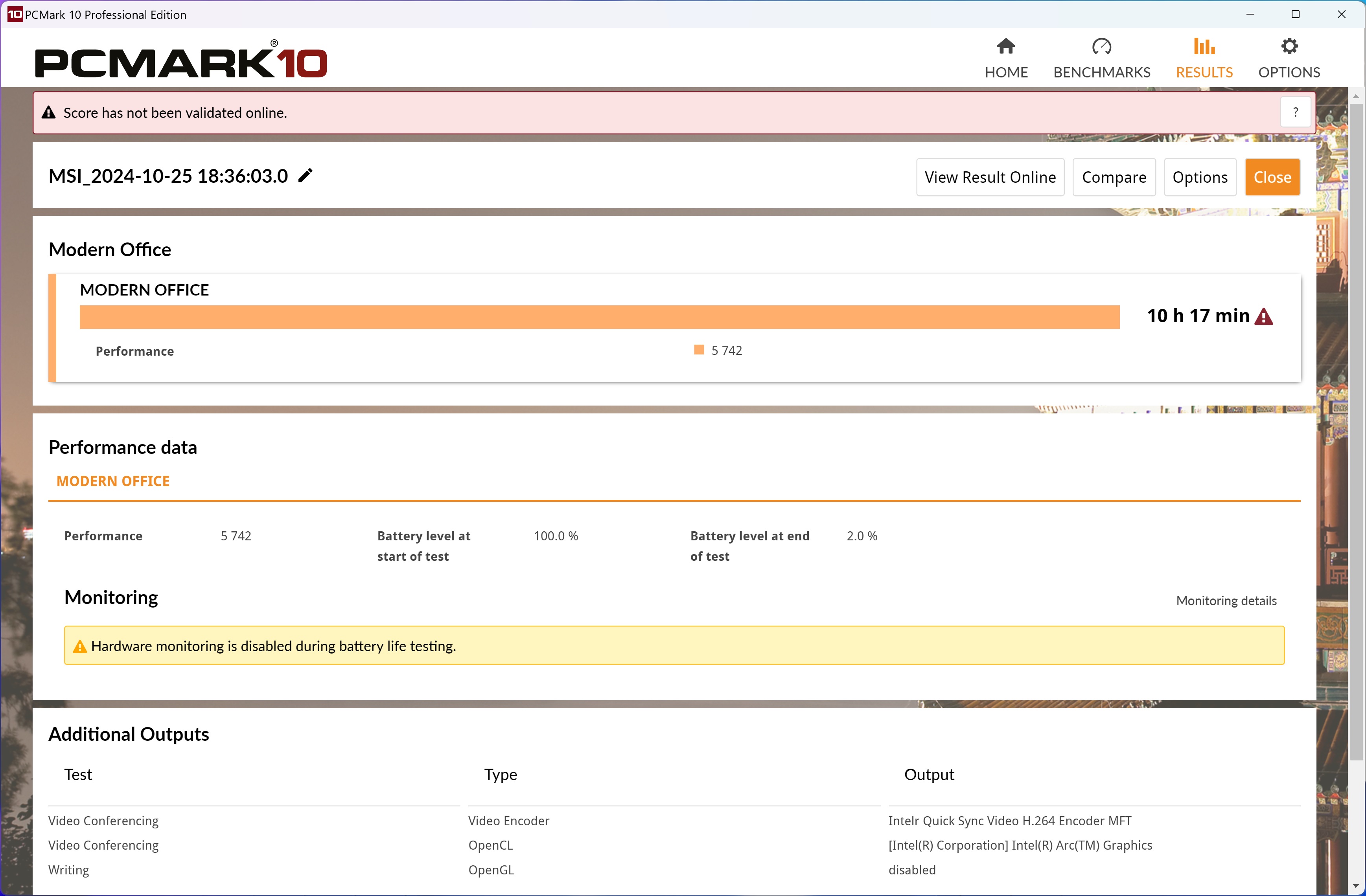 Πάντως, μπορεί κανείς να απολαύσει ταινίες για πολλές πολλές ώρες, καθώς η αυτονομία του συστήματος είναι πραγματικά εξαιρετική. Τρέξαμε το Procyon Video Battery Test με τη φωτεινότητα λίγο κάτω από τα 200 nits, με το Silent προφίλ στο MSI Center και Balanced στα Windows 11 με το laptop να αντέχει 14,5 ώρες! Αντίστοιχα, το Office Battery test του PC Mark 10 μας έδωσε σχεδόν πάνω από 10 ώρες χρήσης, με τις ίδιες ρυθμίσεις, όπου το σύστημα τρέχει διάφορες εφαρμογές γραφείου αλλά και video. Από τα παραπάνω είναι φανερό ότι ο χρήστης μπορεί άνετα να το πάρει μαζί του, χωρίς να χρειάζεται να μεταφέρει μαζί το φορτιστή, ενώ όταν θελήσει να το φορτίσει, μπορεί να το κάνει σχετικά γρήγορα.