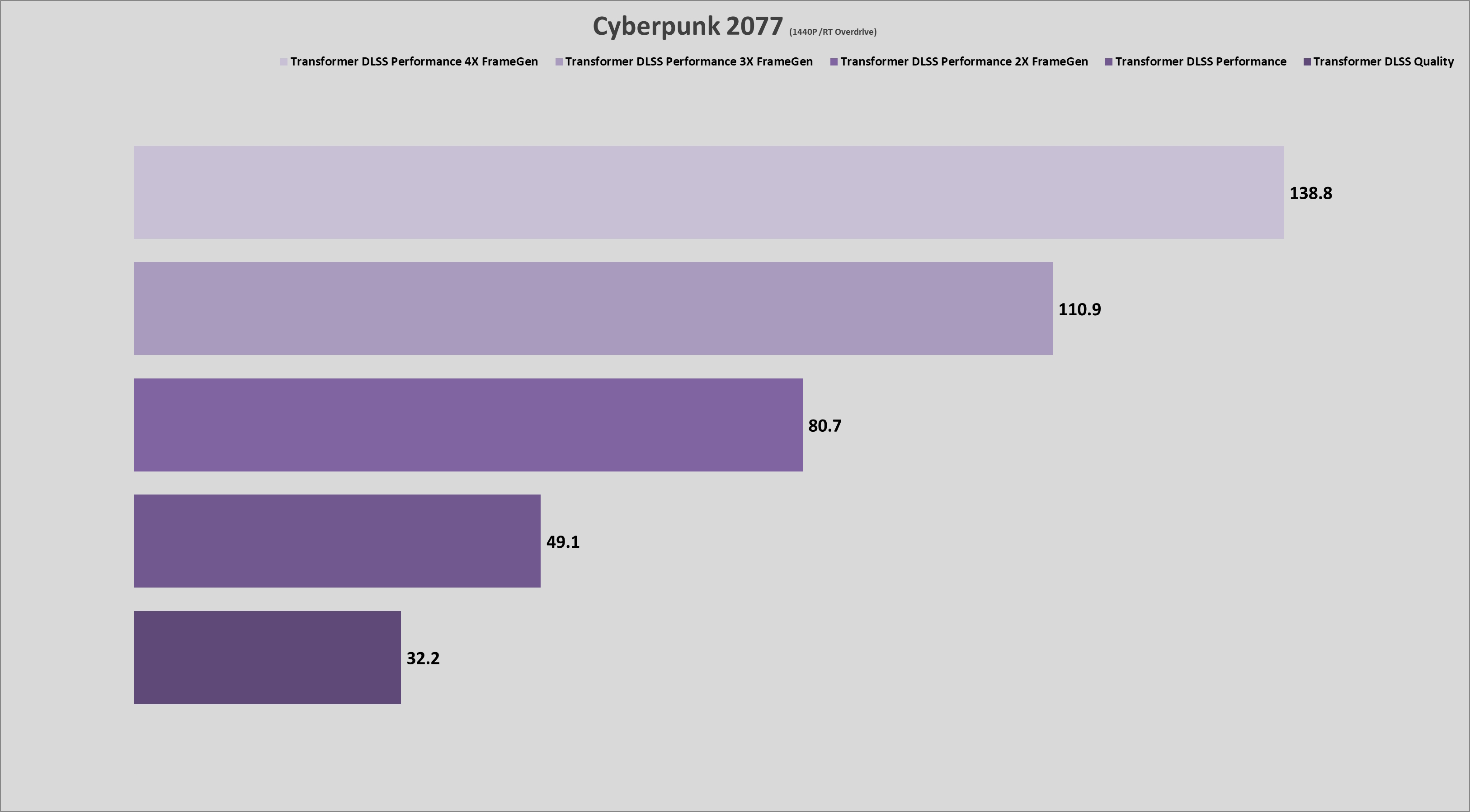 Η αλήθεια είναι πως ενεργό το RT Overdrive, το σύστημα δε μπορεί να έχει πάνω από 30fps ακόμα και με το DLSS στο Quality σε 1440p, αλλά με DLSS στο Performance πήραμε 49 fps τα οποία έφτασαν κοντά στα 140fps με 4x Framegen. Είναι χρήσιμο χαρακτηριστικό, από τη στιγμή που έχουμε και οθόνη στα 240Hz, ώστε να φτάσουμε το ‘οπτικό’ frame rate κοντά σε αυτό το όριο ευκολότερα.