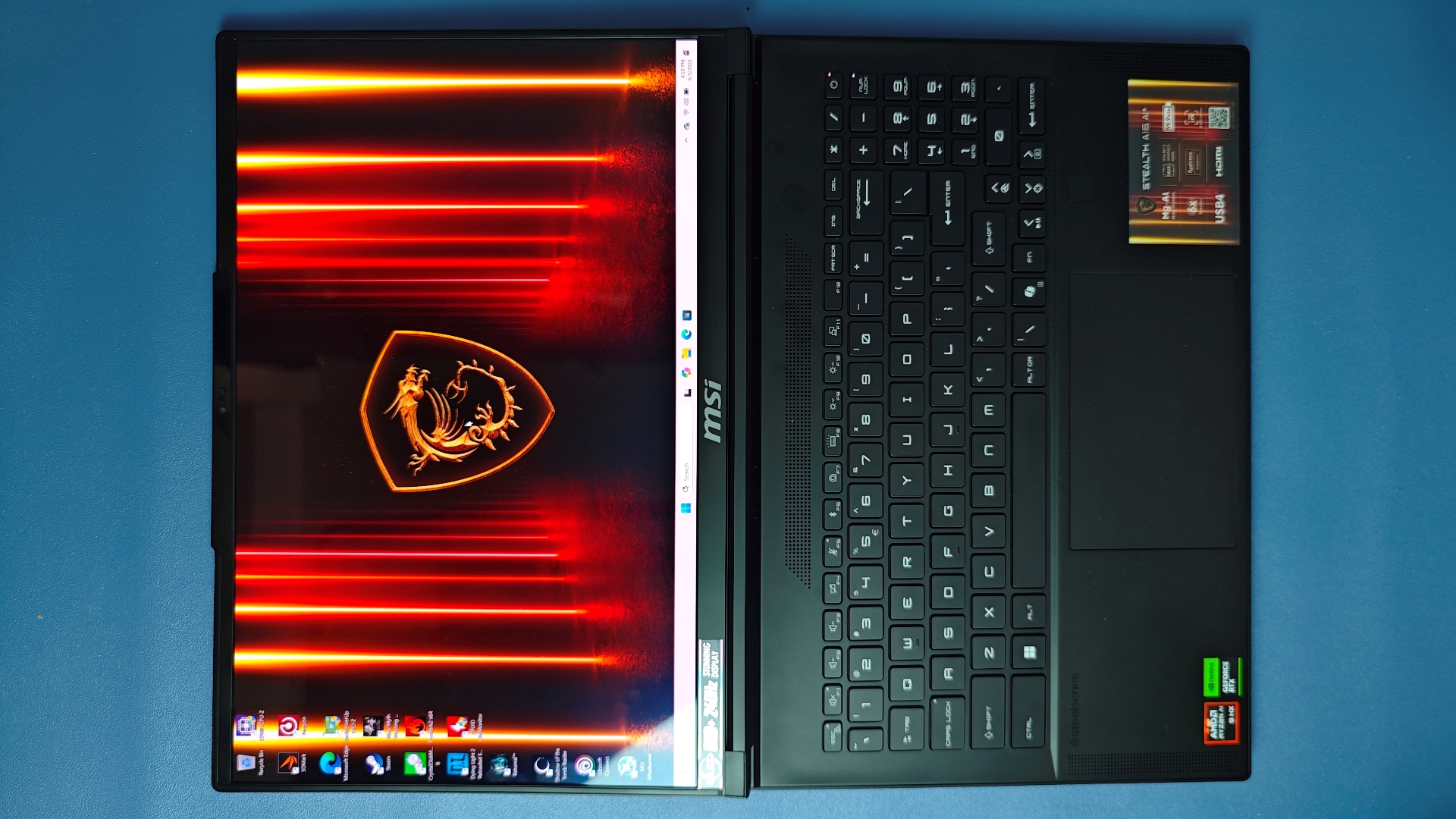 Μάλιστα, η οθόνη ανοίγει μέχρι 180 μοίρες. Στη πλάτη της οθόνης υπάρχει συναντάμε το δράκο της MSI ο οποίος δε ξεχωρίζει ιδιαίτερα και φαίνεται μόνο όταν πέσει το φως πάνω του. Ίσως από εκεί να έχει πάρει το όνομα Stealth η σειρά.