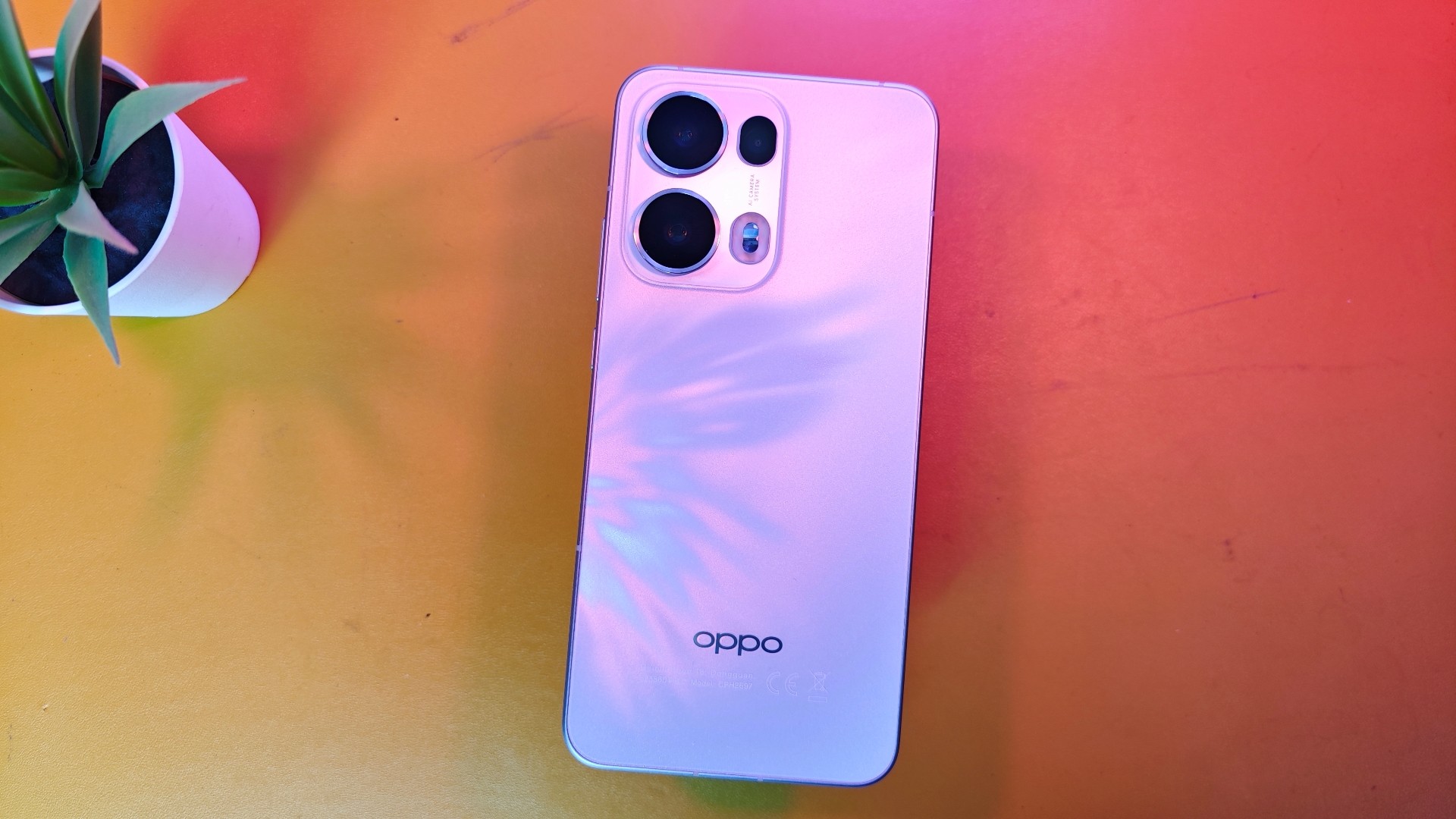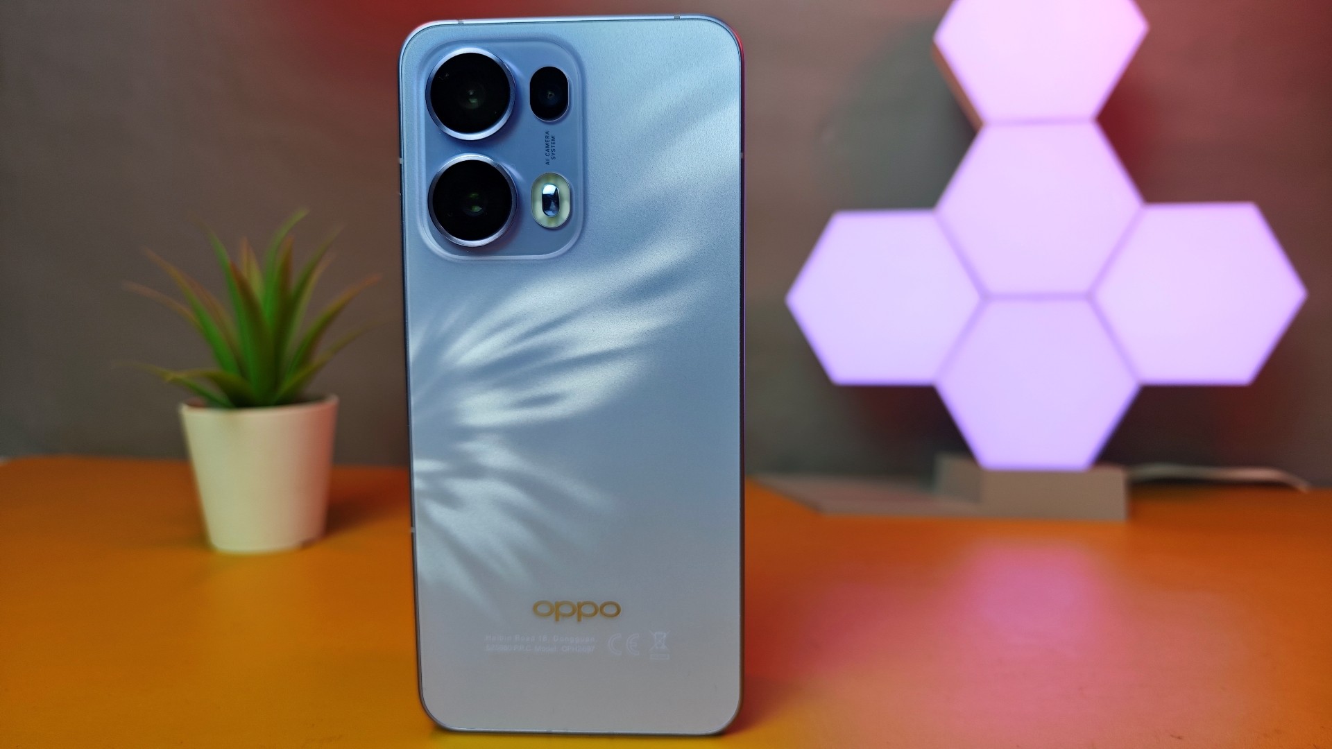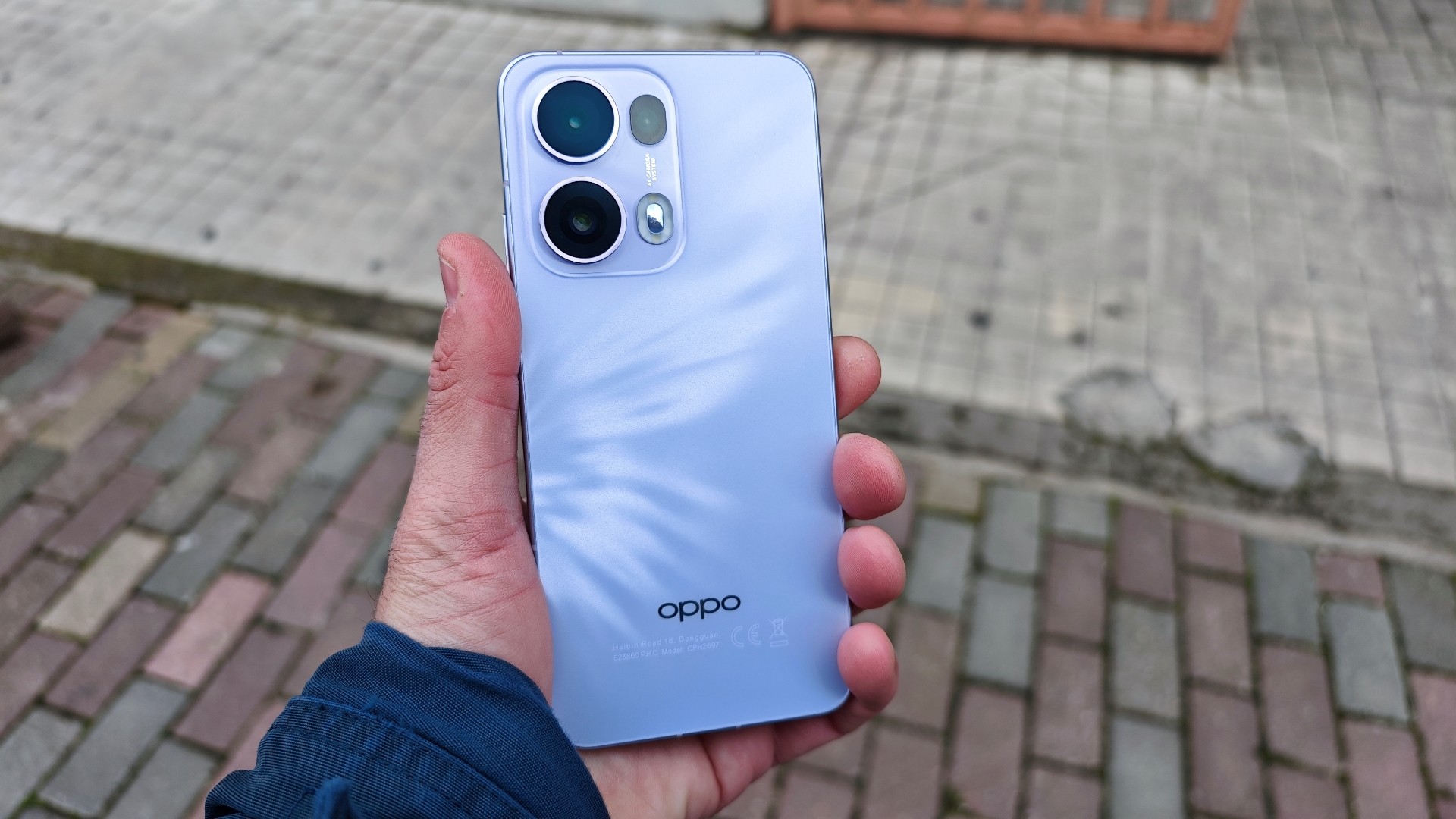 Παίρνοντας τη συσκευή στα χέρια, αντιλαμβάνεται κανείς μια αρκετά premium αίσθηση για τη κατηγορία τιμής. Με διαγώνιο οθόνης στις 6,83’’ (η οποία έχει περασμένη ζελατίνα προστασίας), η συσκευή είναι σχετικά μεγάλη σε επιφάνεια, αλλά πραγματικά να είναι άνετη στο χέρι, κάτι που οφείλεται τόσο στο μικρό πάχος όσο και στο χαμηλό βάρος (κάτω από 200 γραμμάρι). Είναι εντυπωσιακό πραγματικά το γεγονός ότι έχουμε μια συσκευή με μεγάλη οθόνη, μεγάλη μπαταρία που είναι ταυτόχρονα εξαιρετικά λεπτό στα 7,5mm και αρκετά ελαφρύ. Κατασκευαστικά, η Oppo έχει χρησιμοποιήσει αλουμίνιο για το frame, κάτι που αντιλαμβάνεται κάποιος με το που το πιάσει στα χέρια του. Όλες οι πλευρές είναι επίπεδες, με τις γωνίες να είναι στρογγυλεμένες. Πλήρως επίπεδη είναι και η γυάλινη πλάτη, με την έκδοση που έχουμε να είναι η Plume Purple. Πρόκειται για μια ανοιχτού μωβ χρώματος πλάτη, με ανάγλυφο το λογότυπο της εταιρείας.
