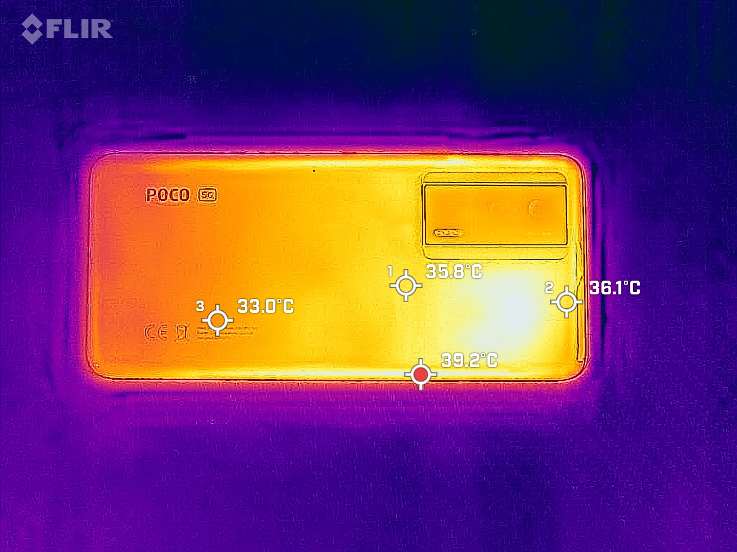 Το τηλέφωνο ζεσταίνεται μεν όταν παίζει κανείς παιχνίδια, αλλά όχι τόσο ώστε να είναι ενοχλητικό. Αξίζει να σημειώσουμε πως στο Stress Test του 3D Mark Wild Life Extreme το τηλέφωνο δεν έκανε καθόλου throttling με το θερμόμετρο να δείχνει 39-40 βαθμούς κελσίου στα θερμότερα σημεία του σώματος του Poco F5 Pro.
