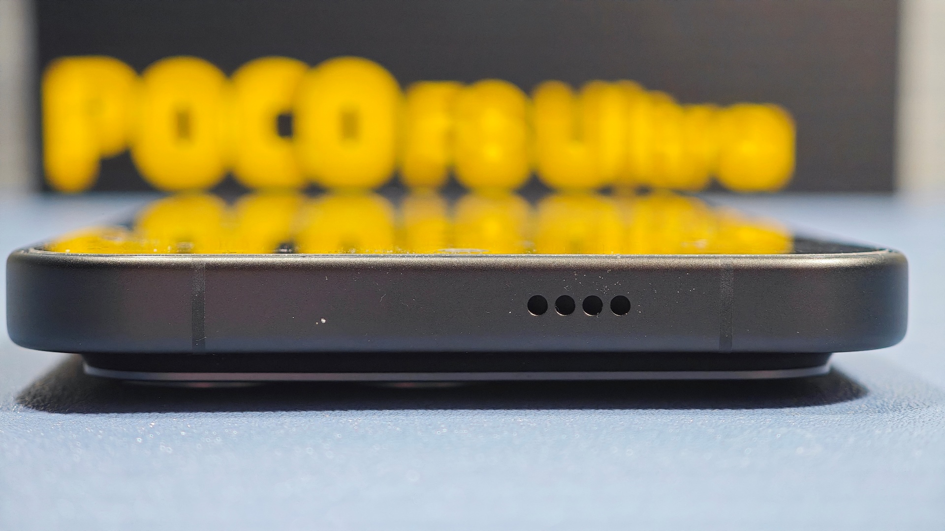 Στο σημείο αυτό πρέπει να σημειώσουμε πως το τηλέφωνο είναι το πρώτο της Poco (και ένα από τα λίγα της Xiaomi γενικότερα) που η USB θύρα είναι USB 3.2 με δυνατότητα εξόδου εικόνας! Αν και το τηλέφωνο δε διαθέτει κάποιο ειδικό software για την έξοδο εικόνας (όπως πχ το Samsung Dex), το απλό mirroring που κάνει, λειτουργεί εξαιρετικά. Στο πάνω μέρος, στα όρια της επίπεδης οθόνης, βρίσκεται το κεντρικό ακουστικό που λειτουργεί και σαν δεύτερο ηχείο. Αυτό συνεργάζεται με το κεντρικό ηχείο για στερεοφωνικό ήχο. Ωστόσο, το τηλέφωνο έχει πάει τον ήχο ένα βήμα παραπέρα, καθώς πέρα από την έναρξη της συνεργασίας με τη Bose όσον αφορά στον ήχο, η συσκευή ενσωματώνει και… woofer!
