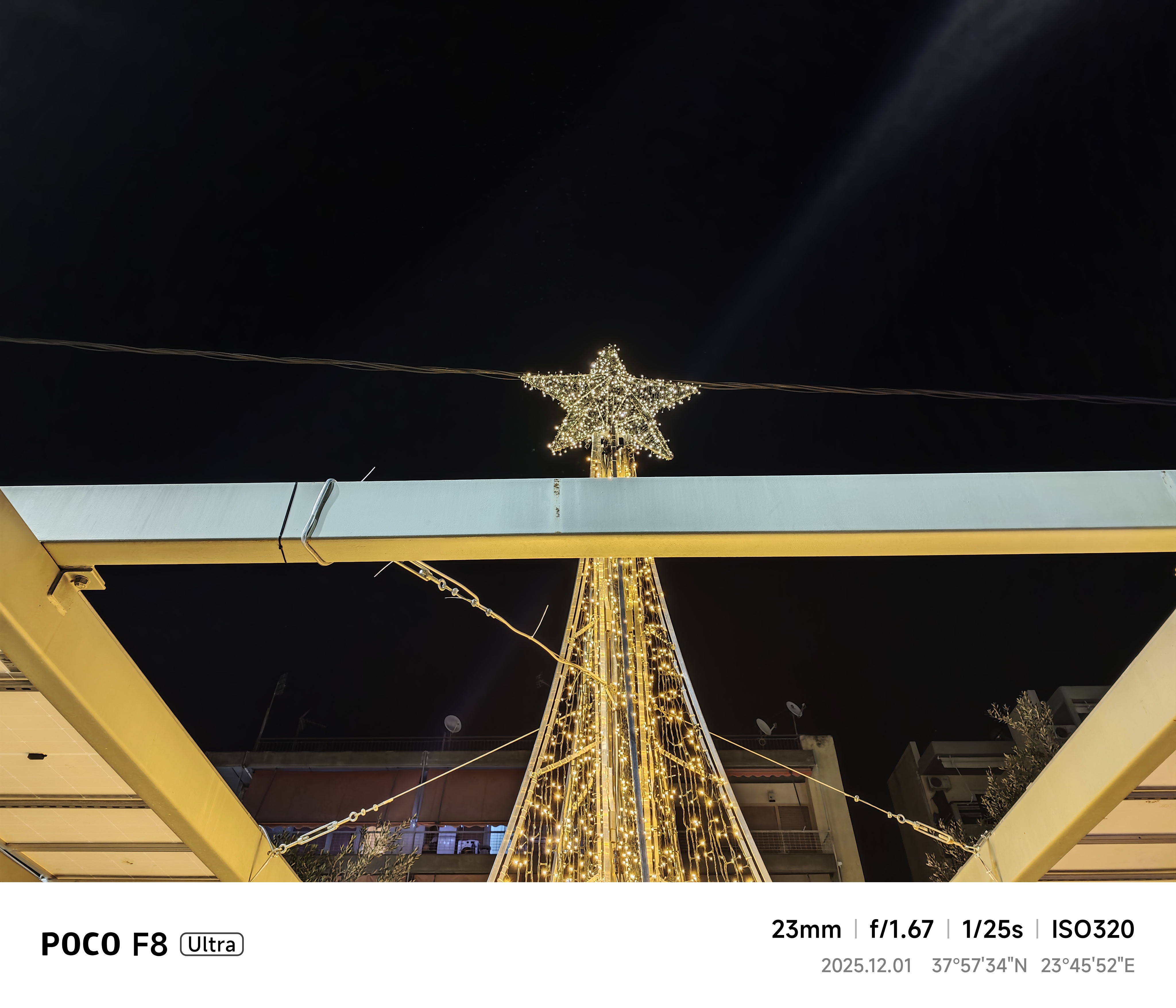 Πηγαίνοντας τώρα στον τομέα των καμερών, το Poco F8 Ultra κάνει ελάχιστες παραχωρήσεις. Δεν είναι προφανώς ένα camera phone, όμως μπορεί κανείς να το έχει σαν βασική συσκευή και να χρησιμοποιεί τις κάμερές του χωρίς άγχος. Κεντρικό ρόλο παίζει προφανώς ο βασικός αισθητήρας των 50Mpixel. Σε γενικές γραμμές, κάνει πολύ καλή δουλειά, προσφέροντας ζωντανά καλά χρώματα και αρκετή λεπτομέρεια.