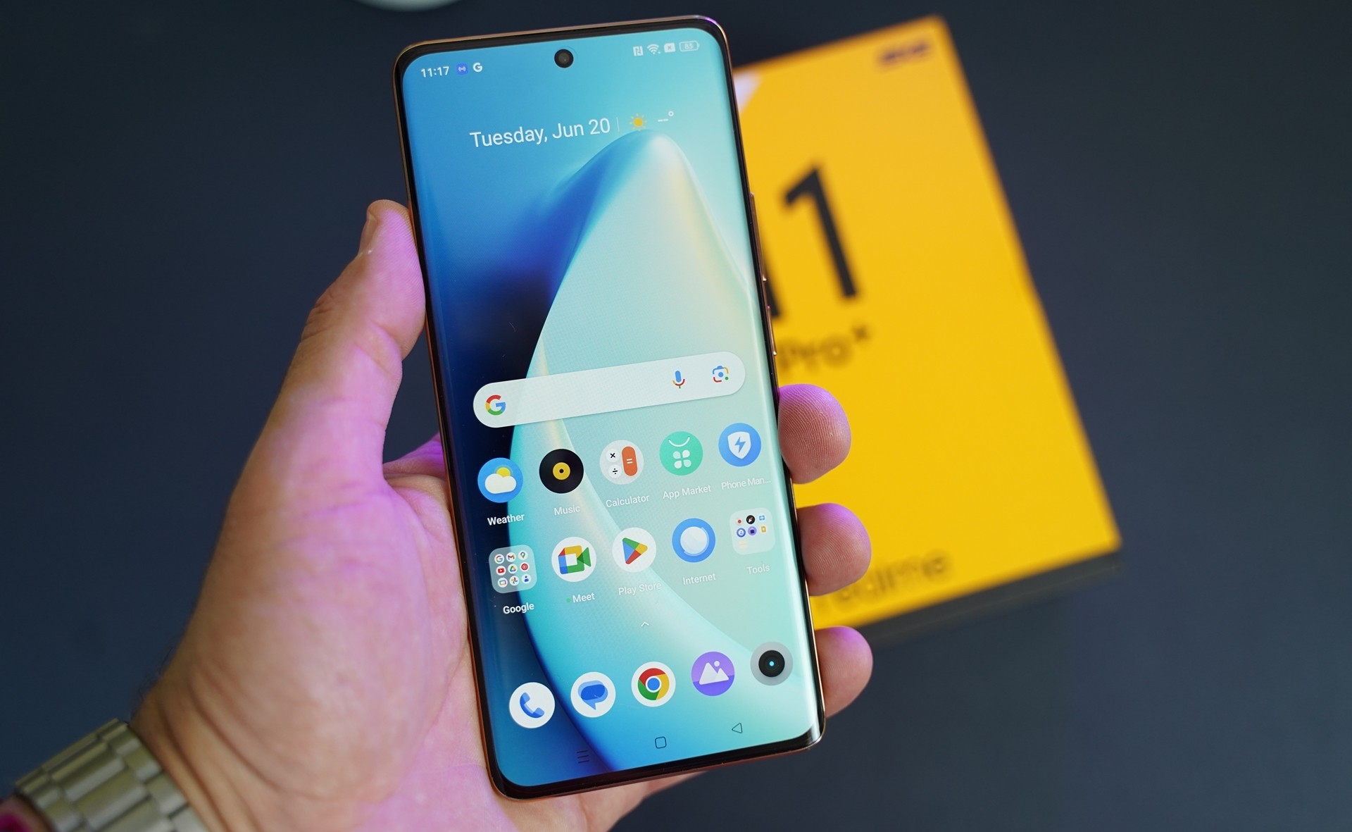 Το realme 11 Pro+ έρχεται μέσα σε μια τυπική συσκευασία της εταιρείας που περιλαμβάνει το ίδιο το τηλέφωνο, ένα pin ejector, φορτιστή στα 100 Watt (τεχνολογίας GaN) που προσφέρει πλήρη φόρτιση σε λιγότερο από 30 λεπτά, ένα καλώδιο Type-C USB και μια θήκη TPU. Παίρνοντας το ίδιο το τηλέφωνο στα χέρια, πραγματικά αυτό μας αφήνει μια άριστη αίσθηση, κρατιέται άνετα με το ένα χέρι, ενώ τα δάχτυλα φτάνουν χωρίς κόπο στα πλήκτρα ελέγχου.