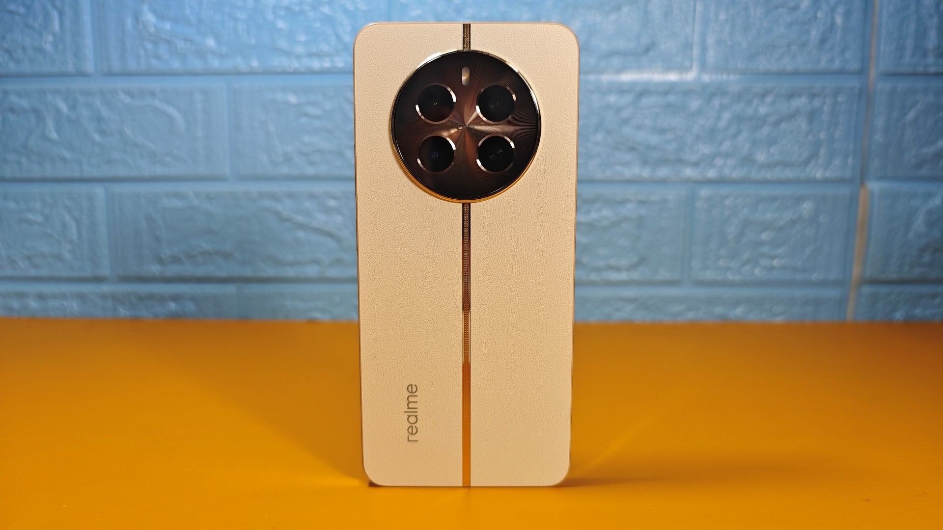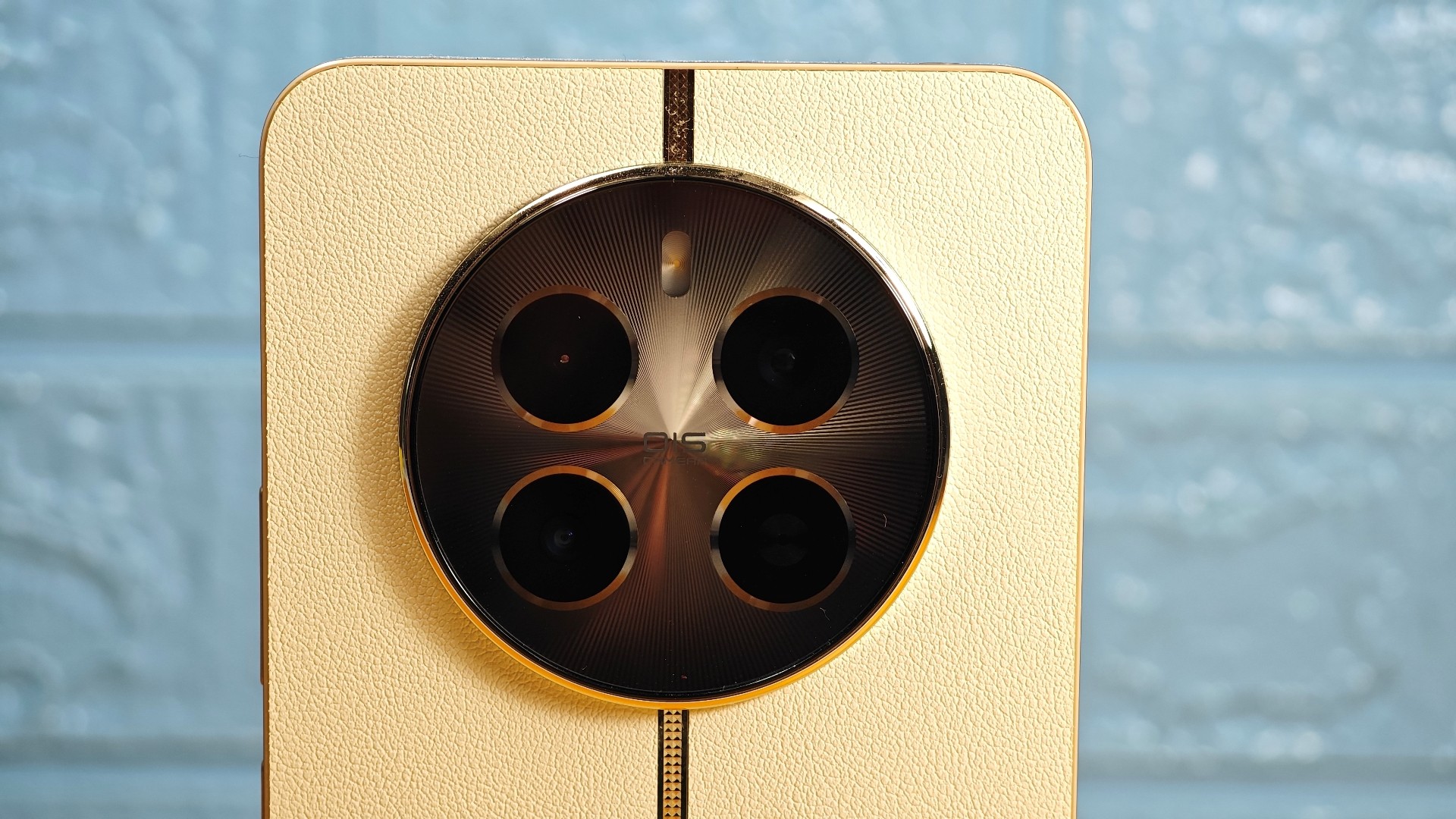 Στη πανέμορφη πλάτη συναντάμε και το τριπλό σύστημα καμερών με το led flash, τα οποία είναι τοποθετημένη σε ένα μεγάλο, κυκλικό camera bump. Ο σχεδιασμός της πλάτης θυμίζει αρκετά αυτόν τον 12 Pro+. Χρησιμοποιεί συνθετικό δέρμα, με μια χρυσή λωρίδα να χωρίζει κάθετα τη πλάτη. Η πλάτη διασχίζεται κάθετα από μια χρυσή λωρίδα. Η υφή που έχει επιτρέπει στο χρήστη να το κρατά άνετα χωρίς αυτό να γλιστρά και έτσι δεν απαιτείται θήκη τηλεφώνου. Αντίστοιχα, ένα δαχτυλίδι βρίσκεται γύρω από το camera bump, το οποίο στο εσωτερικό του περιλαμβάνει τέσσερα camera modules και το led flash. Βέβαια, όπως είπαμε, οι κάμερες είναι τρεις και το τέταρτο βρίσκεται εκεί για λόγους συμμετρίας. Ο υπόλοιπος χώρος του camera bump έχει ένα πανέμορφο πράσινο ιριδίζον χρώμα, το οποίο δημιουργεί εντυπωσιακή εικόνα όταν το φως πέφτει πάνω του.