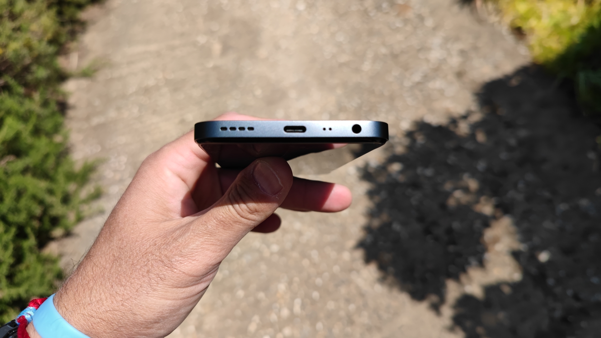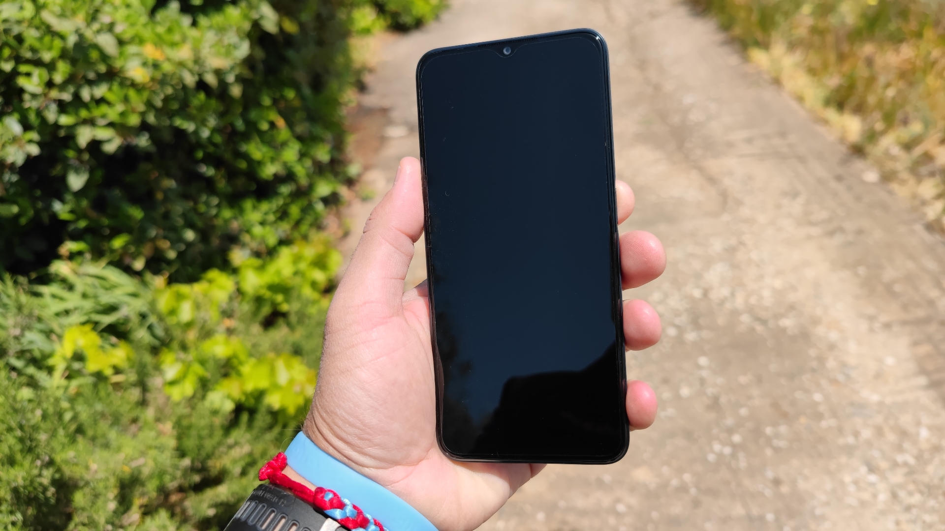 Στο κάτω μέρος έχουμε το ηχείο το οποίο έχει ικανοποιητική ένταση (αν και λείπουν τα μπάσα), έξοδο ακουστικών και τη θύρα type-C USB.Στην αριστερή πλευρά βρίσκονται τα πλήκτρα ελέγχου της έντασης ήχου ενώ στη δεξιά πλευρά, σε μια εσοχή, το power button που λειτουργεί και σαν αναγνώστης δακτυλικών αποτυπωμάτων, ο οποίος λειτουργεί εξαιρετικά γρήγορα. Το τηλέφωνο στο χέρι έχει καλή αίσθηση και παρόλο που ζυγίζει 189 γραμμάρια, κρατιέται πολύ καλά με το ένα χέρι, ενώ τα δάχτυλα φτάνουν χωρίς κόπο στα πλήκτρα ελέγχου. Η οθόνη καταλαμβάνει το μεγαλύτερο μέρος της πρόσοψης, αφήνοντας ένα σχετικά μεγάλο bezel στο κάτω μέρος, με τη selfie camera να είναι κεντρικά τοποθετημένα ακολουθώντας το σχεδιασμό «δάκρυ» δηλαδή η οθόνη κάνει μια μικρή εσοχή στο σημείο της κάμερας. Ακριβώς από πάνω από τη κάμερα, υπάρχει το ακουστικό το οποίο ίσα που φαίνεται. Γενικά, η πρόσοψη αφήνει άριστη εντύπωση, προσφέροντας αυτό που λέμε full view display. Ποιοτικά, είναι συμπαθητική, με επαρκή φωτεινότητα και συνολικά για IPS panel, μας άφησε απόλυτα ικανοποιημένους