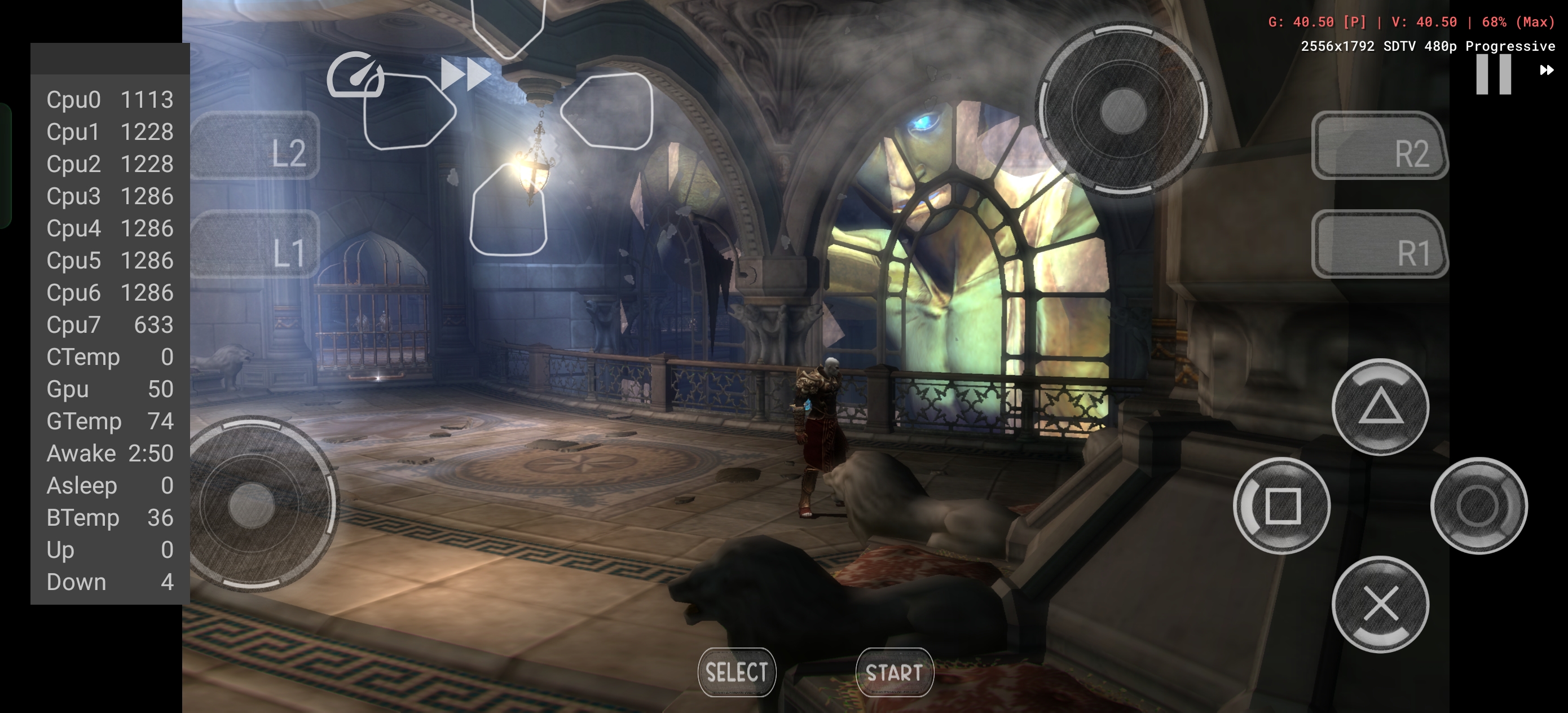 Οι επιδόσεις του Adreno 735 δεν είναι αρκετές για 60fps σε 4x ανάλυση στο God of War 2 του PS2 μέσω Aether SX2. Το frame rate είναι γύρω στα 40fps