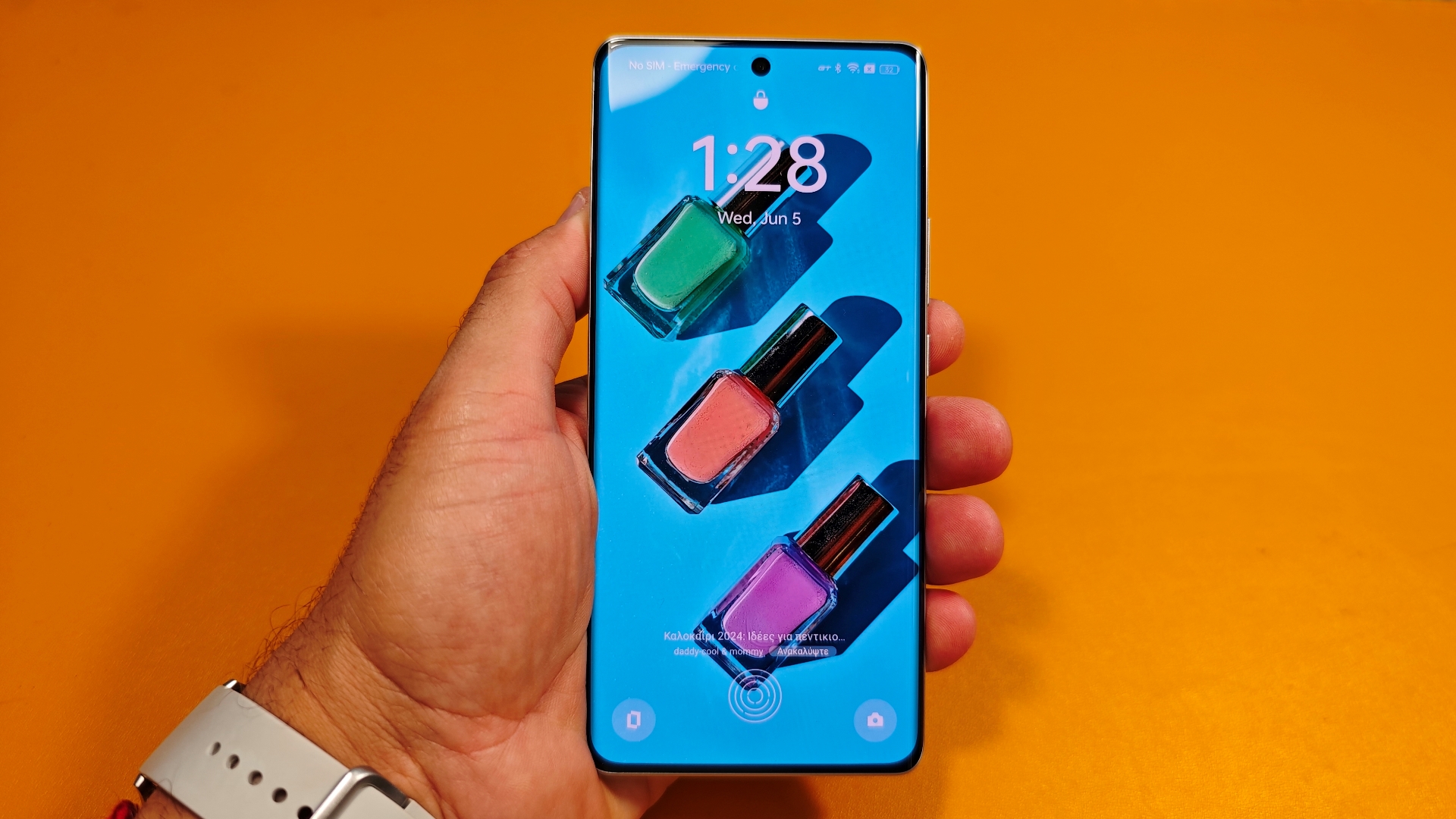 Όπως είπαμε, η οθόνη έχει διαγώνιο 6,78’’ και είναι με διαφορά η καλύτερη οθόνη που έχουμε δει σε τηλέφωνο της εταιρείας. Πρόκειται για ένα Amoled panel υψηλής ανάλυσης 2780x1264 pixel, το οποίο όμως είπαμε είναι κυρτό στις άκρες, ενώ τα bezel σε όλες τις πλευρές είναι ομοιόμορφα και πραγματικά μικρά. Κάτι που είναι εξαιρετικό σαν λειτουργία είναι το γεγονός ότι μπορεί κανείς να χρησιμοποιεί την οθόνη ακόμα και με βρεγμένα χέρια, όπως είχαμε δει και στο OnePlus 12. Ακόμα και αναγνώστης δακτυλικών αποτυπωμάτων που είναι μέσα στην οθόνη (δυστυχώς χαμηλά σε αυτή) λειτουργεί εύκολα και τα δάχτυλα βρεγμένα! Επιπλέον, μπορεί να χρησιμοποιηθεί και για τη μέτρηση των παλμών, μέσα από τη σχετική εφαρμογή που βρίσκεται στην επιλογή realme lab. Η ίδια η οθόνη καλύπτεται από γυαλί Gorilla Glass Victus 2, πάνω από το οποίο υπάρχει ζελατίνα προστασίας και η φωτεινότητά της είναι υψηλή (σύμφωνα με τη realme φτάνει στα 6000nits peak). Εμείς μετρήσαμε 553 nits με ρύθμιση max brightness, 913 nits με ενεργό το extra brightness, με την οθόνη να φτάνει στα 1488 nits με το auto brightness σε συνθήκες υψηλού περιβάλλοντος φωτισμού.