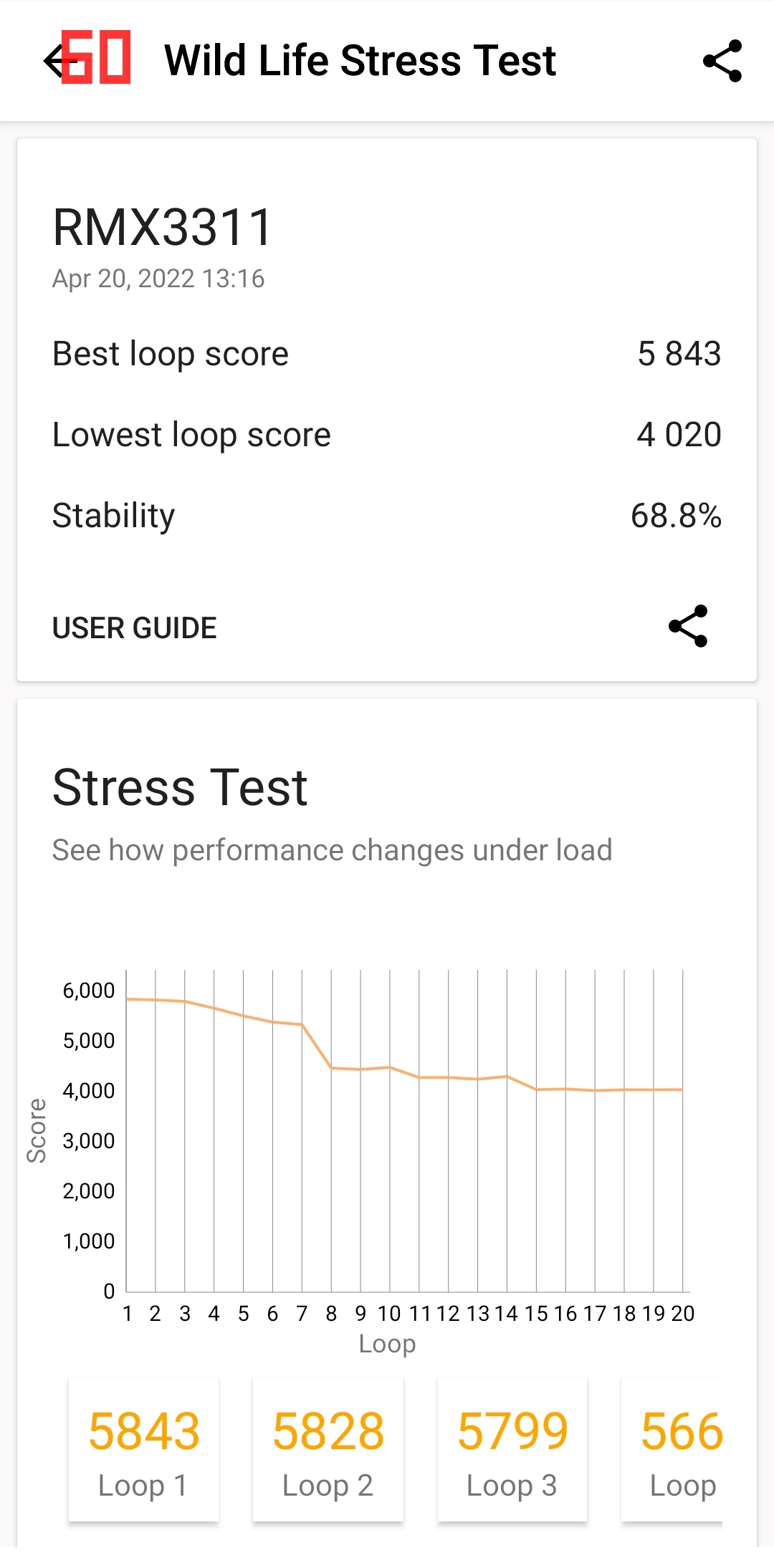 Η οθόνη λειτουργεί σε FullHD+ ανάλυση και τρέχει στα 120Hz. Πέρα από το γεγονός ότι η ανάλυση είναι χαμηλότερη, η οθόνη είναι τυπική ως προς το πώς διαχειρίζεται το refresh rate . Δυο είναι τα διαθέσιμα refresh rate, τα 120hz και τα 60Hz με το panel να αλλάζει το ρυθμό ανάλογα με την εφαρμογή που τρέχει. Το interface τρέχει πάντα στα 120Hz ενώ εφαρμογές όπως η κάμερα, το Netflix και οι περισσότερες της Google (ακόμα και το gmail) λειτουργούν τα 60Hz. Ο browser τρέχει στα 120Hz, όπως και το Youtube εκτός και αν βάλουμε βίντεο να παίζει σε πλήρη οθόνη, οπότε η οθόνη γυρνάει στα 60Hz. Στο σημείο αυτό να σημειώσουμε πως δε καταφέραμε να βρούμε κανένα παιχνίδι που να μπορεί να παίξει στα 120fps, καθώς σε όλα όσα δοκιμάσαμε (Mortal Kombat, Titan Quest, Alto’s Odyssey κ.α.) η οθόνη ρυθμίστηκε στα 60Hz και το frame rate κλείδωσε επίσης στα 60fps (όπως το αναφέρει το Game Space). Γενικότερα όμως το gaming είναι μια χρήση που θα εκτιμήσουν όλοι όσοι το αποκτήσουν. Όσα παιχνίδια δοκιμάσαμε παίζουν άνετα, ακόμα και το Genshin Impact (max ρυθμίσεις, 50-60fps). Κάτι άλλο που δοκιμάσαμε στη συσκευή είναι οι διάφοροι emulators που κυκλοφορούν για παιχνιδομηχανές όπως το PSP, το PS2, το Gamecube, το Wii και το 3DS. Και εδώ το realme GT2 εντυπωσιάζει, αφού από την μια η δύναμη του διδύμου Snapdragon 888/Adreno 660 και από την άλλη η μέγιστη συμβατότητα με τους emulators του Adreno, κάνουν τους emulator να τρέχουν άνετα. Όλα τα παραπάνω πάντως δεν έχουν τόση σημασία γιατί στη πράξη δε μπορεί κανείς να παίξει για ώρα με τους emulators στη μέγιστη δυνατή ανάλυση και μεγάλο GPU load. Και αυτό γιατί το SoC αρχίζει να ζεσταίνεται και μετά τους 45 βαθμούς κελσίου (όπως το παρατηρήσαμε στο GameSpace) ξεκινάει το throttling και εν τέλει οι επιδόσεις του τηλεφώνου μειώνονται. Άλλωστε και το 3D Mark το έδειξε αυτό, με το σκορ των 5843 πόντων, να πέφτει στους 4020 στο τέλος του Wilde Life Stress Test με το stability να είναι της τάξης του 69% (αρκετά καλύτερο πάντως από άλλα τηλέφωνα με τον SD888).