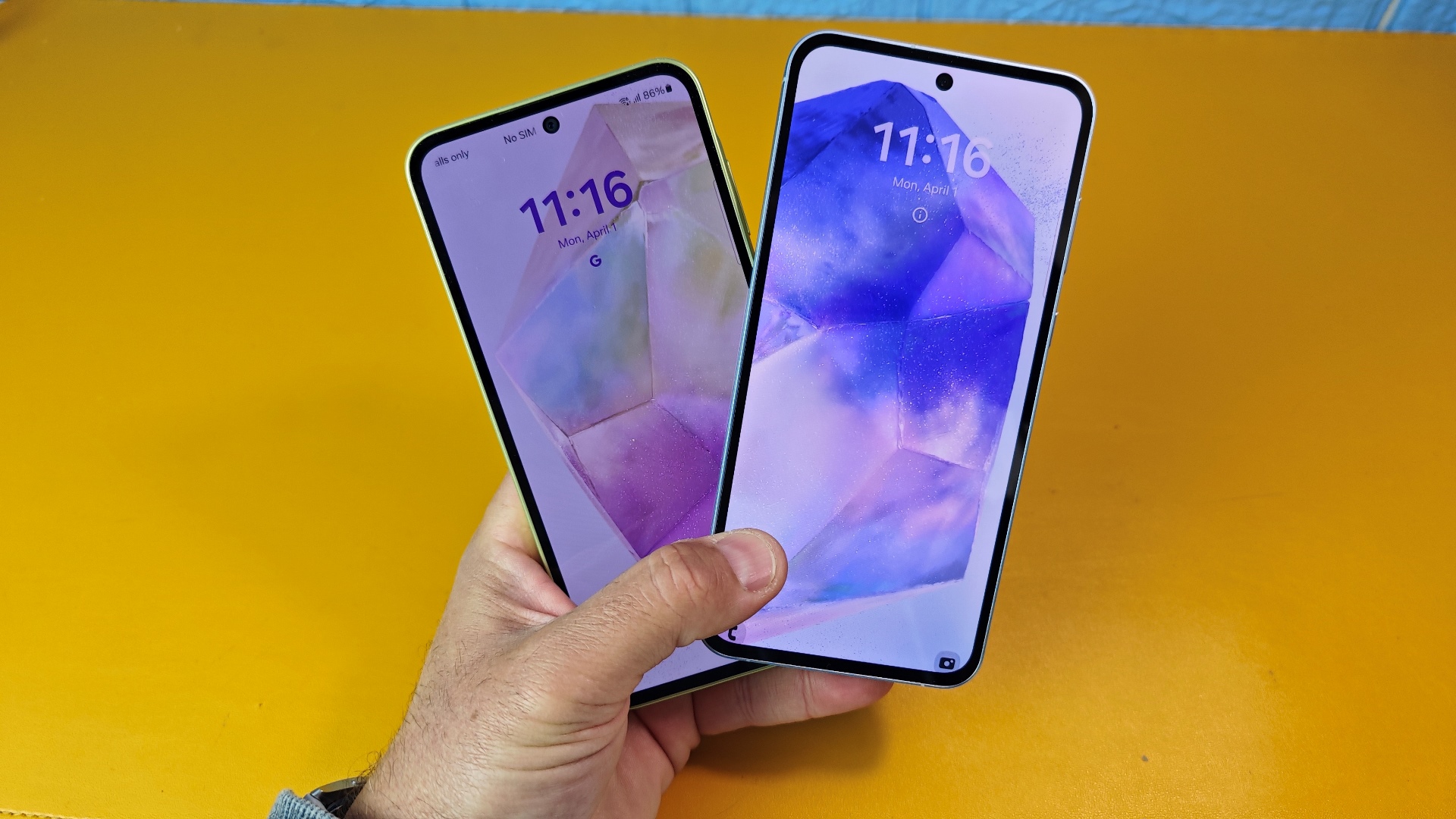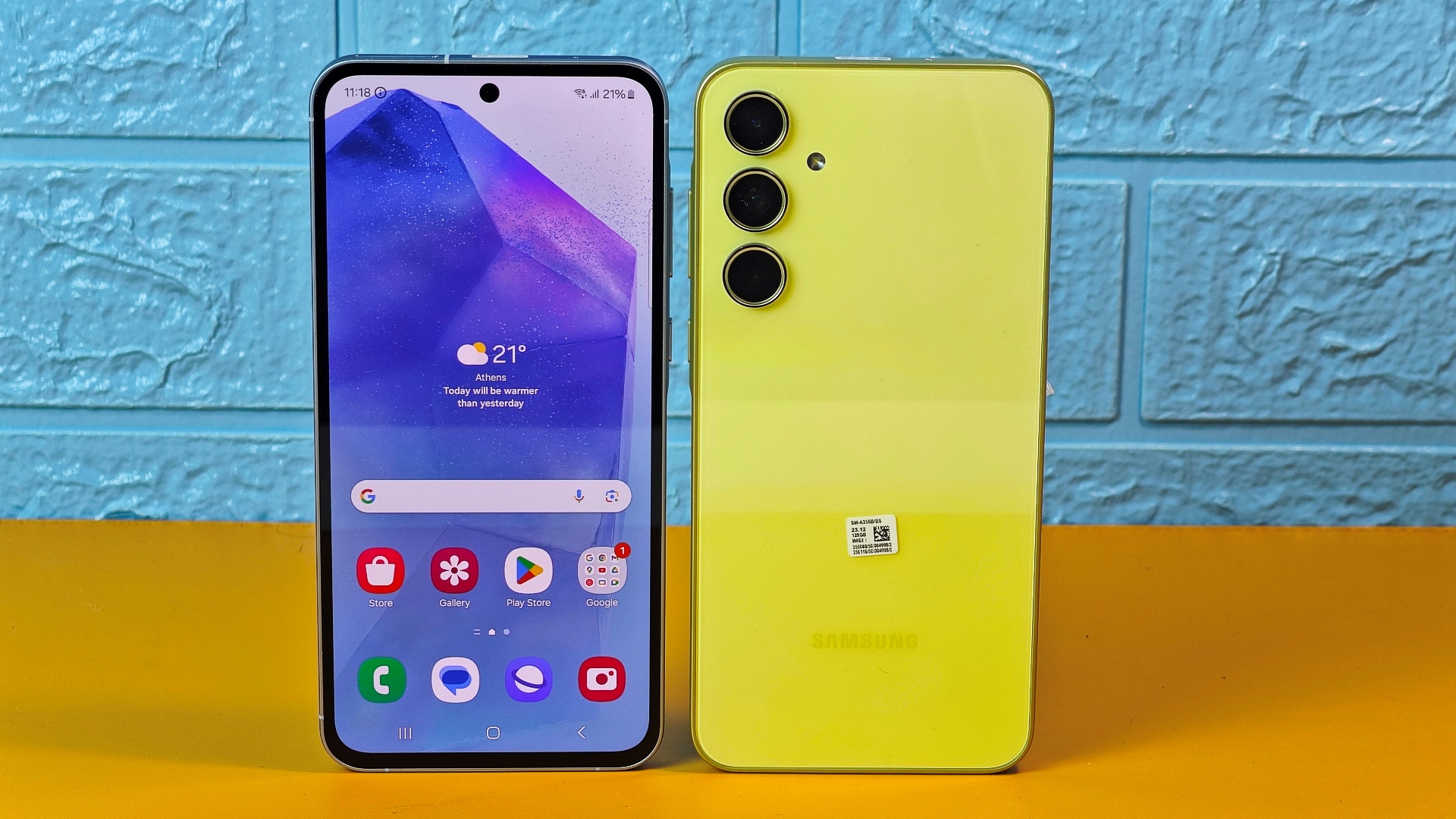 Στο σημείο αυτό πρέπει να αναφέρουμε πως οι συσκευές που μας ήρθαν στα χέρια δεν ήταν retail, κάτι που συμβαίνει συχνά με τα review units της Samsung, οπότε δεν έχουμε δει με τα μάτια μας τι περιέχει και τι όχι η κάθε συσκευασία. Ωστόσο, ξέρουμε ότι δεν έρχονται με φορτιστή στη συσκευασία. Οι δυο συσκευές μοιράζονται πολλά, τόσο σχεδιαστικά όσο και σε τμήματα του hardware. Στη πράξη, έχουν ίδια σχεδίαση, ίδια μπαταρία και ταχύτητα φόρτισης, σχεδόν ίδιες διαστάσεις και βάρος, σχεδόν ίδια οθόνη, αλλά διαφορετικές κάμερες και SoC. Όσον αφορά στα χρώματα, το A35 μας ήρθε σε ένα κίτρινο (lemon) ενώ το A55 σε ένα γαλάζιο (iceblue), όμορφα πολύ και τα δυο, ειδικά το κίτρινο.
