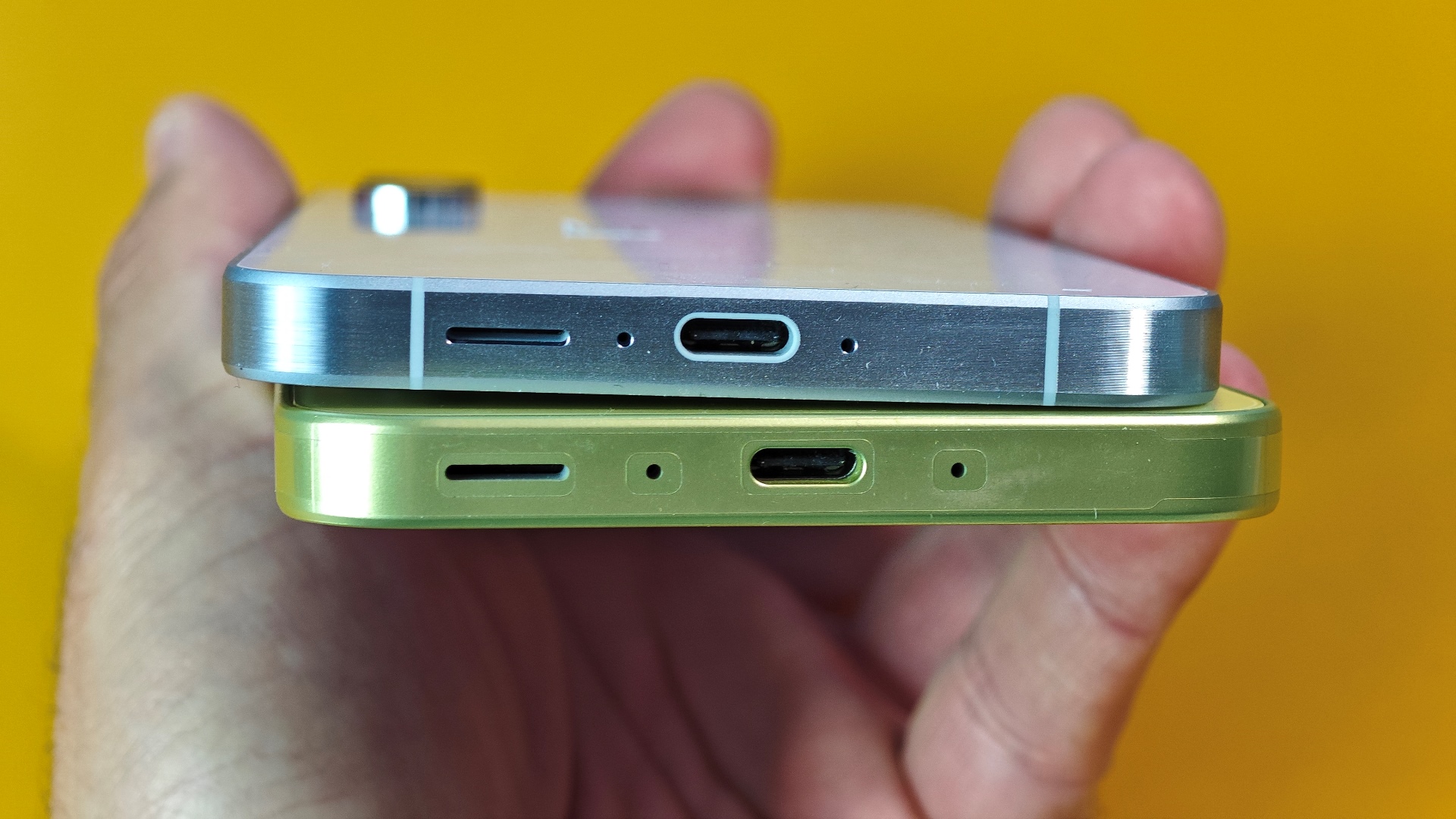 Στη κάτω πλευρά είναι η θύρα Type-C USB (2.0), δυο μικρόφωνα και η έξοδος ήχου, ενώ στη πάνω πλευρά έχουμε το Sim tray το οποίο δέχεται δυο κάρτες (με υποστήριξη 5G), αλλά μπορεί και να δεχτεί και κάρτα μνήμης micro SD, κάτι που πλέον δε πολυσυναντάμε στα τηλέφωνα που κοστίζουν αντίστοιχα χρήματα. Από την άλλη βέβαια, με μόλις 128GB χώρου στην οικονομικότερη έκδοσή τους, η χρήση μιας microSD κάρτας μπορεί να είναι απαραίτητη μετά από λίγο καιρό.