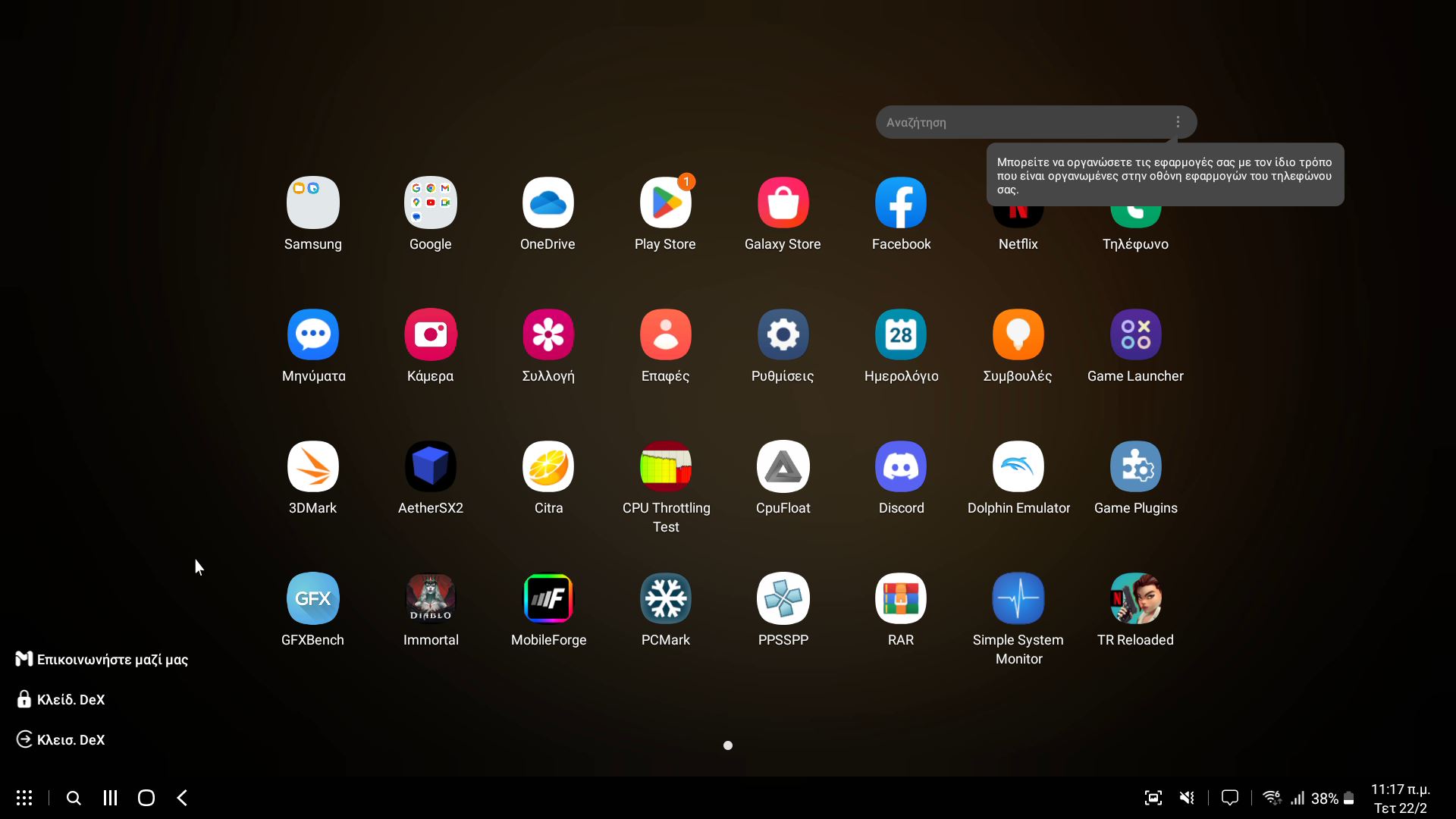 Το interface του Dex όταν το τηλέφωνο συνδεθεί σε εξωτερική οθόνη.