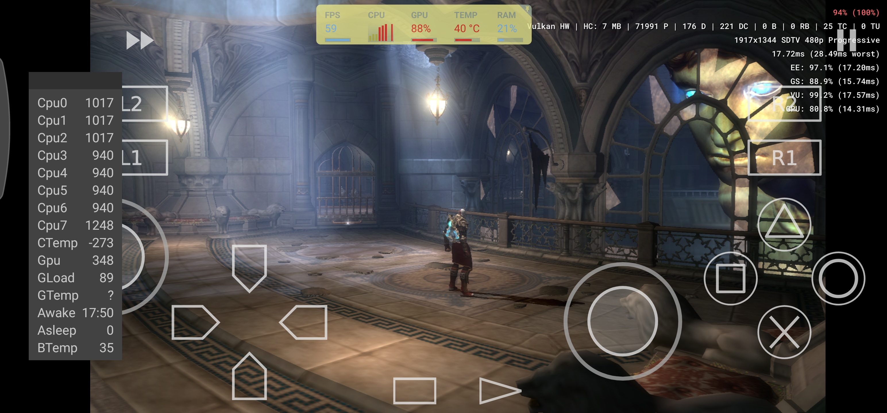 Το S23 Ultra μπορεί να παίζει άνετα για ώρα το God of War 2 στον AetherSX2 σε FullHD ανάλυση (3x scaling) χωρίς να κάνει throttling καθώς η ταχύτητα της GPU βρίσκεται λίγο κάτω από τα 400Mhz, πολύ χαμηλότερα από τη μέγιστη συχνότητα της GPU.
