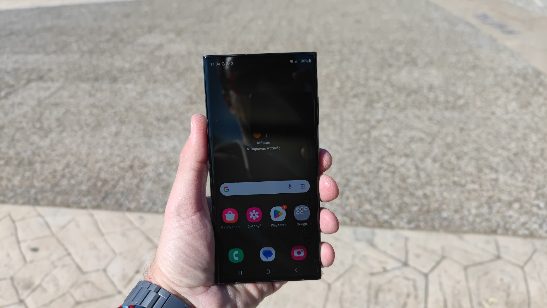Η οθόνη επιπλέον προσφέρει πλήρη υποστήριξη σε HDR10+, κάτι που καθιστά τη θέαση σχετικού περιεχομένου ακόμα καλύτερη. Κάτι άλλο που έχει προσθέσει στην οθόνη η Samsung είναι η τεχνολογία Vision booster η οποία έρχεται βελτιωμένη σε σχέση με την αντίστοιχη της οθόνης του S22 Ultra. Χρησιμοποιώντας την AI του επεξεργαστή, το τηλέφωνο ρυθμίζει καλύτερα τα pixel της οθόνης όταν αυτή βρίσκεται κάτω από το ηλιακό φως και αυξάνει τη φωτεινότητα στο μέγιστο, ούτως ώστε να μην βγαίνει ξεπλυμένη η εικόνα (λόγω της υψηλής φωτεινότητας) αλλά να έχει σωστή απεικόνιση. Στη πράξη, αυτό που παρατηρήσαμε είναι πως το panel ακόμα και κάτω από το έντονο ηλιακό φως, είναι μια χαρά ευκρινές. Τα βασικά πλήκτρα του (power και volume control) βρίσκονται στην δεξιά πλευρά και η πρόσβαση σε αυτά είναι εύκολη (αν και τα volume controls είναι λίγο πιο ψηλά από όσο θα θέλαμε) όπως εύκολα και άνετα χρησιμοποιεί κάποιος τον ενσωματωμένο στην οθόνη αναγνώστη δακτυλικών αποτυπωμάτων. Αυτός δε, είναι εξαιρετικά ακριβής και αστραπιαία γρήγορος, ξεκλειδώνοντας ταχύτατα το τηλέφωνο. Τόσο το πάνω όσο και το κάτω μέρος του τηλεφώνου είναι εντελώς επίπεδα, με τη πάνω πλευρά να διαθέτει ένα μικρόφωνο και στην άκρη, στην ένωση με την οθόνη το ακουστικό, που λειτουργεί και σαν δεύτερο ηχείο. Στο κάτω μέρος του τηλεφώνου έχουμε τη θύρα Type-C USB (είναι USB 3.2), τη θέση για τις κάρτες sim, το βασικό μικρόφωνο μαζί το βασικό ηχείο και φυσικά το s-pen, τοποθετημένο στην ειδική εσοχή που διαθέτει το S23 Ultra.