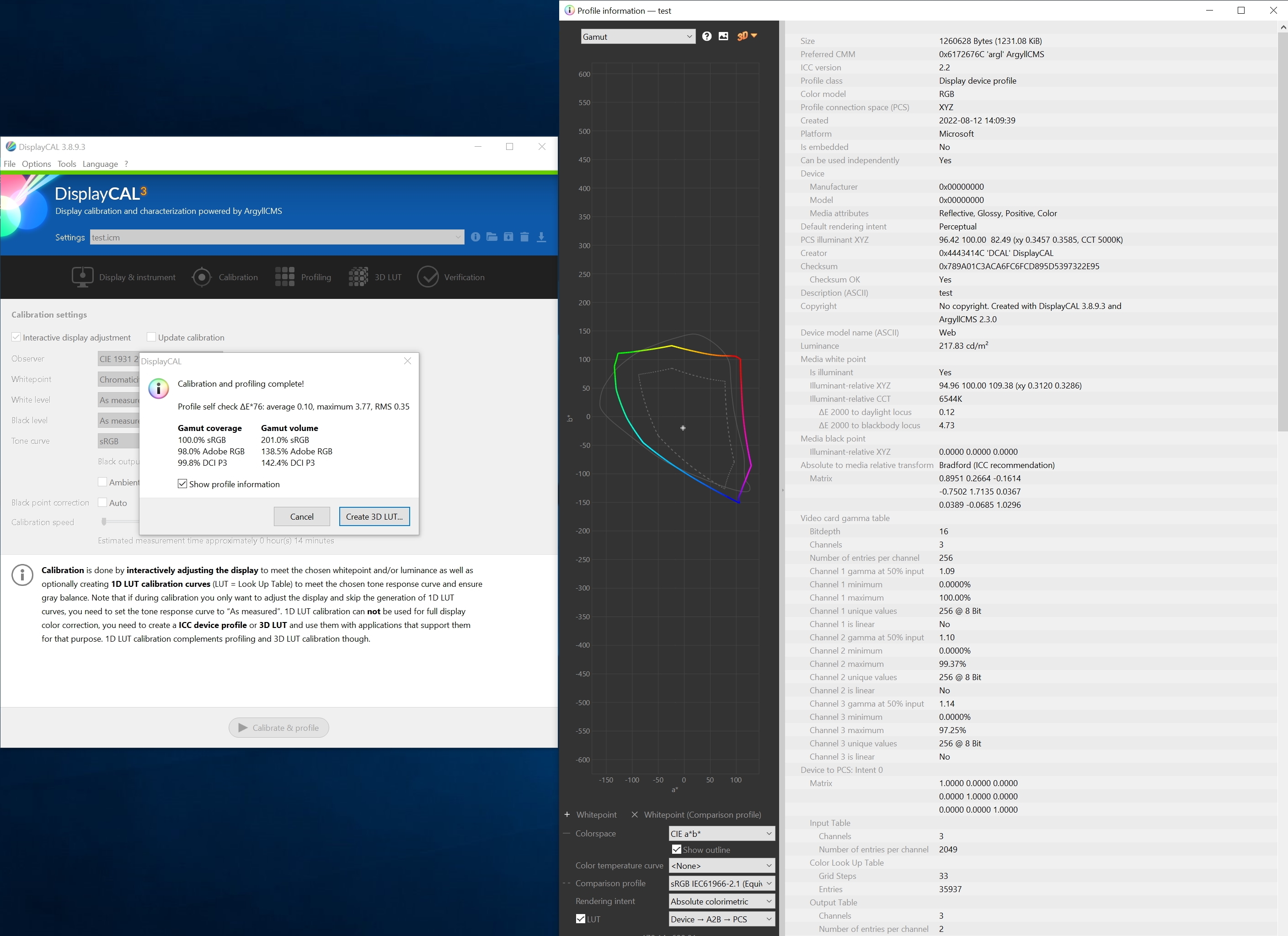 Εξαιρετική χρωματική η οθόνη, όπως τη μετρήσαμε με το DisplaCal στο Vivid προφίλ.