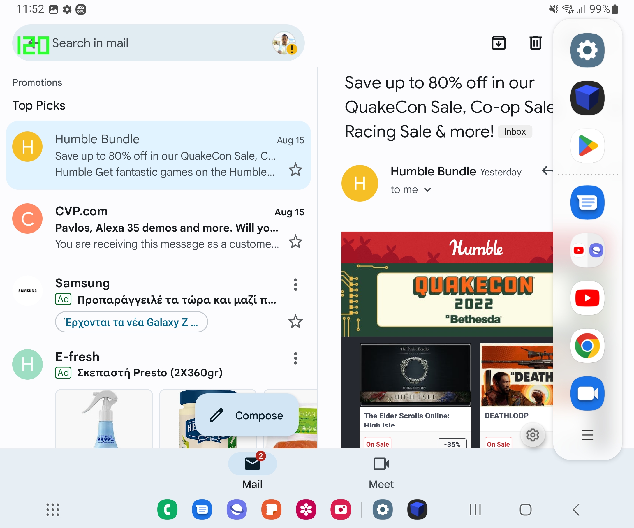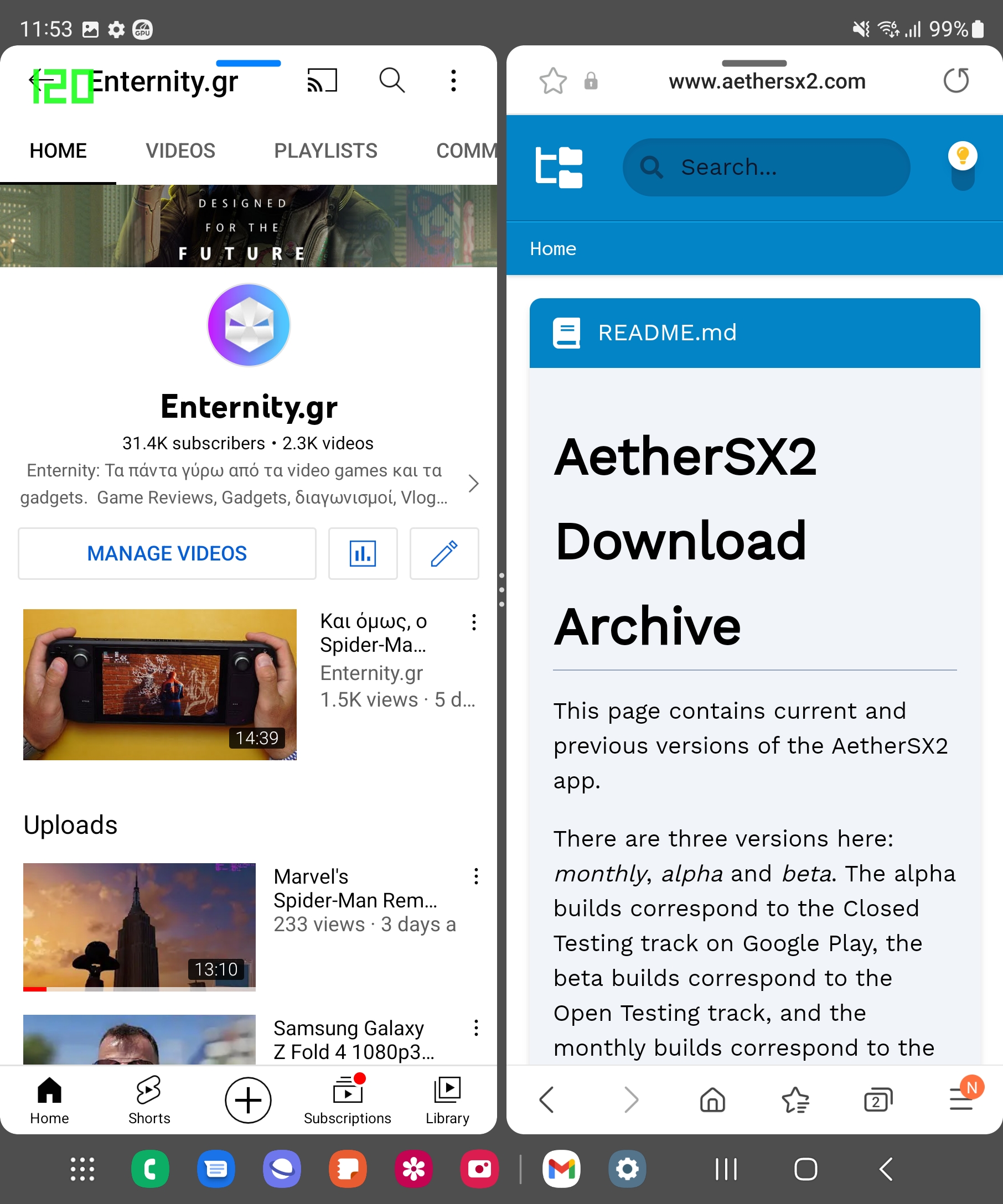 Από την άλλη, οι αναλογίες πλευρών της εσωτερικής οθόνης είναι τέτοιες που δε τη βοηθάνε να αναδειχτεί όταν κανείς βλέπει βίντεο, καθώς μένουν πολύ «χοντρές» μαύρες μπάρες πάνω και κάτω. Ακόμα και έτσι πάντως, είναι απόλαυση να βλέπει κανείς περιεχόμενο HDR, με την οθόνη να διαπρέπει. Η οθόνη είναι σκέτη απόλαυση και όταν κάποιος χρησιμοποιεί διάφορες εφαρμογές του Android, με τη Samsung να του έχει δώσει και εξαιρετικές δυνατότητες multitasking. Εδώ έχουμε μια προσθήκη σε σχέση με το Fold 3 καθώς πέρα από τη λειτουργία Samsung Edge Screen, δηλαδή τη μπάρα εφαρμογών που μπορεί κανείς να καλέσει ανά πάσα στιγμή από την άκρη της οθόνης, έχουμε πλέον και μια taskbar στο κάτω μέρος. Αυτή εμφανίζεται κάθε φορά που εκκινούμε μια εφαρμογή και παρέχει εκεί εικονίδια για όλες τις πρόσφατες εφαρμογές που έχουμε τρέξει. Πατώντας πάνω σε μια, αυτή εκκινεί στιγμιαία και τις περισσότερες φορές δε φορτώνει καν, καθώς τα 12GB μνήμης που έχει το τηλέφωνο είναι υπεραρκετά ώστε να παραμένουν ανοιχτές μπόλικες εφαρμογές. Φυσικά υπάρχουν και δυνατότητες multitasking όσον αφορά στη ταυτόχρονη εκτέλεση εφαρμογών.