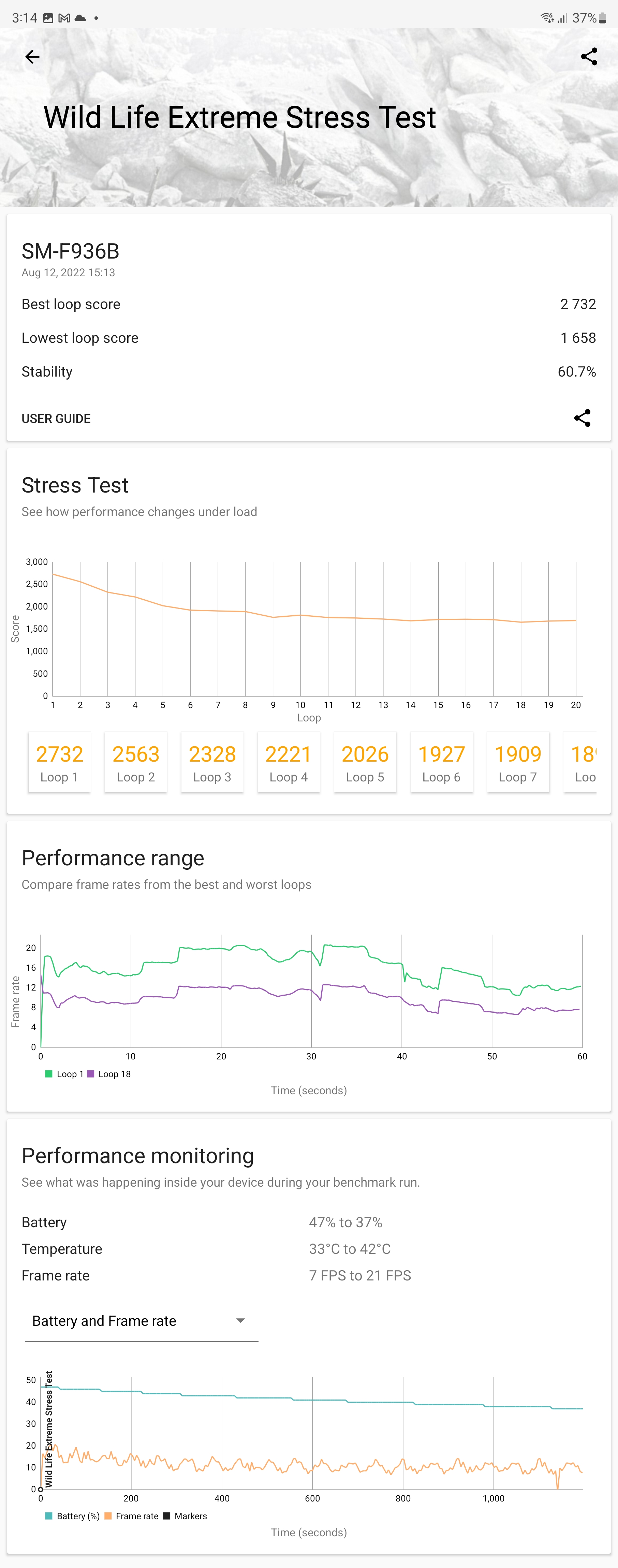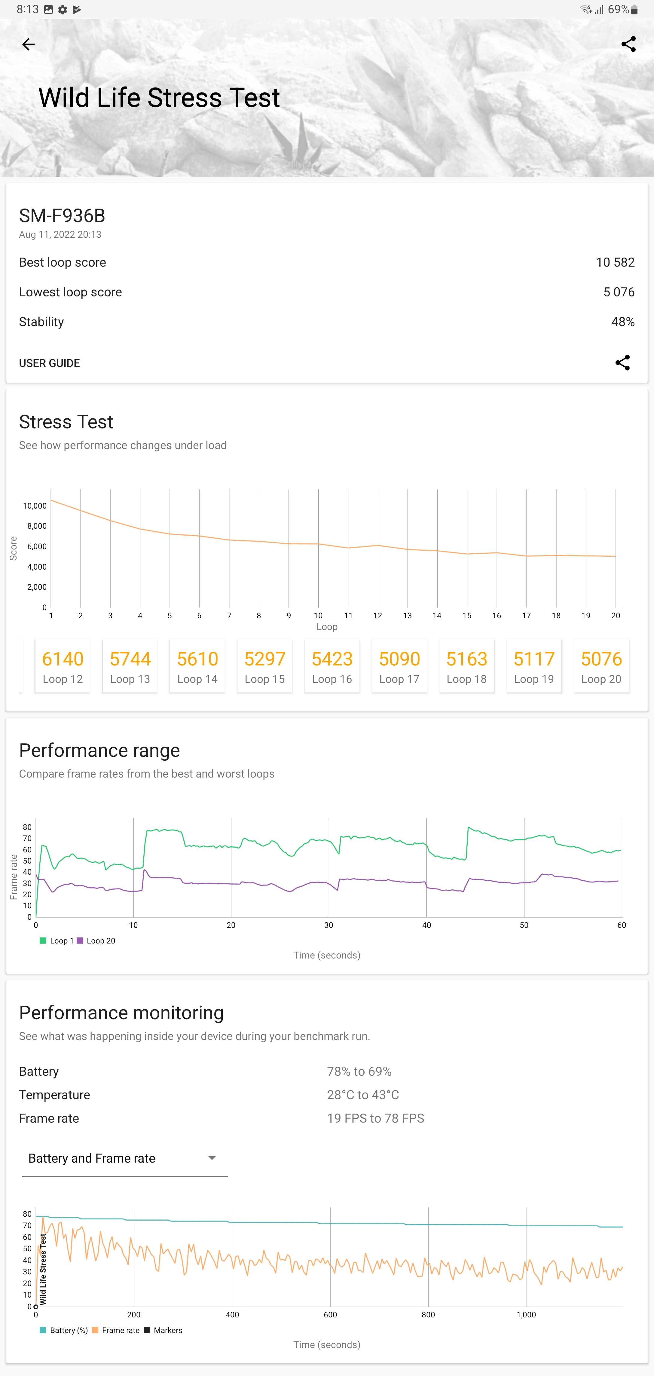 Αν και έχουμε καινούριο SoC, το Snapdragon 8+ Gen 1, εντούτοις για ακόμα μια φορά παρατηρείται το φαινόμενο του throttling σε συνθήκες gaming. Το Stress Test του 3D Mark μας έδωσε 48% Stability στο Wild Life και 60,7% στο Wild Life Extreme με το SoC να έχει το μεγαλύτερο "κόφτη" στους 42-43 βαθμούς Κελσίου όπως μας έδειξε η θερμική μας κάμερα (και το ίδιο το benchmark), με το SoC να ξεκινάει από τους περίπου 29 βαθμούς Κελσίου. Ωστόσο θερμό είναι κυρίως στο σημείο που βρίσκεται το SoC, με την υπόλοιπη συσκευή να είναι αρκετά άνετη στο κράτημα.