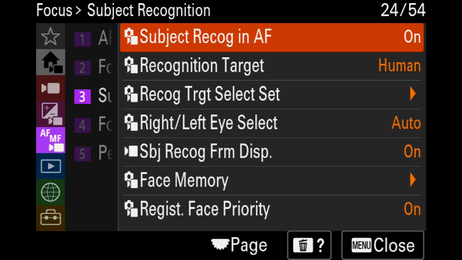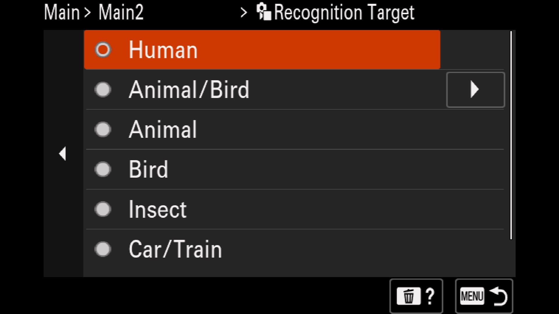 Για τους ανθρώπους συγκεκριμένα μπορεί να αναγνωρίσει το μάτι και να εστιάσει αυτόματα σε κάποιο από τα δυο (ή σε αριστερό/δεξί κατ επιλογή), ενώ για πουλιά και ζώα μπορεί κανείς να διαλέξει αν η μηχανή θα εστιάζει αυτόματα σε μάτι/κεφάλι/σώμα ή σε κάποιο από αυτά. Φυσικά, υπάρχει δυνατότητα να πατήσουμε κάποιο αντικείμενο πάνω στην οθόνη και η μηχανή θα το κάνει tracking ώστε να είναι πάντα αυτό εστιασμένο, ενώ ακόμα και αν κρυφτεί για λίγο πίσω από κάτι άλλο και το χάσει η κάμερα, αυτό είναι προσωρινό καθώς με το που θα κάνει την εμφάνισή του, θα κλειδώσει πάλι σε αυτό. Κάτι καινούριο που φέρνει στο τομέα της εστίασης είναι η δυνατότητα να αποθηκεύσουμε μέχρι 7 πρόσωπα, φωτογραφίζοντάς τα και η μηχανή αυτόματα θα προσπαθεί να εστιάσει σε αυτά όσα πρόσωπα και να βρίσκονται σε μια φωτογραφία, με ότι φακό και να έχουμε και ότι απόσταση να έχουν μεταξύ τους, κάτι πολύ χρήσιμο πχ για φωτογράφους (ή βιντεογράφους) σε γάμους ή γενικότερα κοινωνικές εκδηλώσεις. Όλες οι παραπάνω λειτουργίες είναι διαθέσιμες τόσο σε φωτογραφία όσο και σε βίντεο.