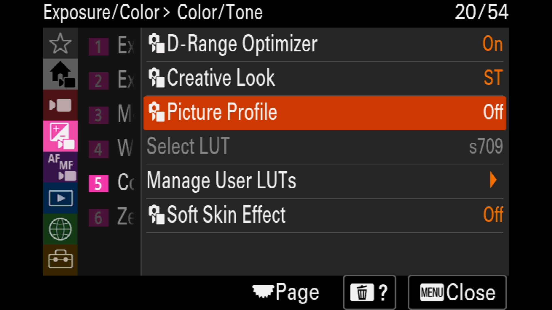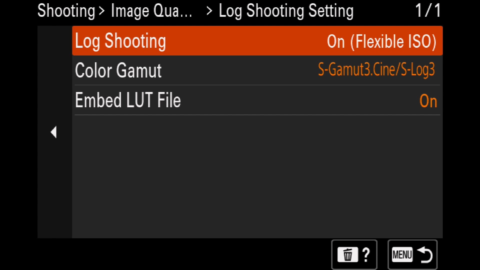 Πάνω σε αυτά μπορεί κανείς να χρησιμοποιήσει τόσο τα picture profiles όσο και εγγραφή σε HLG και S-Log 2/3, για τους επαγγελματίες που θέλουν στη συνέχεια να κάνουν σωστό color correction. Μάλιστα, το μενού επιτρέπει στο κάτοχο της μηχανής να ενεργοποιήσει άμεσα το Log Shooting χωρίς να χρειαστεί να πάει σε κάποιο PictureProfile (PP) έχοντας να διαλέξει μεταξύ S-Gamut3.Cine/S-Log3 και S-Gamut3 /S-Log3. Επιπλέον προσφέρεται η δυνατότητα να φορτώσουμε στη μηχανή μέσω της κάρτας και κάποιο LUT και να γράψουμε βίντεο απευθείας με αυτό εφόσον δεν υπάρχει χρόνος για editing στο post.