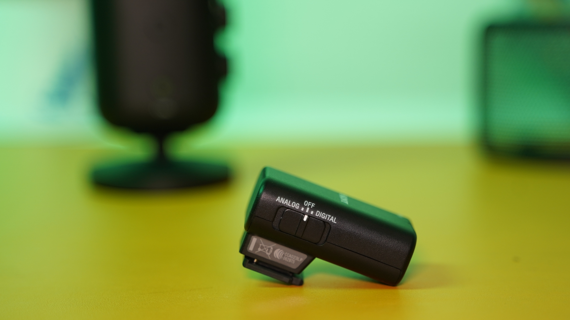 Πάντως υπάρχει και αυτή η επιλογή, με το δέκτη να έχει έξοδο μικροφώνου 3,5mm. Η εναλλαγή μεταξύ ψηφιακής ή αναλογικής σύνδεσης γίνεται μέσω ενός διακόπτη που βρίσκεται πάνω στο δέκτη. Όσον αφορά στη θύρα Type-C USB που διαθέτει ο δέκτης, πέρα από να φορτίζει το δέκτη μπορεί να χρησιμοποιηθεί και για σύνδεση με υπολογιστή, κινητό ή tablet, με το δέκτη να λαμβάνει το σήμα από το ίδιο το μικρόφωνο.