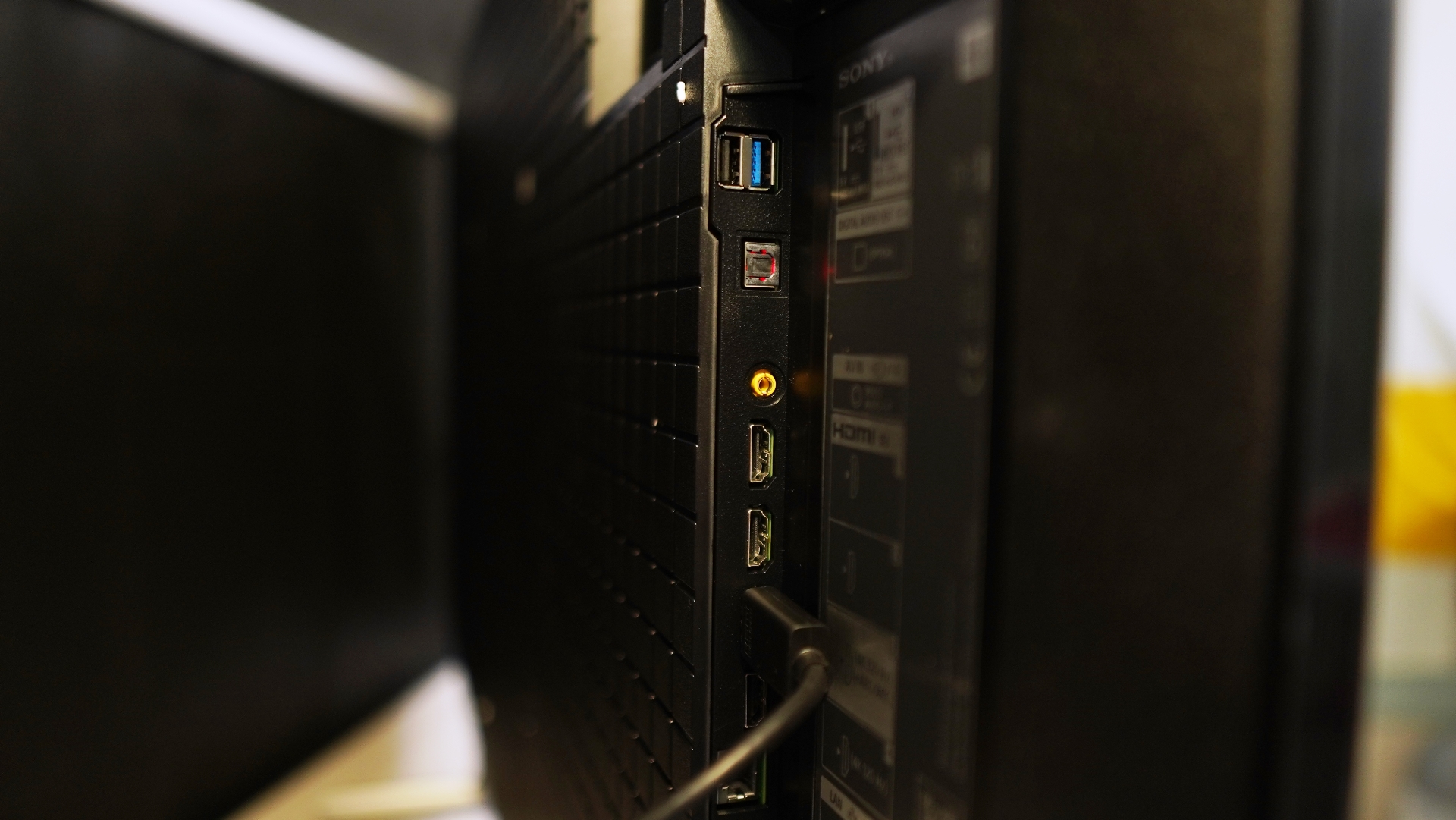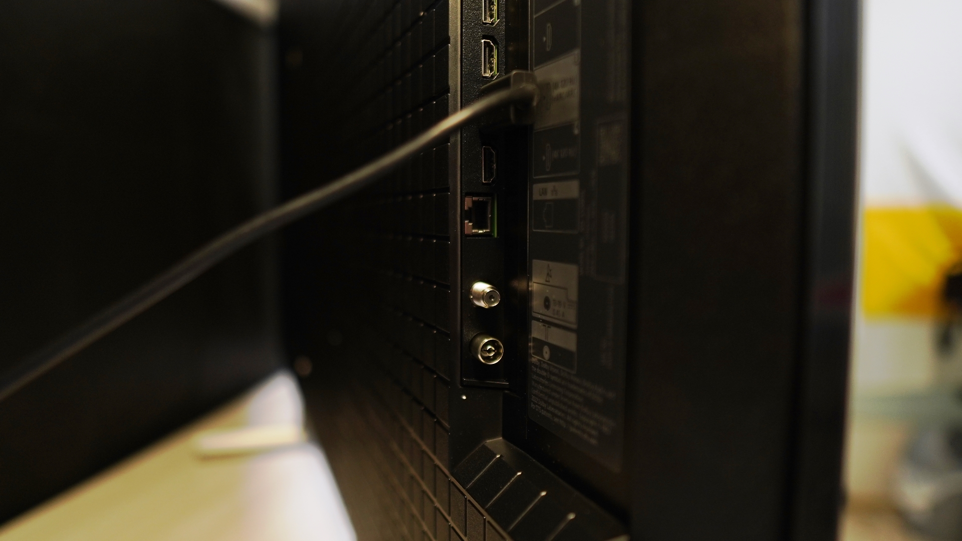 Όλες οι θύρες βρίσκονται στην αριστερή πλευρά. Συνολικά βρίσκουμε τέσσερις HDMI, εκ των οποίων οι 2 είναι HDMI 2.1 συμβατές (και συγκεκριμένα οι 3 και 4), δυο θύρες USB (μια 2.0 και μια 3.0), μια LAN, μια οπτική, AV-In και δυο για κεραία, 1 για επίγειο σήμα και μια για δορυφορικό.