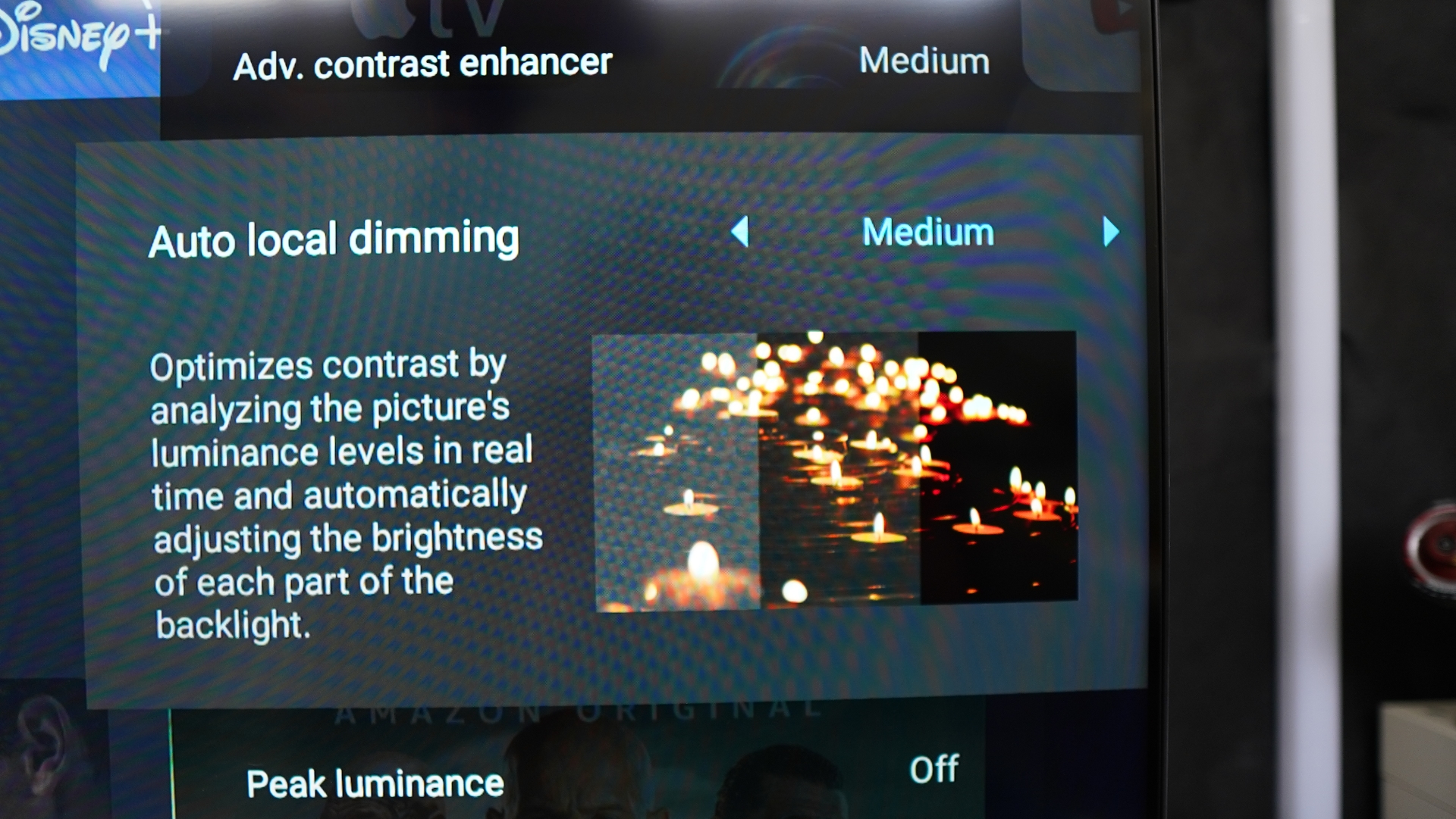 Χάρη σε αυτό, η τηλεόραση μπορεί να φωτίσει περισσότερο σημεία που χρειάζεται και να κλείσει το φωτισμό σε άλλα τμήματα που δεν υπάρχει κάτι τόσο φωτεινό. Δε γνωρίζουμε πόσα local dimming zones διαθέτει, όμως στη πράξη φαίνεται να κάνει καλά τη δουλειά του. Να σημειώσουμε πάντως πως η φωτεινότητα του panel μειώνεται προοδευτικά όσο εντονότερη Local Dimming ενεργοποιούμε, αλλά αντίστοιχα βελτιώνονται τα επίπεδα μαύρου. Πάντως δε παρατηρήσαμε blooming ούτε halo εφέ γύρω από φωτεινά σημεία, το οποίο δείχνει πως το auto local dimming κάνει καλή δουλειά.