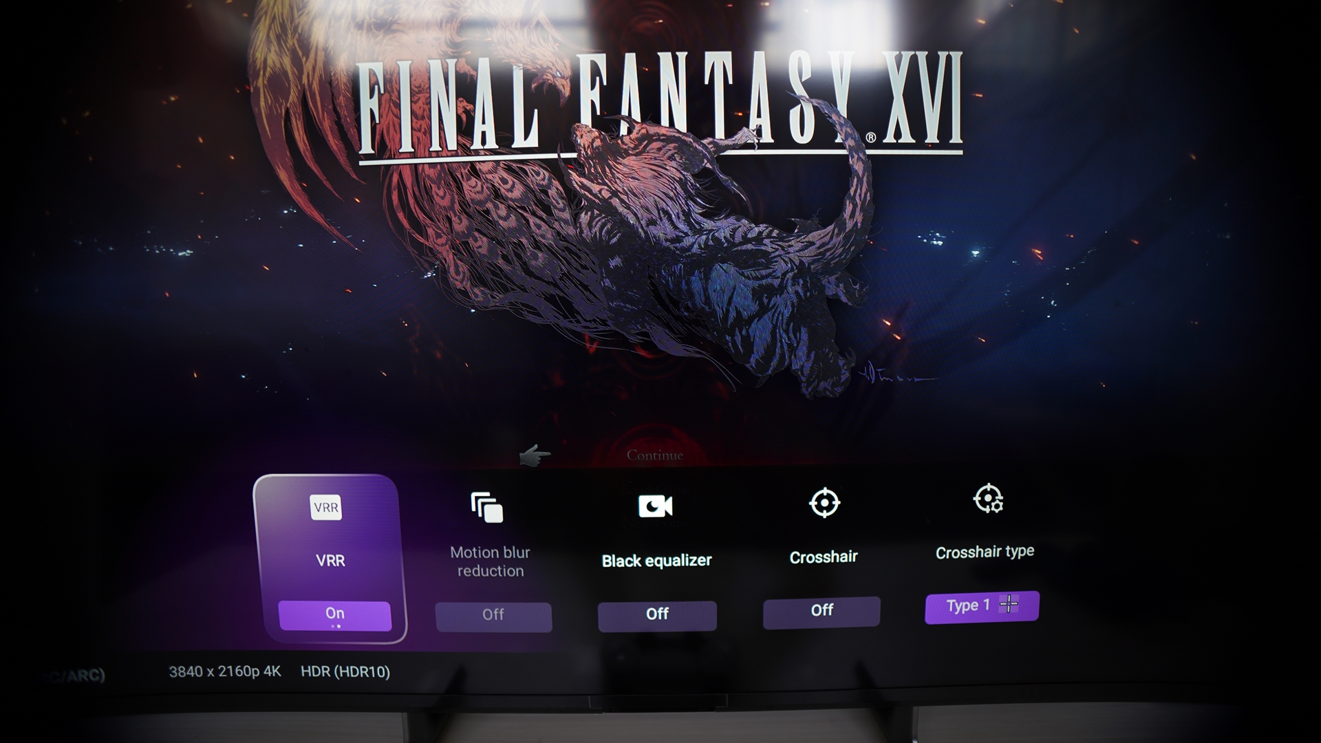 Το πρώτο παιχνίδι που φορτώσαμε, ήταν το Dirt 5. Δούλεψε μια χαρά, δίνοντάς μας εξαιρετικά ομαλή κίνηση. Βέβαια, το παιχνίδι κάνει render σε 1080p με το PS5 να κάνει upscale σε 4K, όμως το αποτέλεσμα είναι εξαιρετικό, με τα 120fps να λειτουργούν χωρίς πρόβλημα προσφέροντας εξαιρετικά ομαλή κίνηση. Επόμενο παιχνίδι που δοκιμάσαμε είναι το Final Fantasy XVI, ένα σχετικά σκοτεινό παιχνίδι, στο οποίο φάνηκε μας φάνηκε η έλλειψη υψηλότερης φωτεινότητας, καθώς παίξαμε σε χώρο με έντονο περιβάλλον φωτισμό και αρκετές πηγές φωτός γύρω μας. Όταν όμως βράδιασε και ο περιβάλλον φωτισμός ελαχιστοποιήθηκε, το οπτικό αποτέλεσμα έγινε ακόμα καλύτερο, καθώς το HDR «έδειξε» περισσότερο ενώ μειώθηκαν και οι αντανακλάσεις του φωτισμού. Όσον αφορά στο ήχο της τηλεόρασης, αυτός μας άφησε καλές εντυπώσεις τόσο από πλευράς έντασης όσο και από πλευράς ποιότητας, αν και στη μέγιστη ένταση υπάρχει παραμόρφωση.