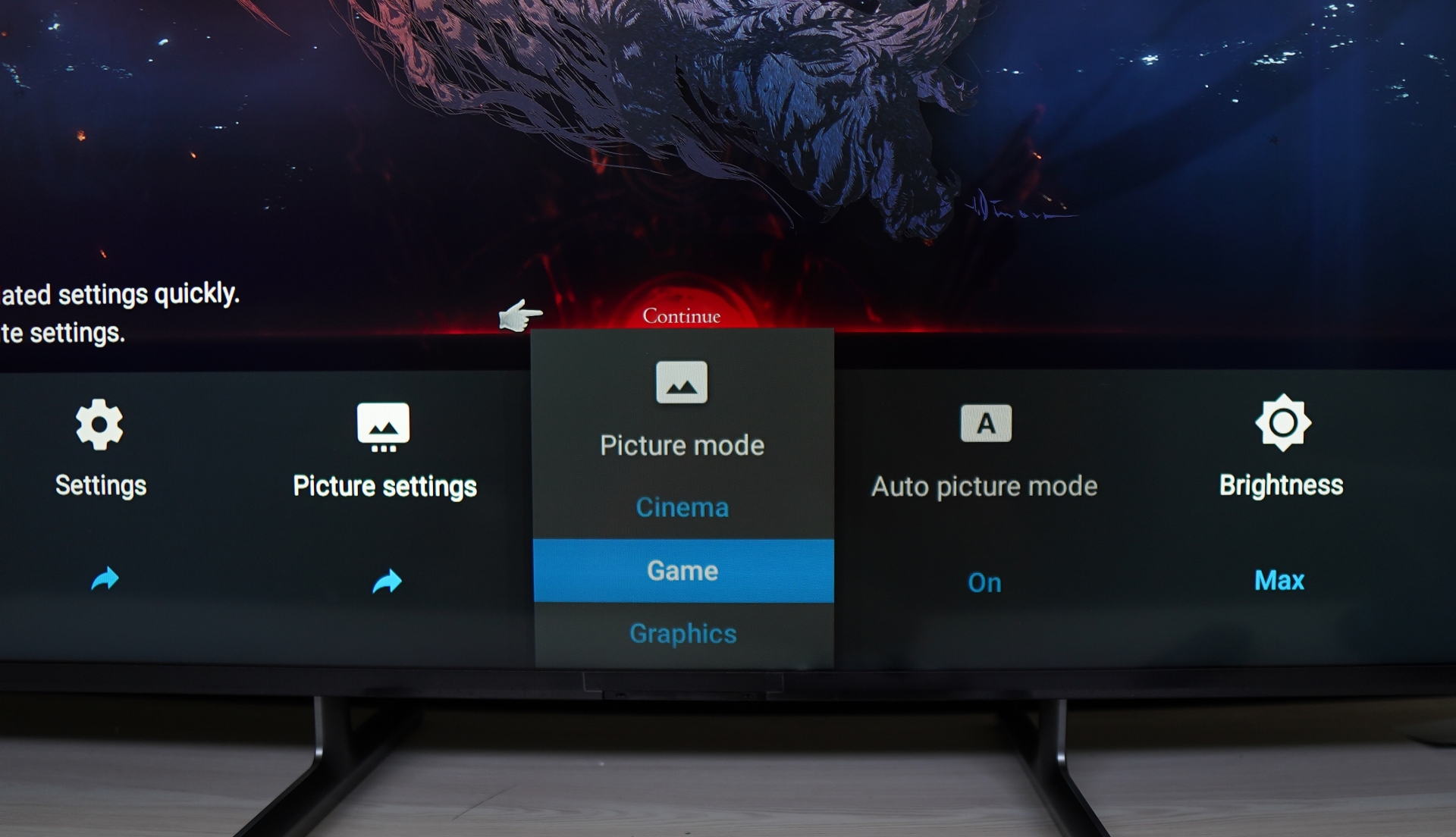 Οι κύριες δοκιμές που κάναμε αφορούν τη χρήση της σαν τηλεόραση για το PlayStation 5. Συνδέσαμε το PS5 στην HDMI 3 θύρα και εκκινώντας το, η τηλεόραση άμεσα κατάλαβε ότι έχει να κάνει με κονσόλα και ενεργοποίησε αυτόματα το game mode, χωρίς να υπάρχει δυνατότητα να το αλλάξουμε. Το PS5 από τη πλευρά του, ενεργοποίησε όλα τα απαραίτητα gaming χαρακτηριστικά, όπως το high refresh rate, το VRR και το ALLM. Το ALLM μειώνει αυτόματα το input lag ενώ το VRR ρυθμίζει αυτόματα το refresh rate στο τρέχον frame rate, ώστε η εμπειρία gaming να είναι όσον το δυνατόν καλύτερη.