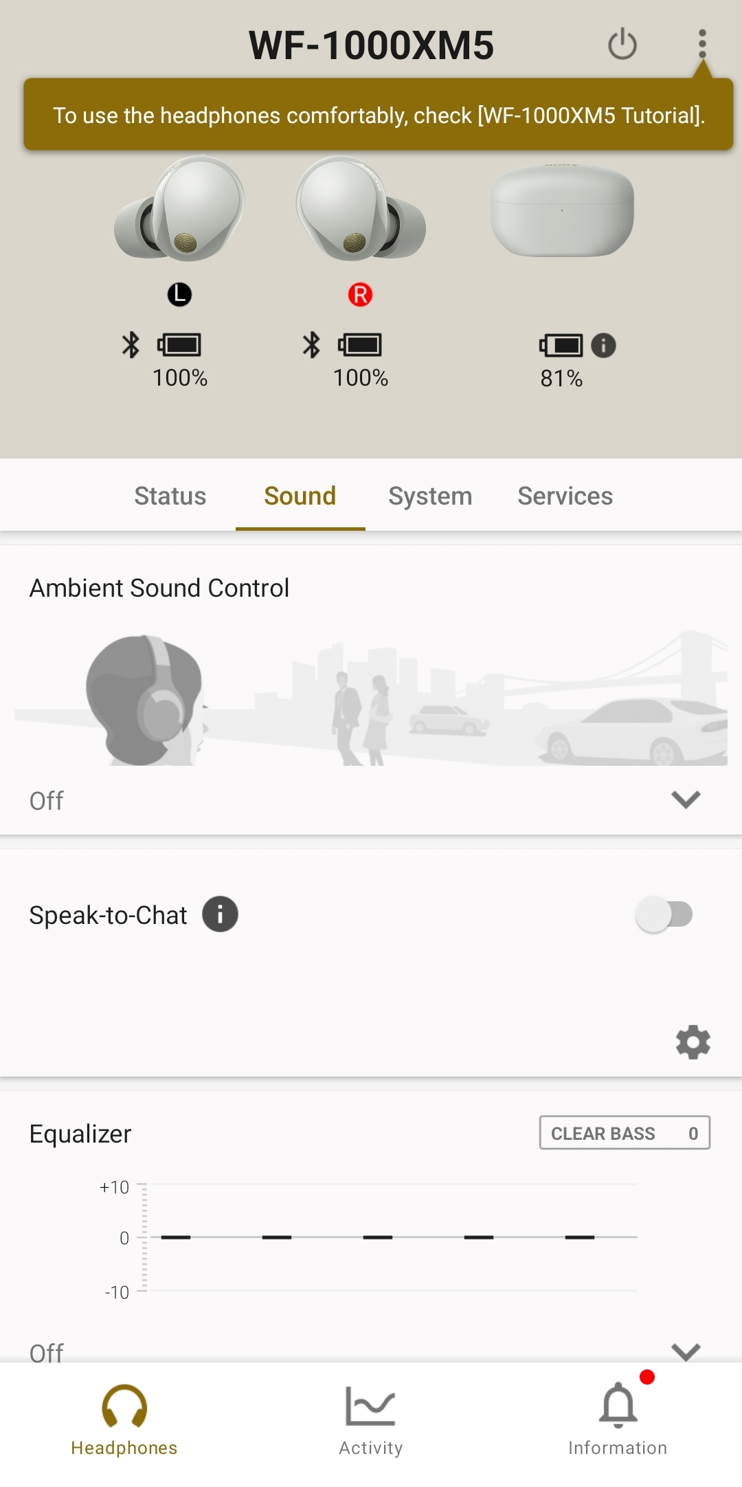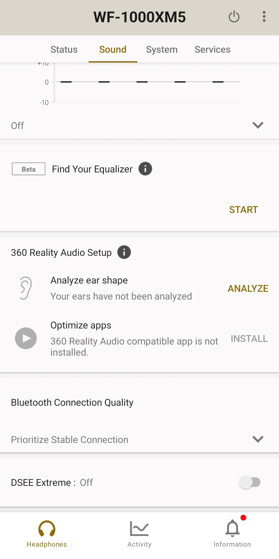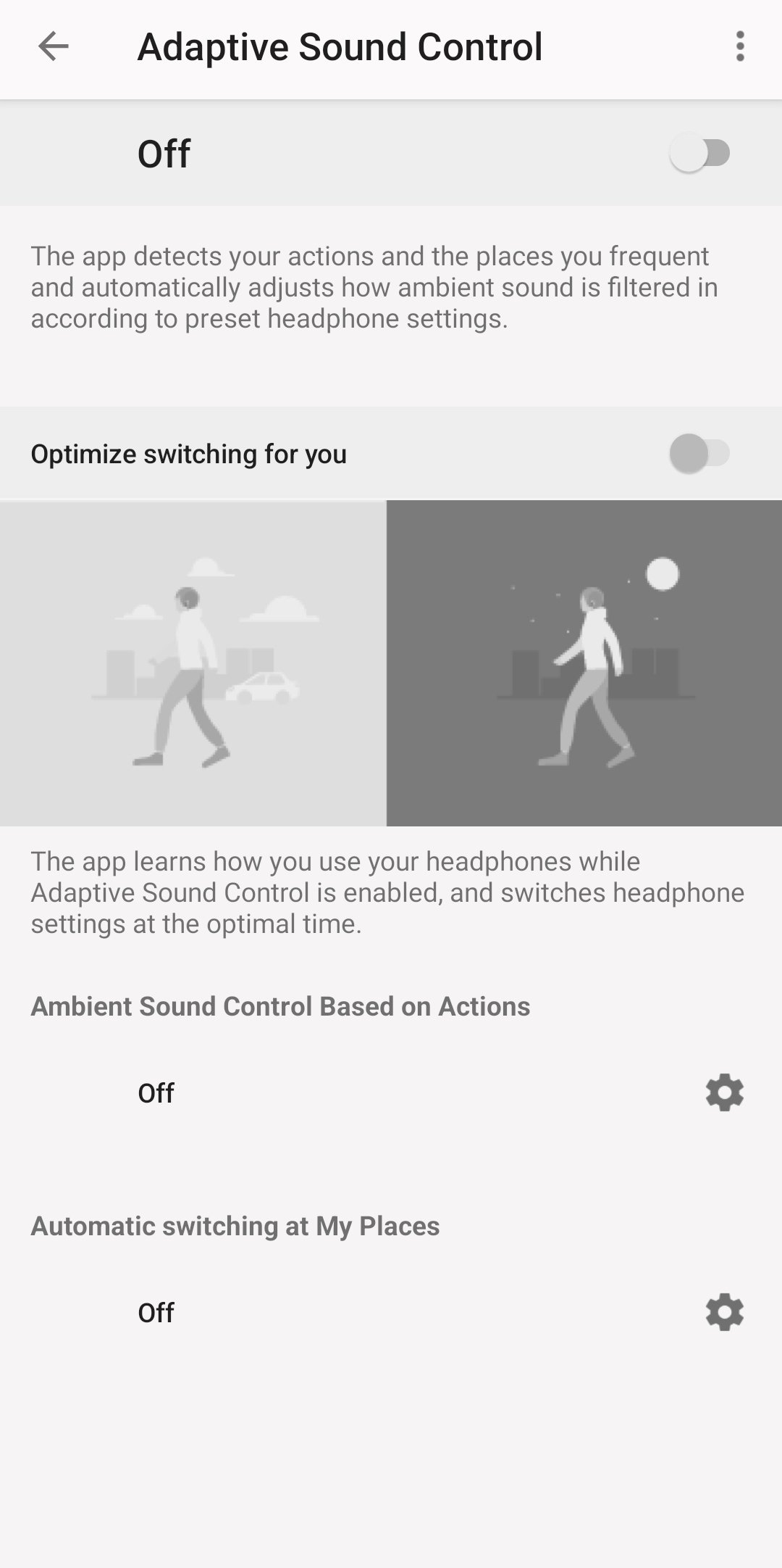 Επιπλέον, υπάρχει η λειτουργία Adaptive Sound Control, η οποία προσαρμόζει τον ήχο ανάλογα με το τι κάνεις, καθώς ειδικοί αισθητήρες αντιλαμβάνονται τις κινήσεις του χρήστη. Ακόμα, ο χρήστης μπορεί να ενεργοποιήσει την τεχνολογία DSEE για να βελτιώσει τον ήχο που προέρχεται από πηγές χαμηλής ποιότητας, ενώ υπάρχει και δυνατότητα χρήσης equalizer, τόσο αυτόνομα όσο και σε συνδυασμό με τις προηγούμενες λειτουργίες, με έτοιμες ρυθμίσεις αλλά και με δυνατότητα χειροκίνητων αλλαγών. Ένα νέα χαρακτηριστικό που προσφέρει η εφαρμογή όσον αφορά στο EQ, είναι να ακολουθήσουμε μια διαδικασία ώστε να βρούμε τη τέλεια ρύθμισή του, με την εφαρμογή να μας βάζει να ακούσουμε διάφορους ήχους ενώ εμείς επιλέγουμε αυτούς που μας αρέσουν περισσότερο.