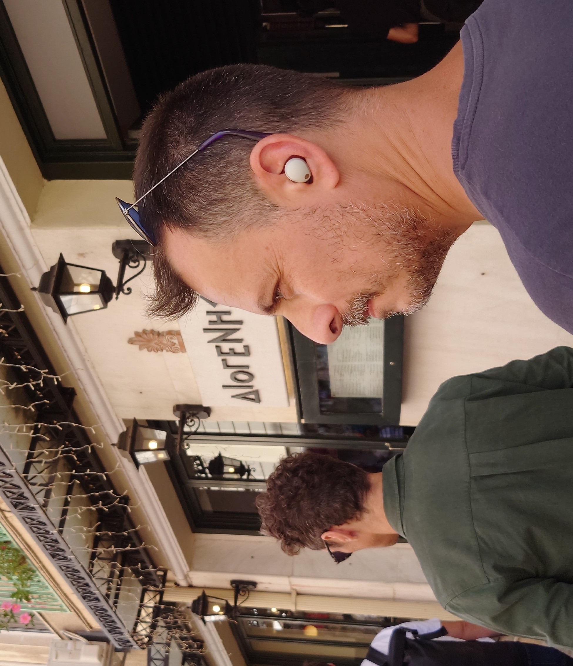 Σε αυτή τη βόλτα, από το Καλλιμάρμαρο μέχρι το Γκάζι, ακούγαμε μια playlist που μας έδωσαν οι μουσικοί παραγωγοί και σε κάθε στάση, ακουμπώντας στο αριστερό ακουστικό γυρνάγαμε στο Ambient Mode για να ακούσουμε και τι είχαν να μας πουν.