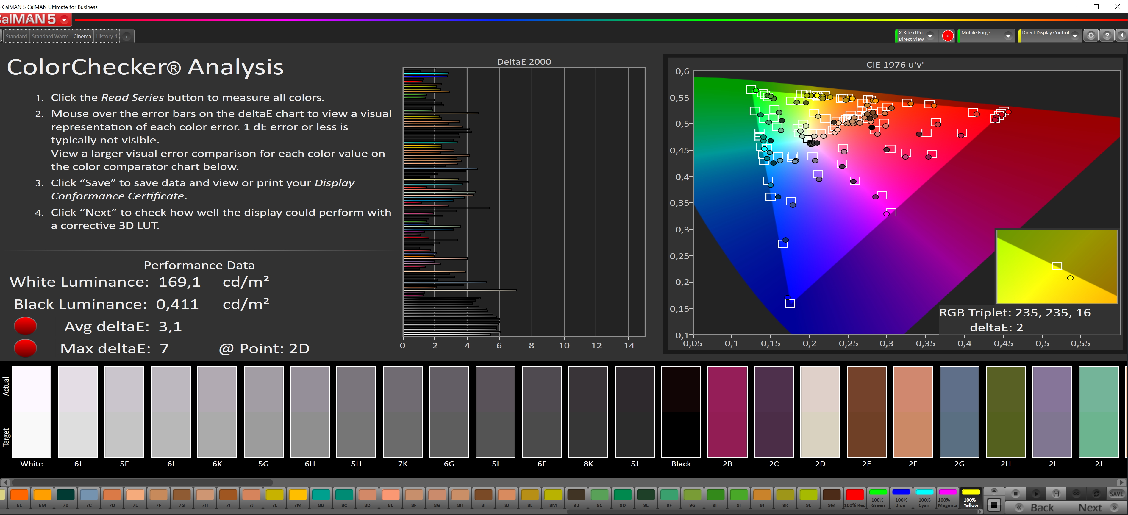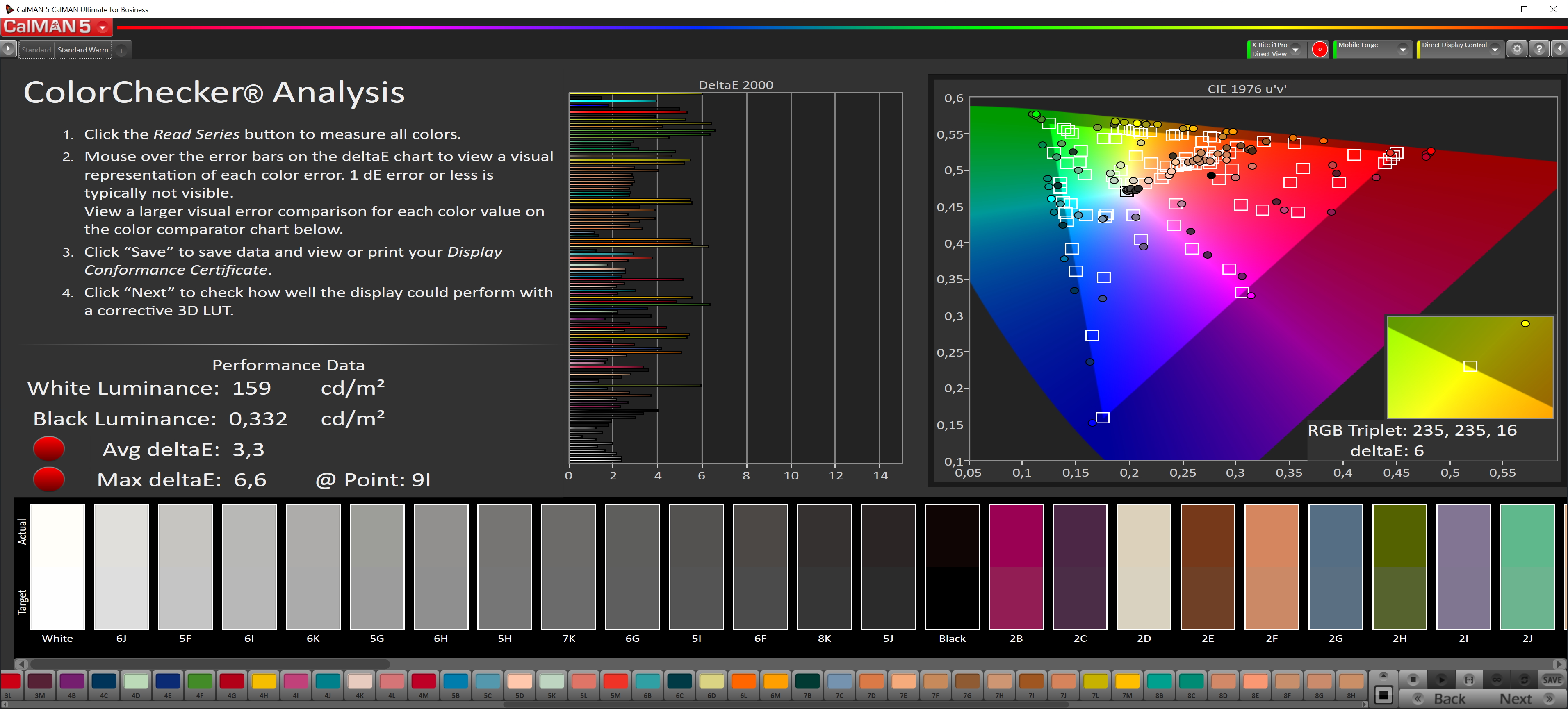 Απόδοση της οθόνης στο Standard, στο Standard με Warm White Balance και στο Creator Mode.