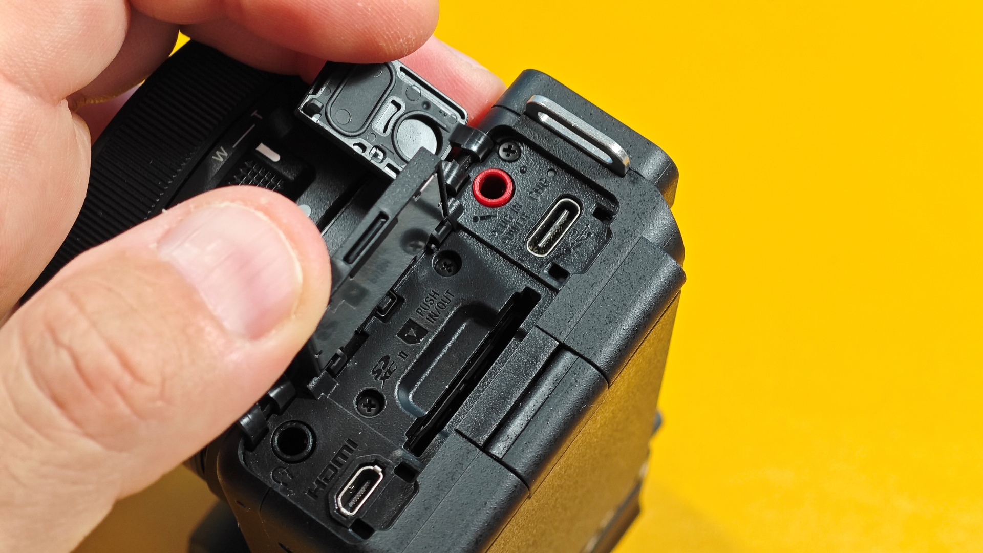 Συνεχίζοντας με την αριστερή πλευρά, έχουμε ακόμα τη θέση για τις κάρτες SD, με τις κάρτες V90 να είναι απαραίτητες στη περίπτωση που κάποιος θέλει να αξιοποιήσει τις καλύτερες δυνατότητες video recording της κάμερες όπου οι απαιτήσεις όσον αφορά στη ταχύτητα εγγραφής είναι υψηλές. Στο τρίτο πορτάκι έχουμε την έξοδο ακουστικών και την έξοδο HDMI σε micro μορφή με υποστήριξη ανάλυσης έως 4K60. Η μηχανή ακόμα και όταν είναι συνδεδεμένη σε εξωτερική οθόνη/recorder συνεχίζει να λειτουργεί με όλες τις της δυνατότητες ενεργές όσον αφορά στην αυτόματη εστίαση, όμως για ακόμα μια φορά δε μπορούμε να βλέπουμε ταυτόχρονα στην οθόνη της κάμερας και στην εξωτερική το μενού, παρά μόνο στη δική της όταν έχουμε το HDMI Info Display στο Off.