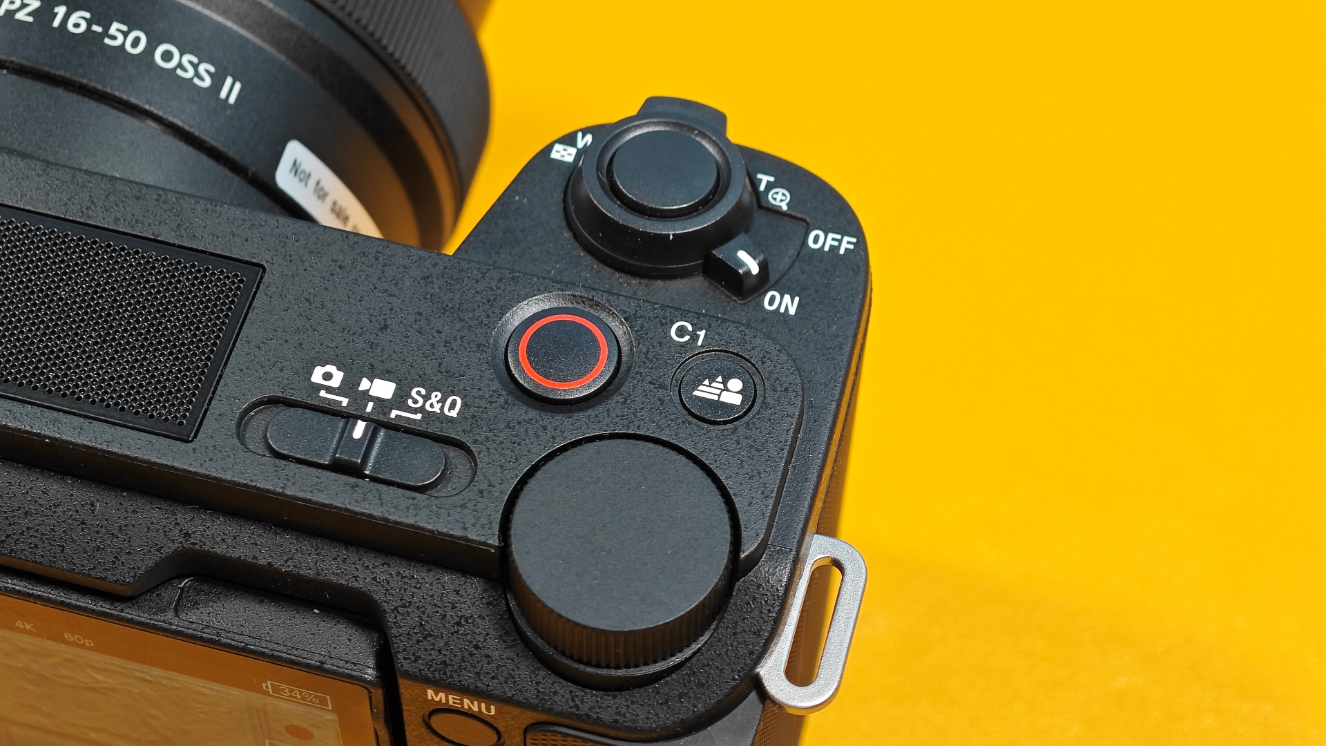 Στη πάνω πλευρά της μηχανής έχουμε περισσότερα πλήκτρα ελέγχου και ρυθμίσεων, όπως το κόκκινο για την έναρξη της εγγραφής βίντεο (θα το θέλαμε πάντως πάνω στη λαβή), το προγραμματιζόμενο C1 δίπλα του, ένα διακόπτη τριών θέσεων για την επιλογή mode μεταξύ βίντεο, φωτογραφία και S&Q. Υπάρχει και μια ακόμα ροδέλα η οποία επιτρέπει την αλλαγή του διαφράγματος. Επίσης, στη πάνω πλευρά υπάρχει και το socket για τη τοποθέτηση εξωτερικών φλας (η μηχανή δεν έχει δικό της φλας) ή και μικροφώνων, υποστηρίζοντας και όλα τα πρόσφατα μικρόφωνα της Sony, καθώς επίσης και το μικρόφωνο της μηχανής το οποίο είναι εξαιρετικό, καθώς μπορεί να διαλέξει από ποια πλευρά θα καταγράφει καλύτερα τον ήχο αυτόματα, ενώ μας δίνεται η επιλογή να διαλέξουμε εμείς τη πλευρά (πχ μπροστά όταν κάνουμε vlog).