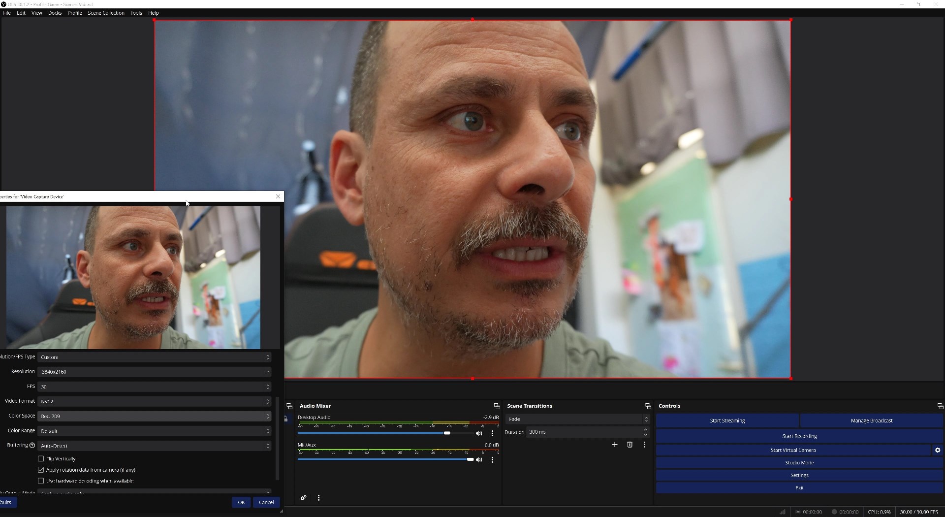 Η Sony ZV-E10 M2 συνδεδεμένη μέσω USB 3.0 με τον υπολογιστή, εμφανίζεται σαν web camera στο OBS με ανάλυση 4K30.