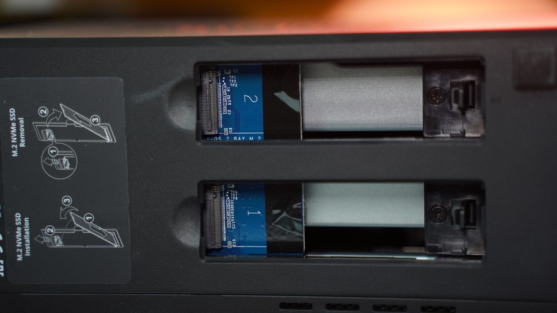 Αλλά οι θύρες επέκτασης του Synology DS723+ δε σταματάνε εδώ. Στο κάτω μέρος υπάρχουν και δυο θέσεις για τοποθέτηση δίσκων NVMe με δυνατότητα να χρησιμοποιηθούν είτε σαν cache για τους βασικούς δίσκους είτε κανονικά σαν δίσκοι αποθήκευσης. Όμως, στη δεύτερη περίπτωση δε μπορούμε να χρησιμοποιήσουμε κάποιον NVMe δίσκο του εμπορίου παρά μόνο συγκεκριμένους δίσκους της Synology. Ακόμα και έτσι πάντως, είναι φανερό από όλα τα παραπάνω πως το Synology DS723+ δεν είναι ένα απλό NAS, αλλά μια συσκευή που μπορεί να «μεγαλώσει» όσο μεγαλώνουν και οι ανάγκες του χρήστη.