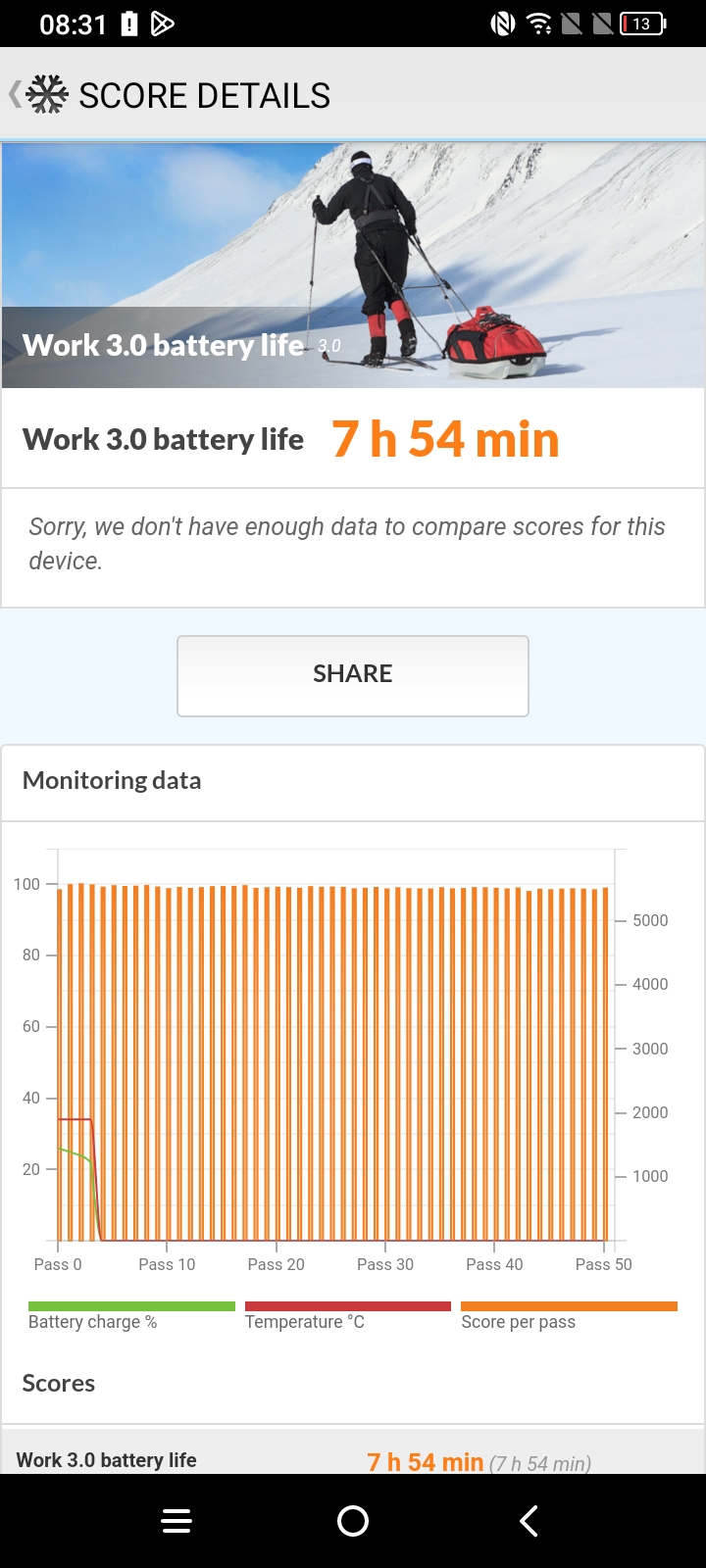 Το SoC που ενσωματώνει το τηλέφωνο είναι ένας οχταπύρηνος Mediatek Helio G37 και στην έκδοση που είχαμε συνοδεύεται από 6GB μνήμης, με τον αποθηκευτικό χώρο των 256GB να είναι τεχνολογίας eMMC. Όσον αφορά στο κομμάτι των games, το GPU που ενσωματώνει επιτρέπει στο τηλέφωνο δε μας επέτρεψε καν να τρέξουμε το Wild Life test του 3D Mark, λόγω έλλειψης των συμβατών χαρακτηριστικών του Vulkan. Το SoC μπορεί να παίξει εύκολα τα απλά παιχνίδια, αλλά δε μπορεί να σηκώσει ιδιαίτερα καλά απαιτητικότερους τίτλους. Δε πρόκειται κανείς να έχει θέμα με αυξημένες θερμοκρασίες ενώ επιπλέον, η μεγάλη μπαταρία των 5000mAh επιτρέπει στο τηλέφωνο να μπορεί να παίζει τέτοιοι είδους παιχνίδια για αρκετές ώρες. Όπως είπαμε το τηλέφωνο δε συνοδεύεται από φορτιστή αλλά μπορεί να φορτίσει στα 18Watt με μια πλήρη φόρτιση να απαιτεί αρκετό χρόνο.