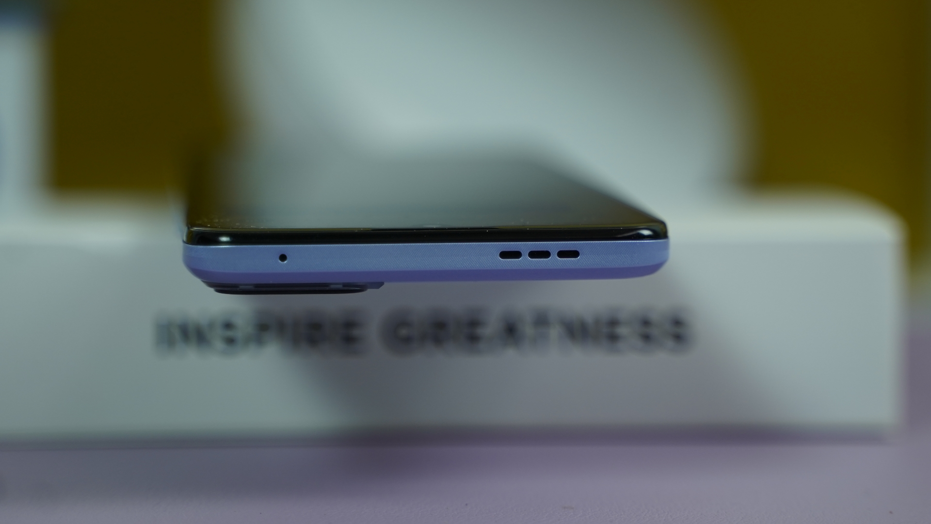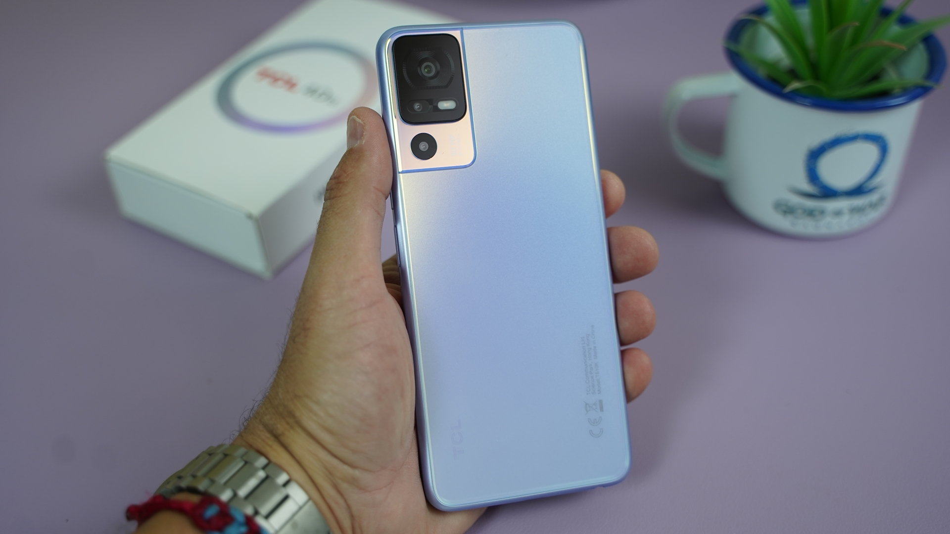 Συνεχίσουμε τη περιήγησή μας στο τηλέφωνο, στη δεξιά πλευρά είναι το power button το οποίο εκτελεί και χρέη αναγνώστη δακτυλικών αποτυπωμάτων καθώς και τα volume controls ενώ στην αριστερή πλευρά βρίσκουμε το tray για τοποθέτηση των καρτών sim με το τηλέφωνο να είναι συμβατό με 4G δίκτυα. Επίσης, το tray δέχεται και κάρτες μνήμης microSD χωρητικότητας έως 1GB. Στο κάτω μέρος έχουμε το βασικό ηχείο το οποίο συνεργάζεται με το ακουστικό ώστε το τηλέφωνο να προσφέρει στερεοφωνικό ήχο. Ο ήχος των ηχείων είναι δυνατός και καθαρός ακόμα και στο 100%, ενώ είναι και αρκετά ισορροπημένος μεταξύ των δυο ηχείων. Στο κάτω μέρος έχουμε επίσης έξοδο ακουστικών και θύρα Type-C USB. Στη πλάτη συναντάμε το τριπλόσύστημα καμερών με το led flash. Η πλάτη είναι πλαστική και δε μαζεύει δακτυλικά αποτυπώματα, με στο Twilight Purple χρώμα του να είναι ιριδίζον και να αλλάζει ανάλογα με το πώς πέφτει πάνω του ο φωτισμός.