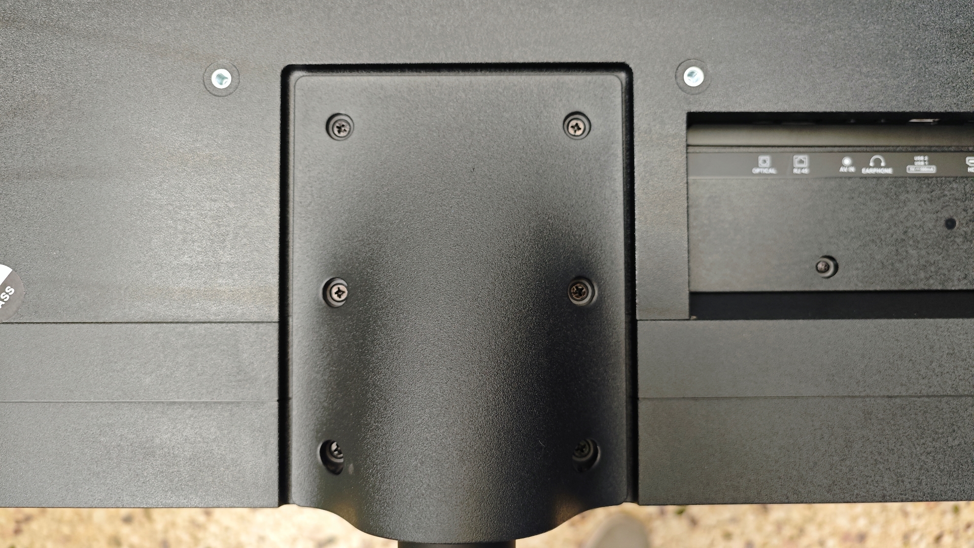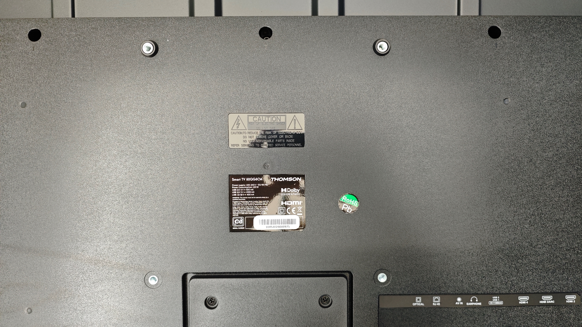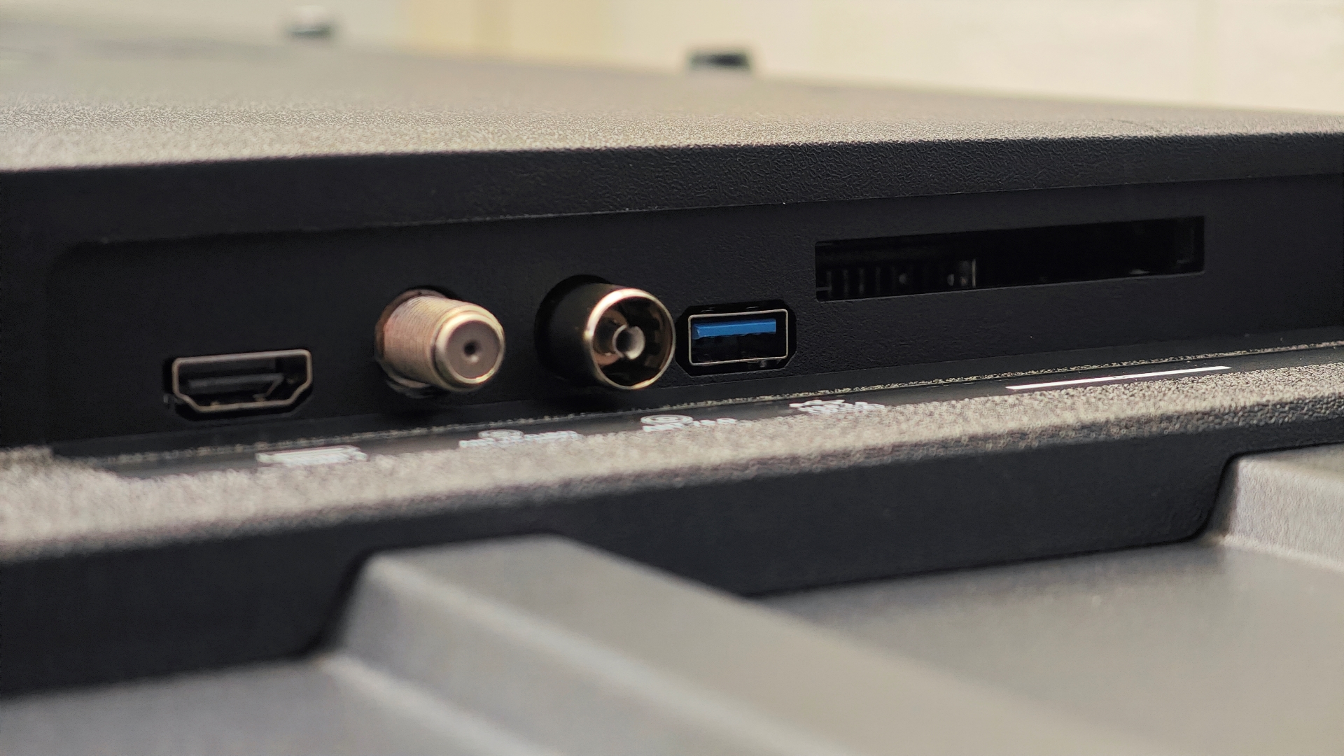 Από εκεί και πέρα, έχουμε μια μεγάλη αλλά σχετικά λεπτή τηλεόραση με μικρά bezel. Οι θύρες που διαθέτει είναι μοιρασμένες, καθώς κάποιες λίγες βρίσκονται στην αριστερή (όπως τη κοιτάμε) πλευρά της ενώ οι υπόλοιπες βρίσκονται στη πίσω πλευρά και κοιτάνε προς τα κάτω. Συγκεκριμένα, στη δεξιά πλευρά βρίσκουμε μια HDMI, δυο θέσεις για κεραία (επίγεια και δορυφορική), μια USB 3.0, καθώς και μια CI+, για τη τοποθέτηση δορυφορικής κάρτας. Έχουμε άλλες 3 HDMI στη πίσω πλευρά (με μια να είναι eARC/CEC) και δυο USB 2.0 οι οποίες έχουν περιορισμό στο ρεύμα, καθώς μπορούν να δώσουν μόλις 500mA στα 5V, άρα είναι μόνο για dongle και ίσως USB flash drive αλλά όχι για δίσκο.