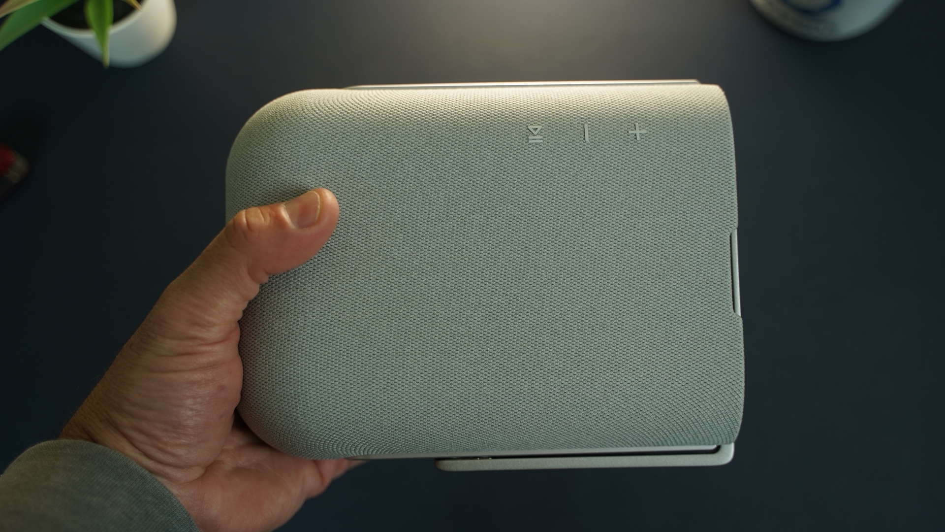 Και μιας και λέμε για μπαταρία, ενσωματώνει μια των 12000mAh, χάρη στην οποία μπορούμε να έχουμε 1,5-2 ώρες προβολής ανάλογα με το mode (eco, κανονικό). Μπορούμε να έχουμε τη πλήρη φωτεινότητα του συστήματος και σε κατάσταση μπαταρίας. Στην ίδια πλευρά έχουμε και το ποτενσιόμετρο για τη ρύθμιση της εστίασης (γίνεται χειροκίνητα μόνο). Στη πάνω πλευρά έχουμε led για την ένδειξη επιπέδου μπαταρίας και τρια ακόμα πλήκτρα ελέγχου για μετακίνηση στα μενού σε περίπτωση που δεν έχουμε το τηλεχειριστήριο. Αυτό είναι bluetooth, οπότε σε γενικές γραμμές οι εντολές μας «περνάνε» στο προβολέα. Πλήκτρο power δεν υπάρχει, με τον προβολέα να εκκινεί όταν ανασηκώσουμε τη βάση στήριξης και να κλείνει όταν τη τοποθετήσουμε πάλι στην αρχική της θέση. Όσον αφορά τη συνδεσιμότητα, ο προβολέας υποστηρίζει WiFi ακόμα και στα 5Ghz ενώ μπορεί να συνδεθεί και με εξωτερικά ακουστικά και ηχεία μέσω Bluetooth ενώ ταυτόχρονα μπορεί να χρησιμοποιηθεί και ο ίδιος σαν φορητό ηχείο.